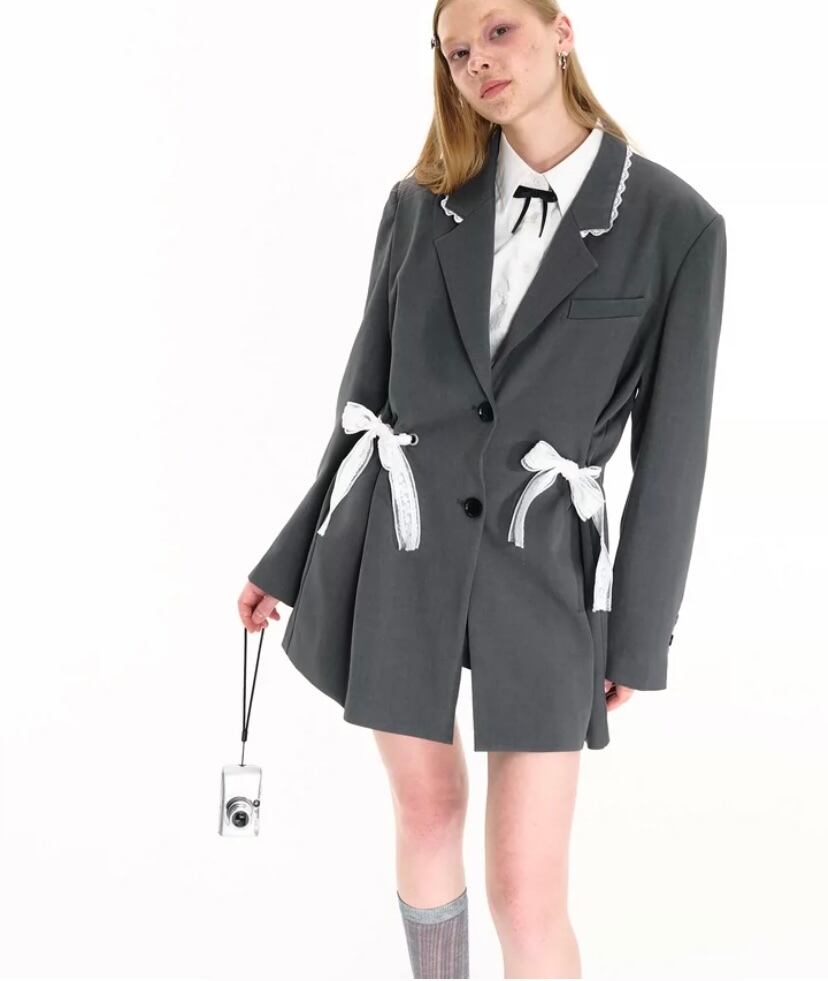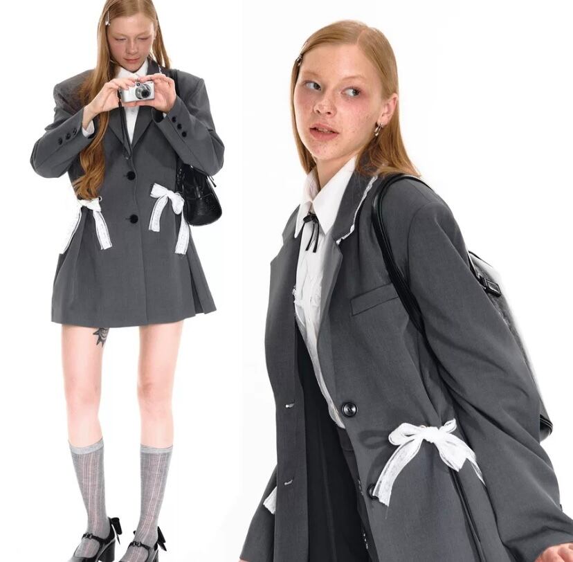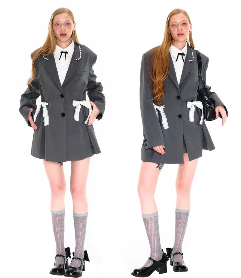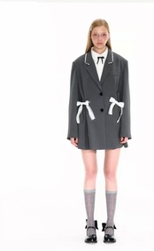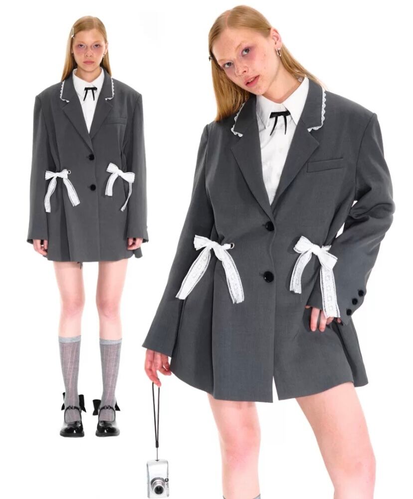 【ジャケット】アウター グレー リボン 可愛い カーディガン コート ワンピース スクール