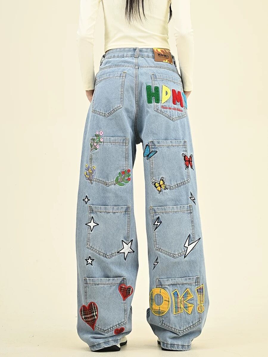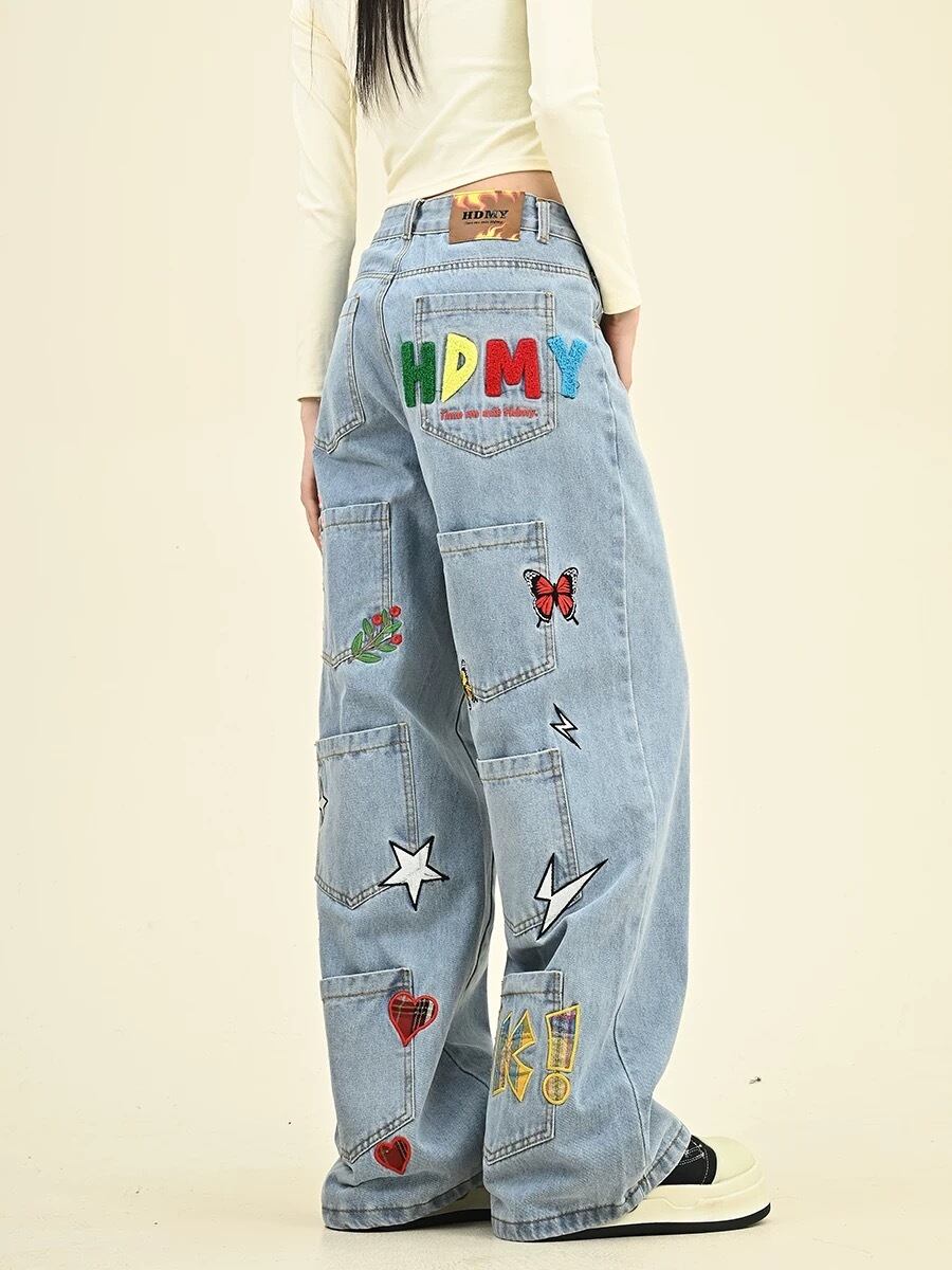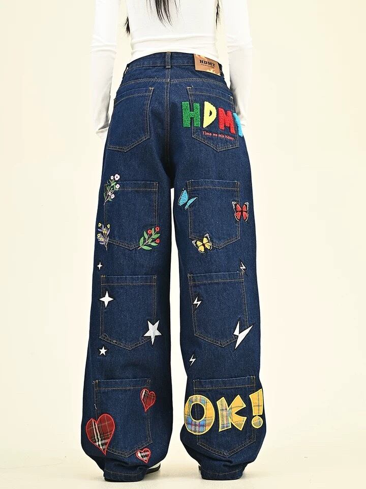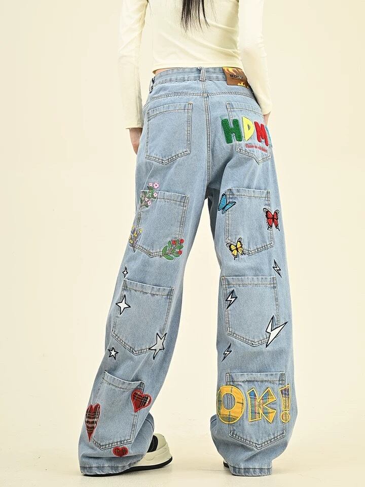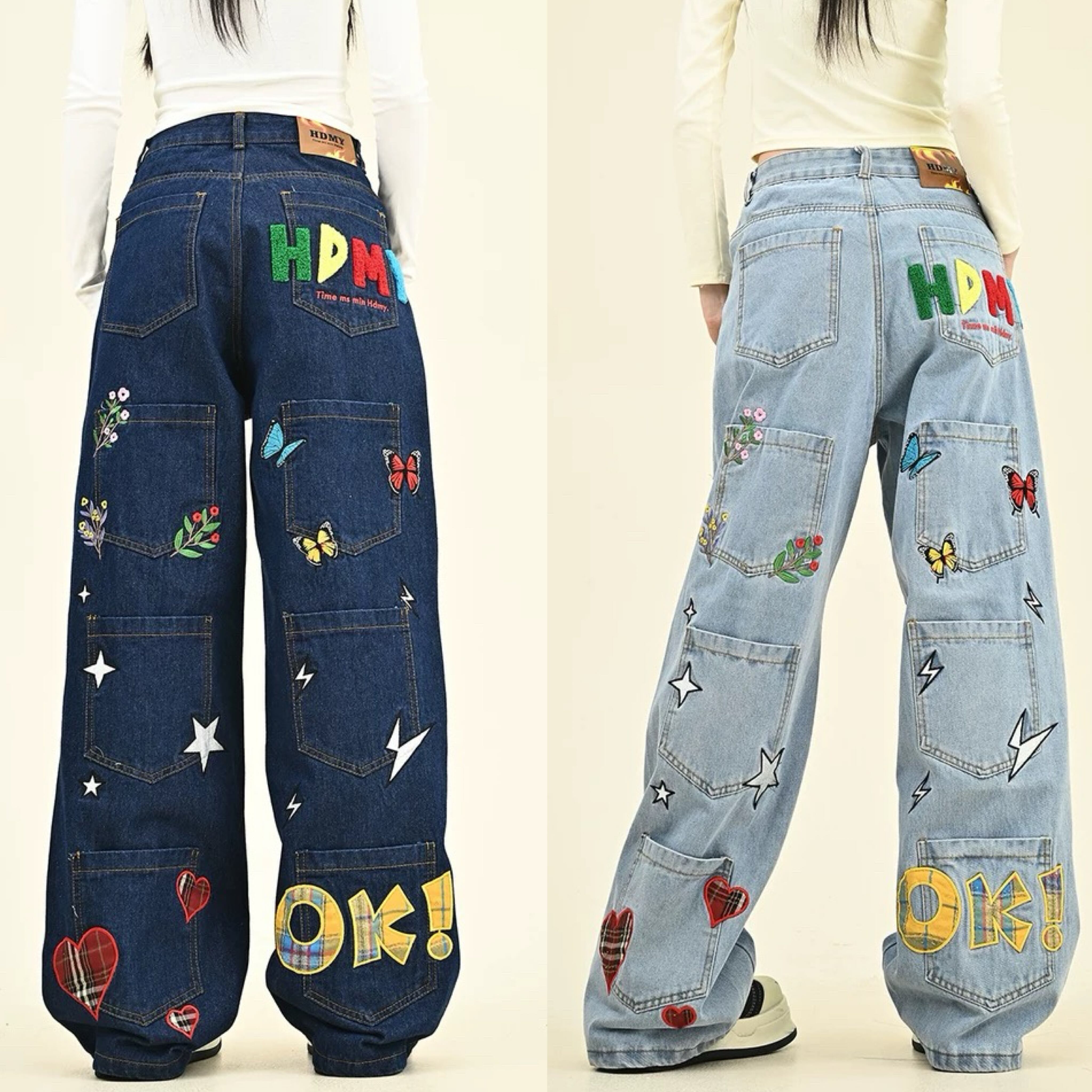 デニム パッチワーク ハート 赤 黄色 可愛い チェック