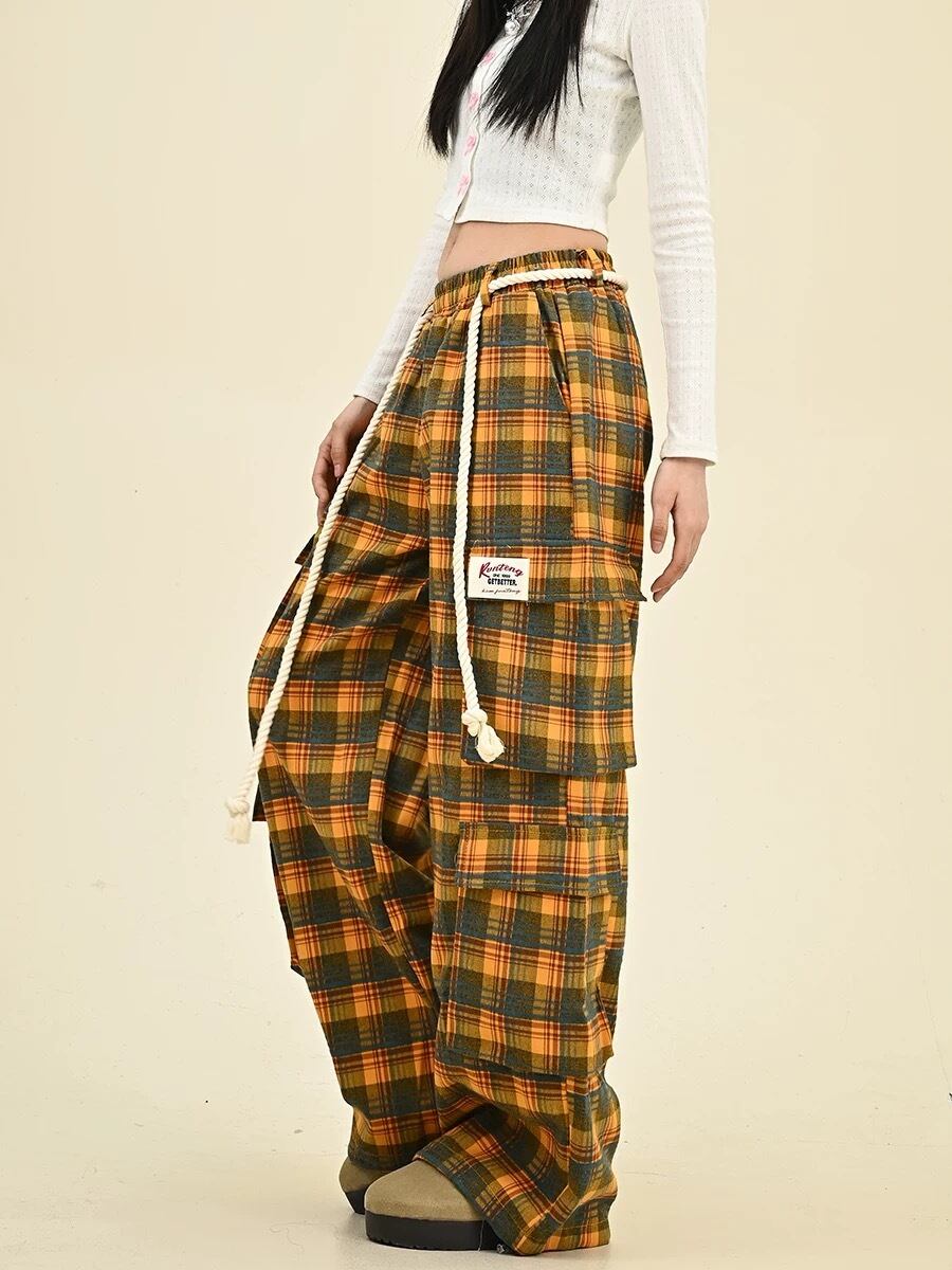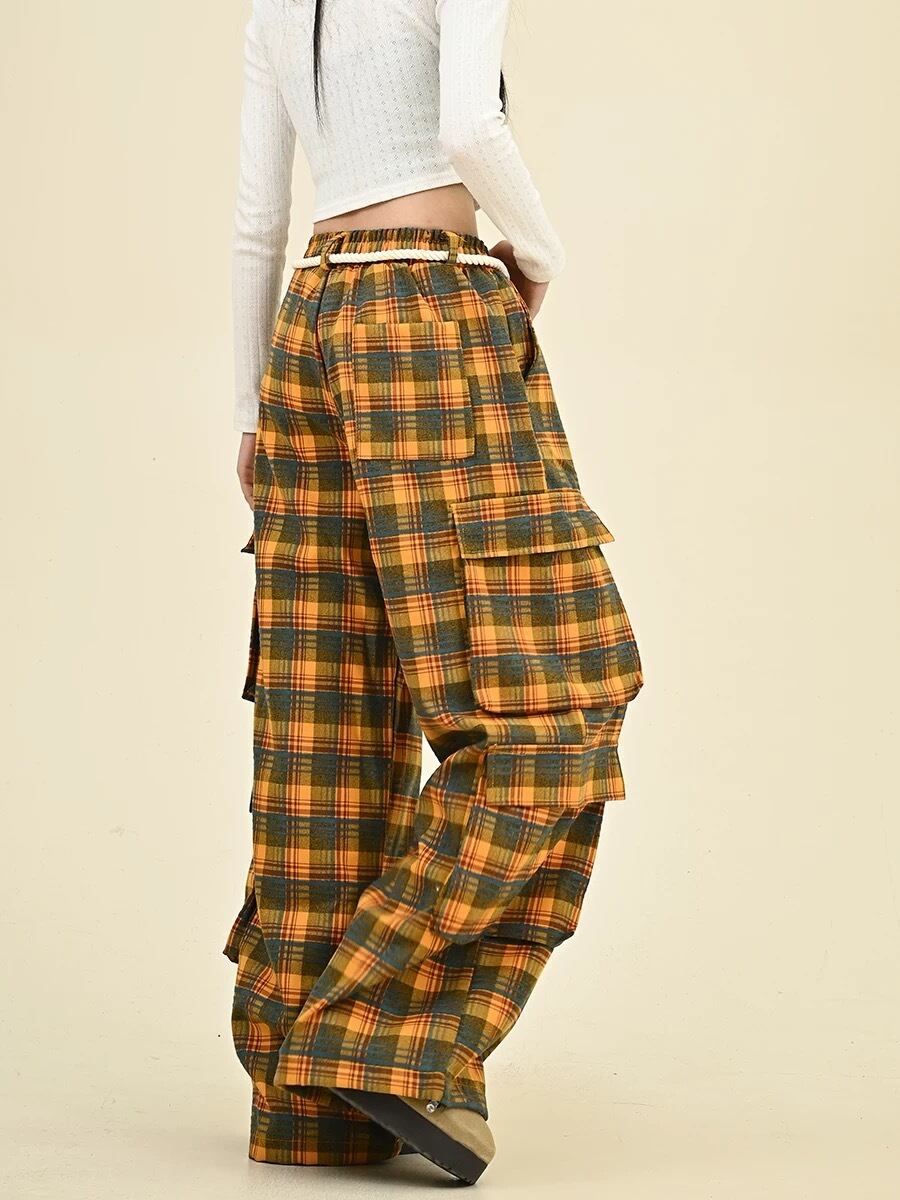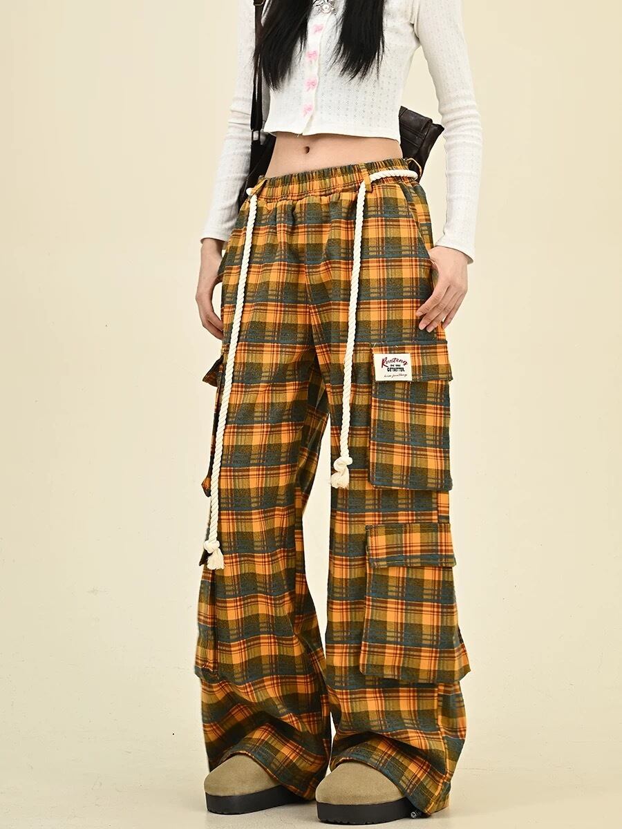 黄色 赤 チェック ネルシャツ