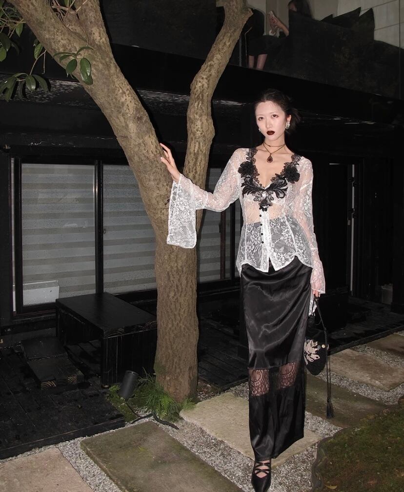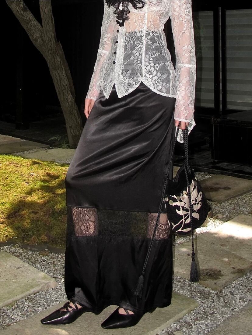 黒 シースルー レース ブラック タイト セクシー スカート ボトムス