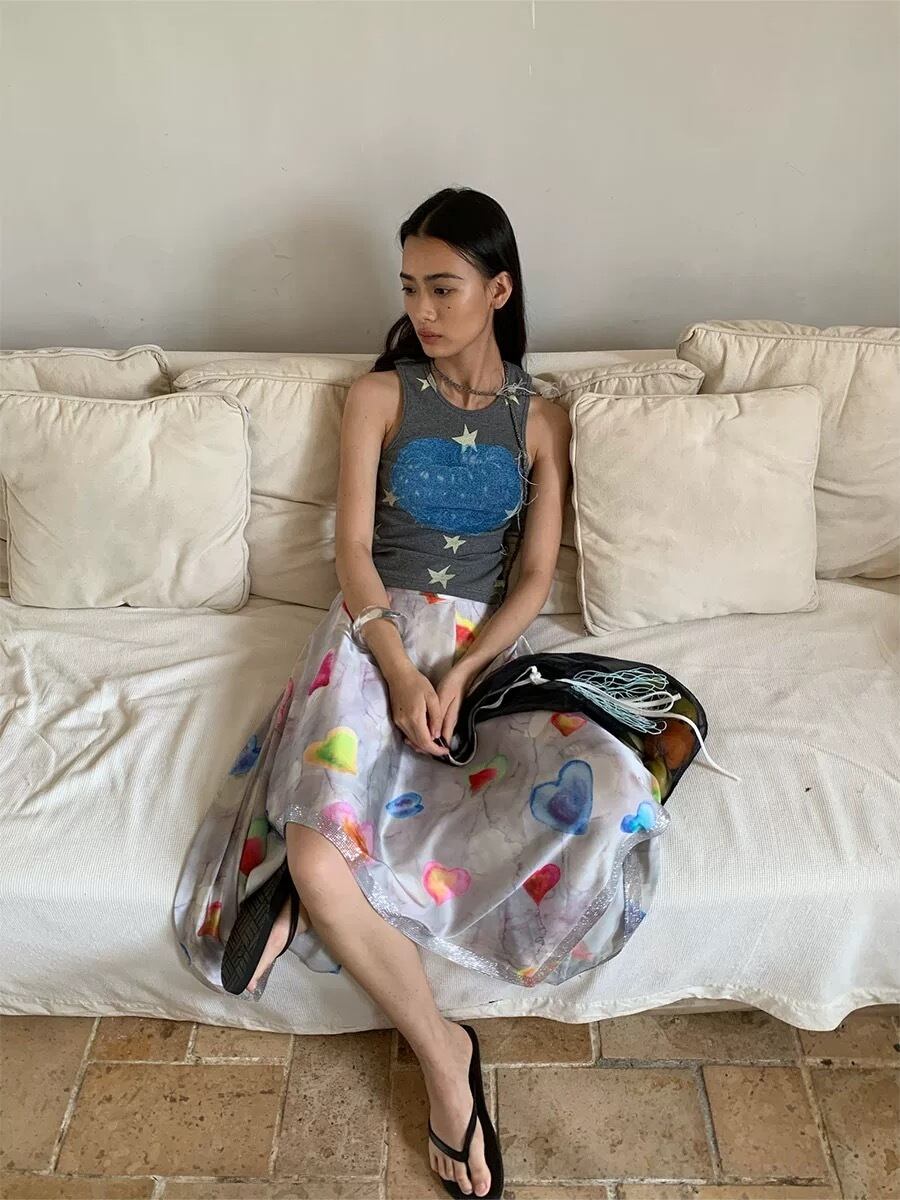 スカート グレー カラフル レインボー ボトムス 可愛い