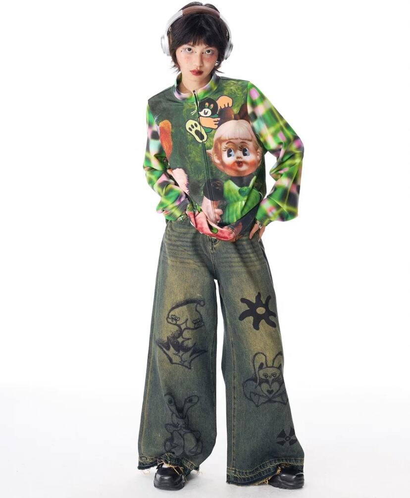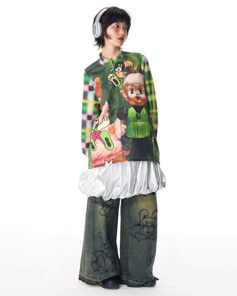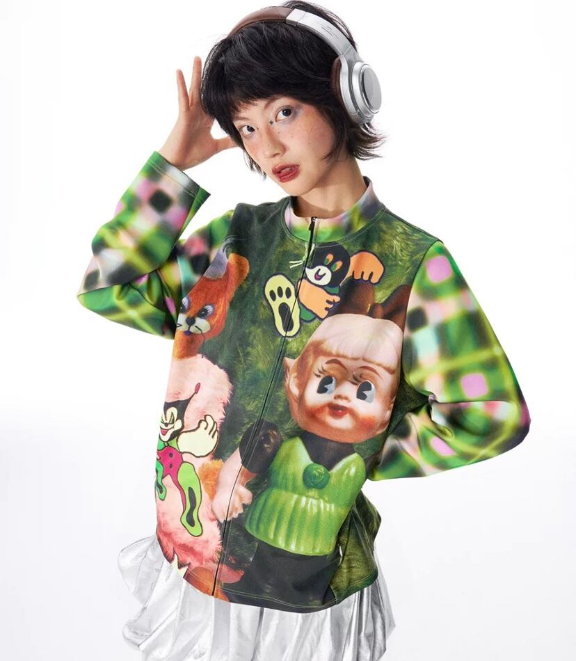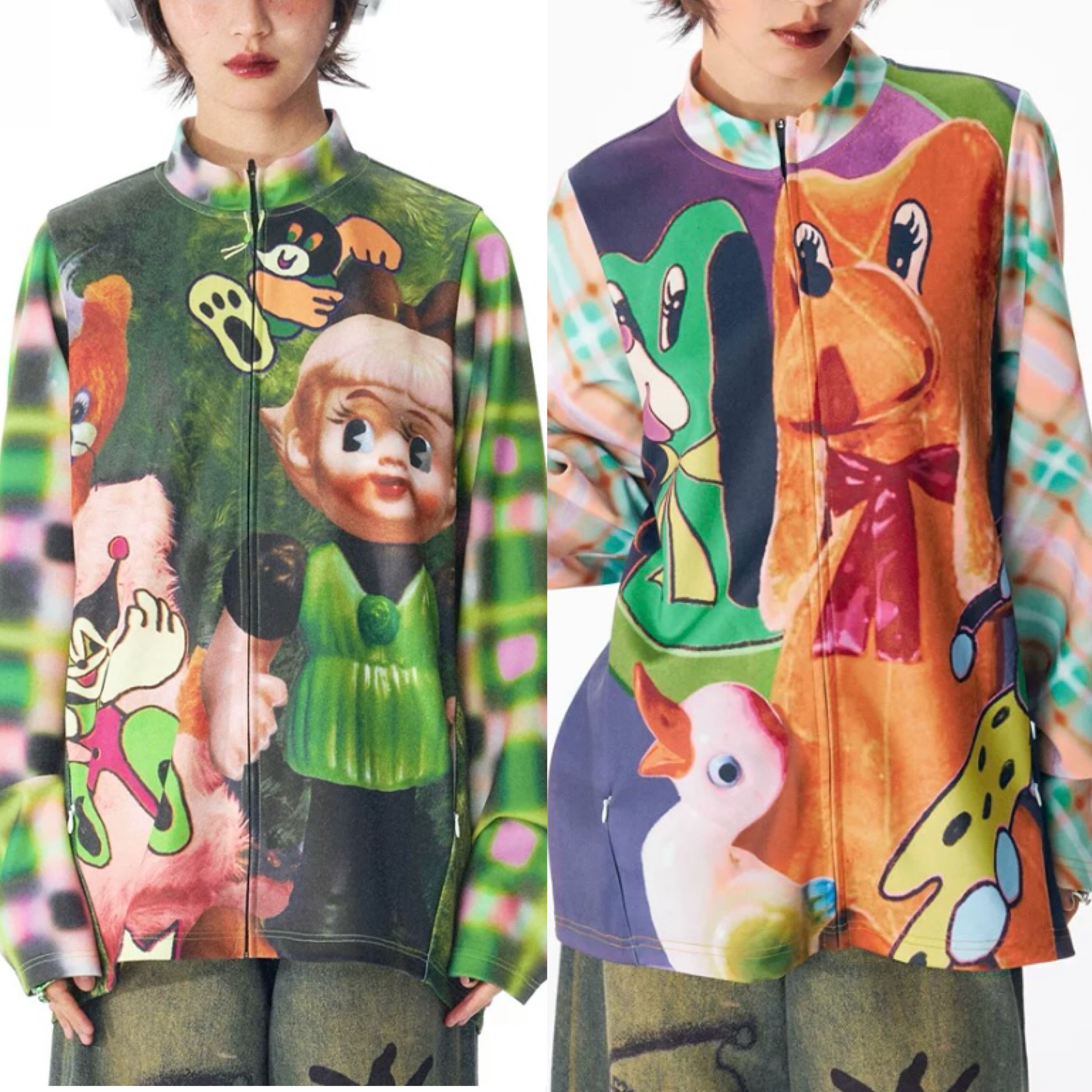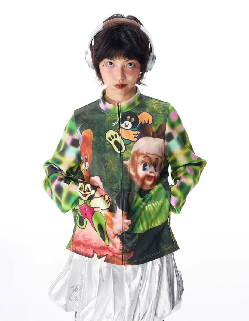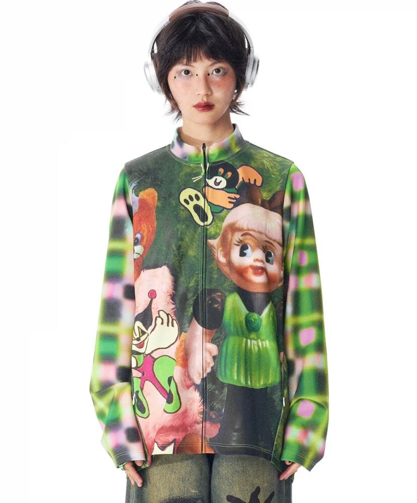 トップス カジュアル カーディガン 犬 人形 可愛い 緑