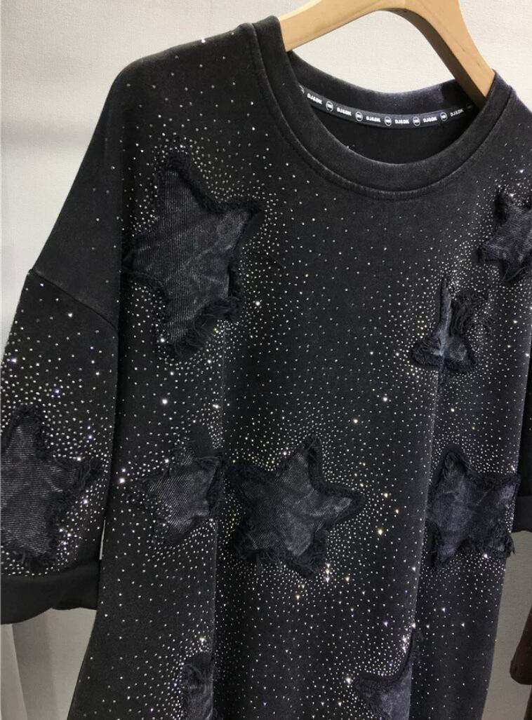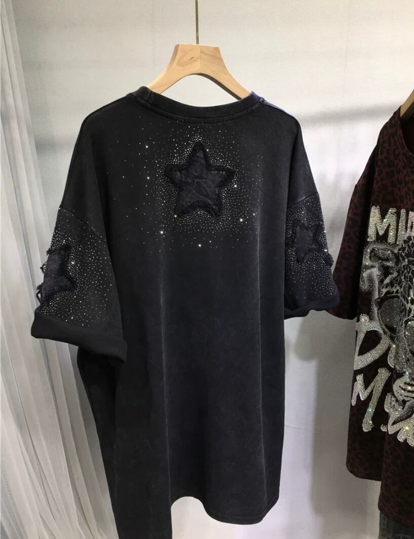 キラキラ ラインストーン ダメージ Tシャツ 星