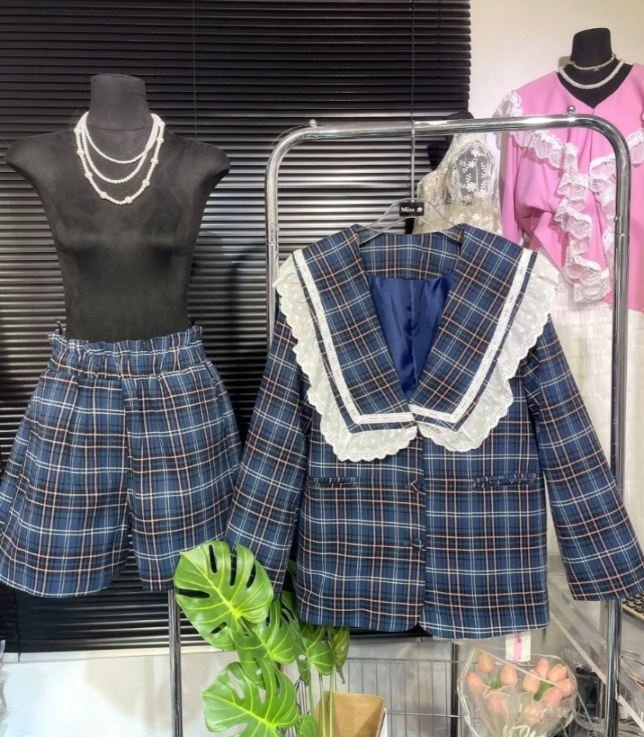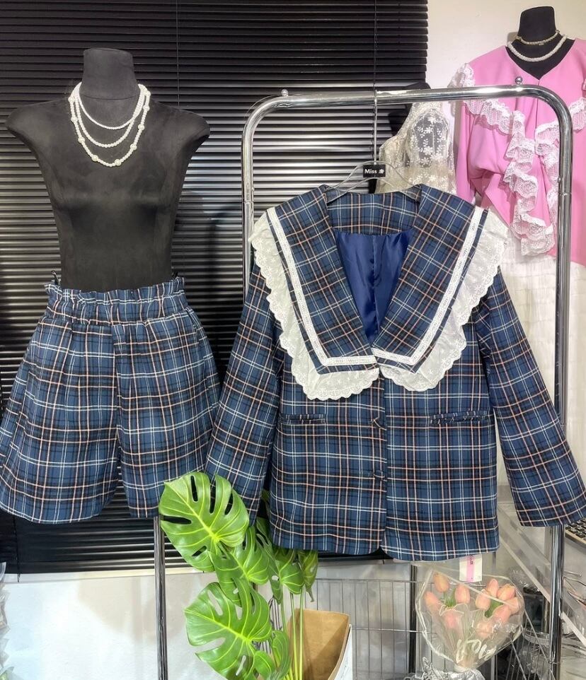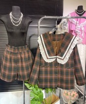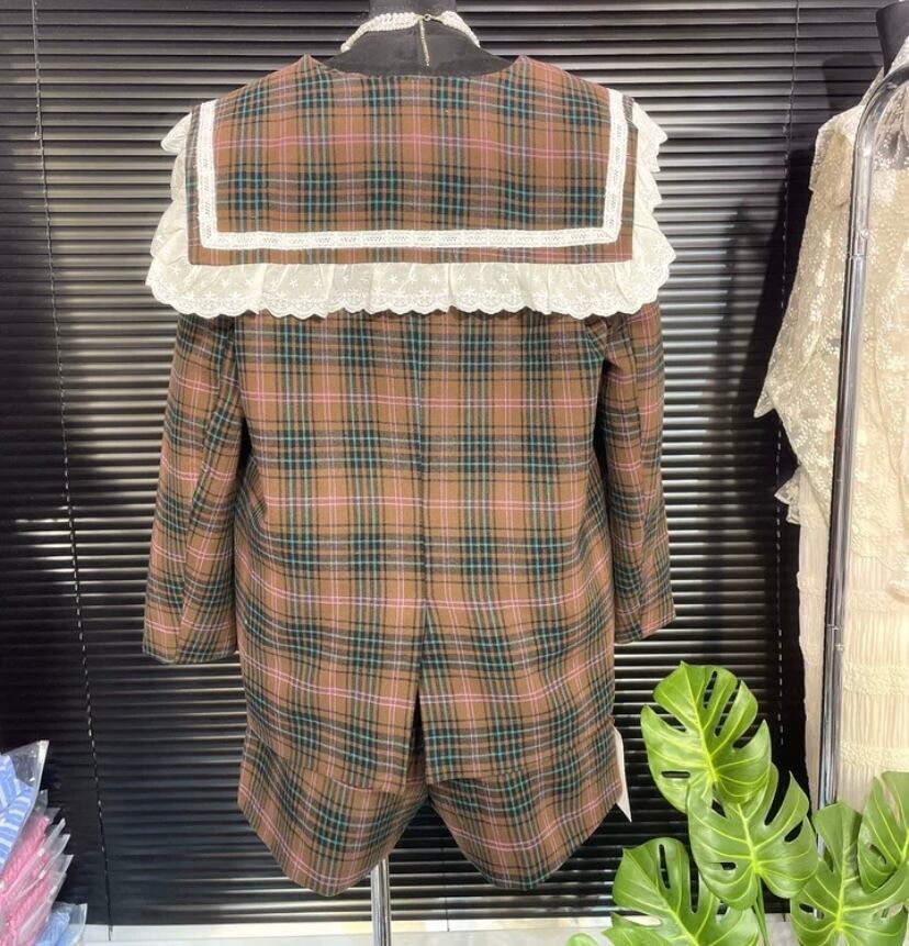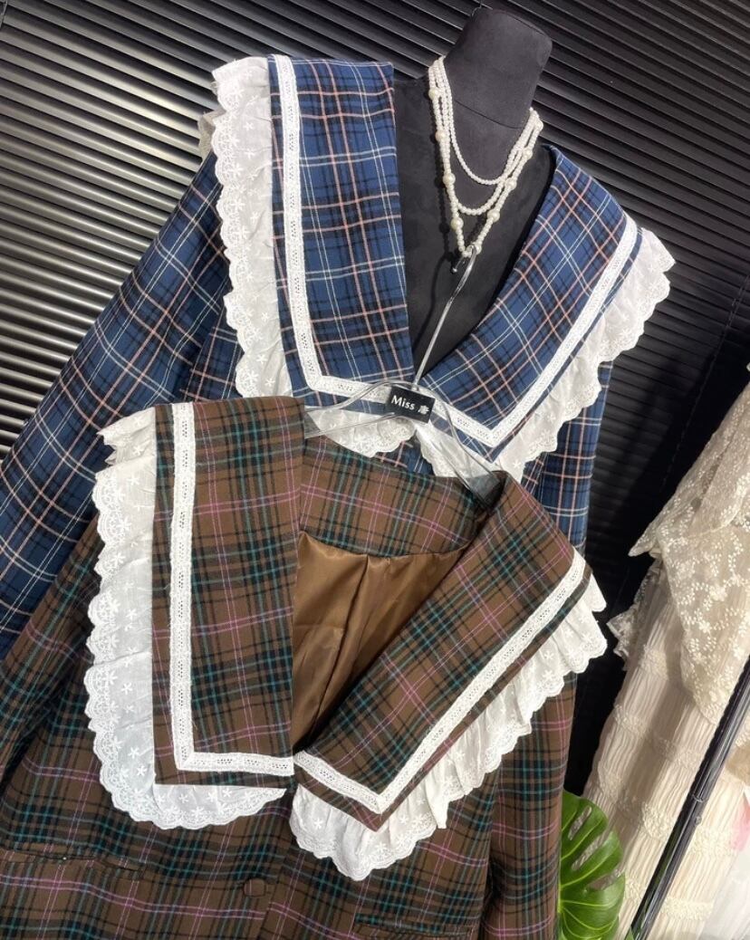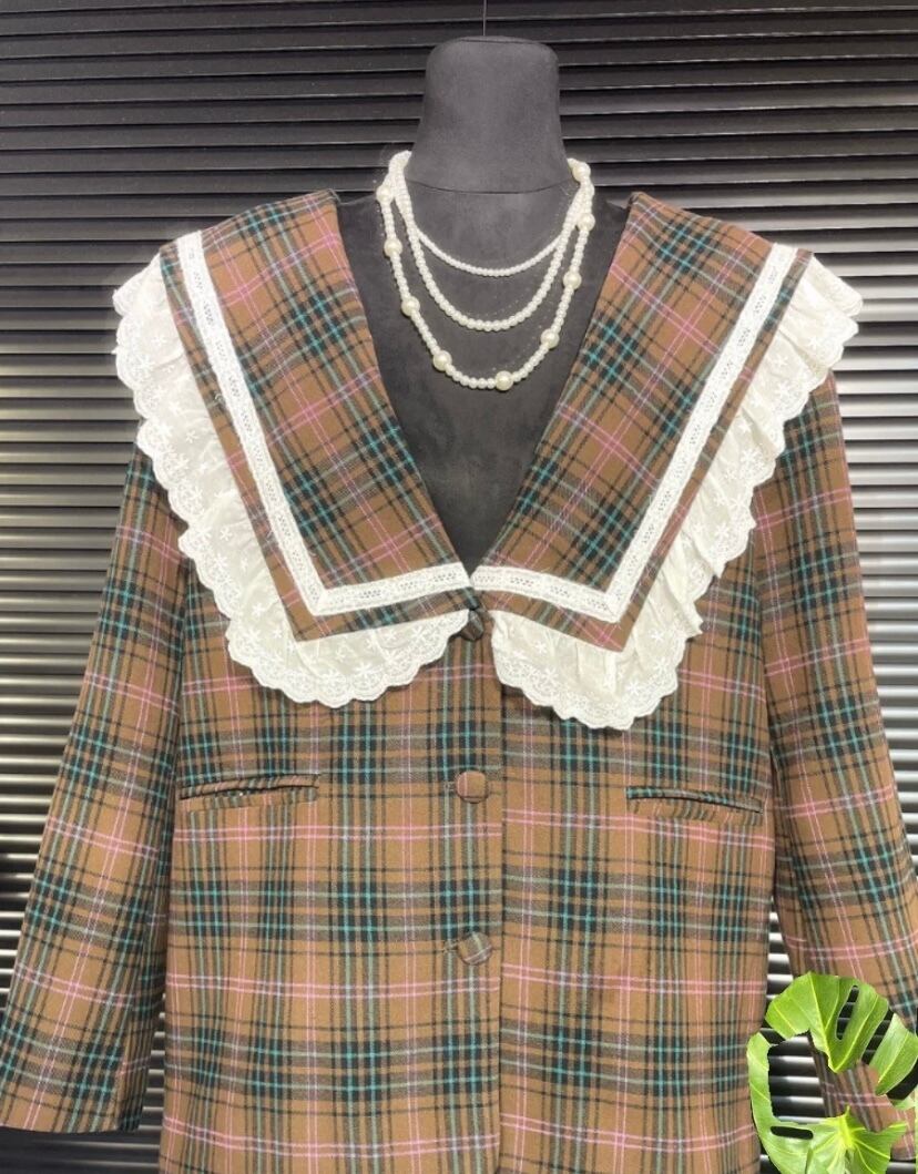 【セットアップ】チェック 茶色 ネイビー ジャケット