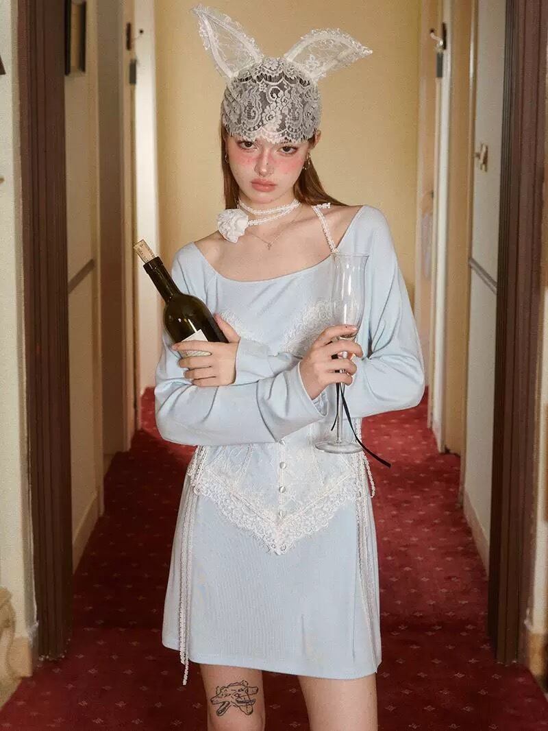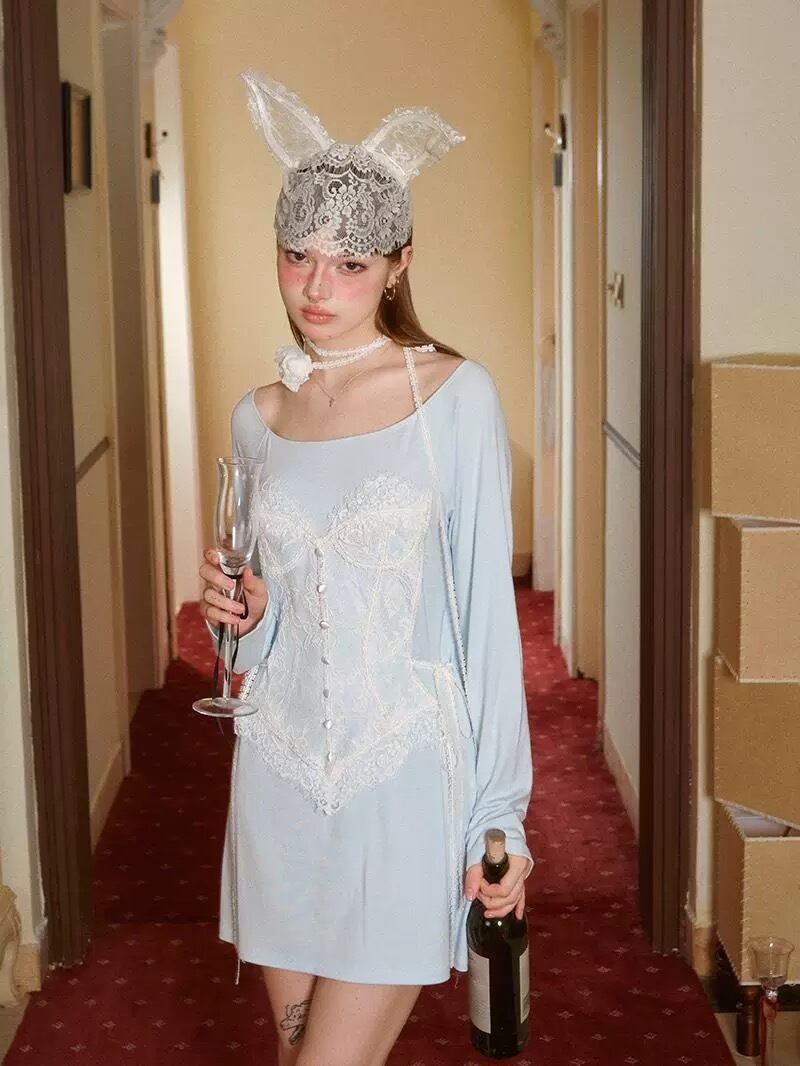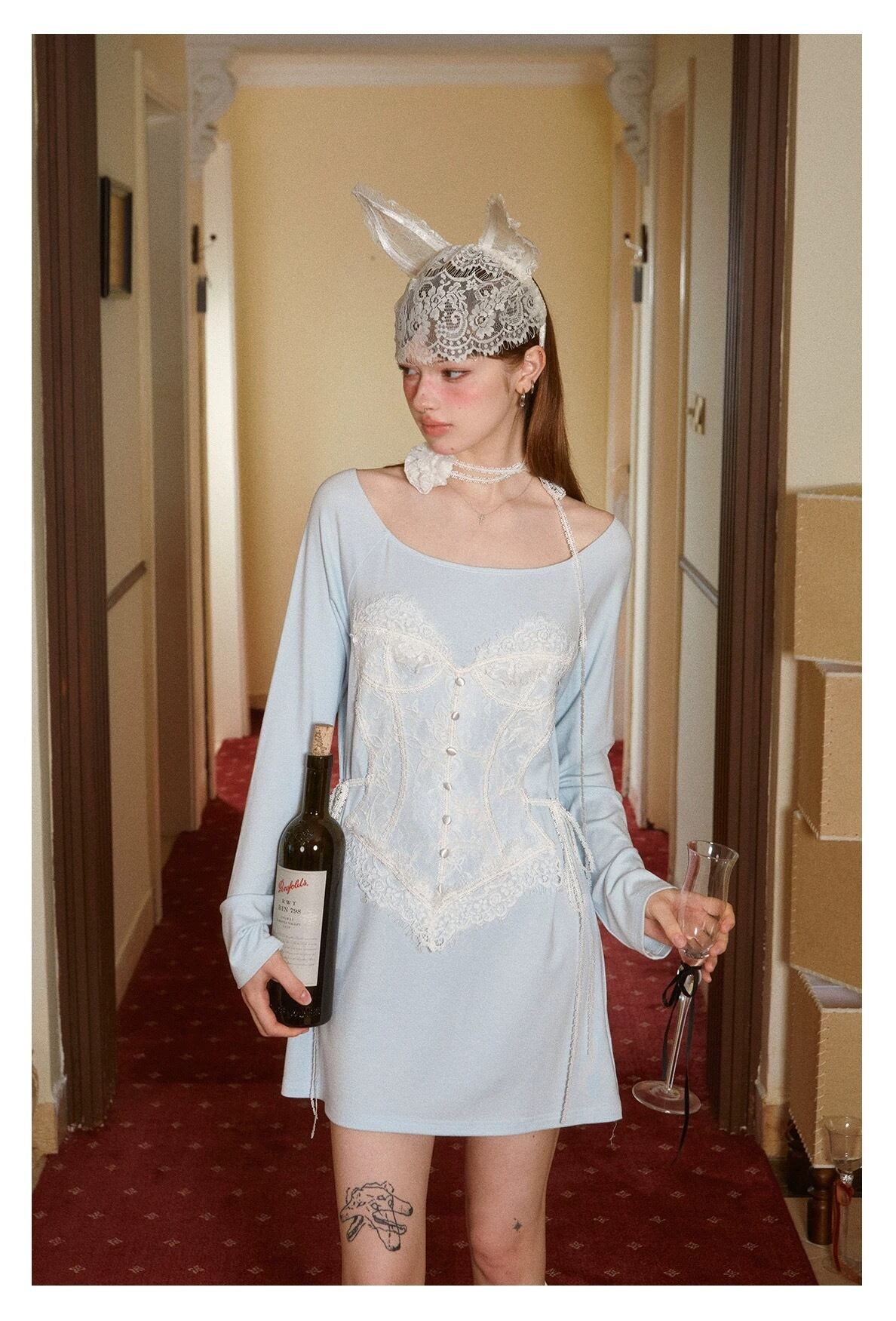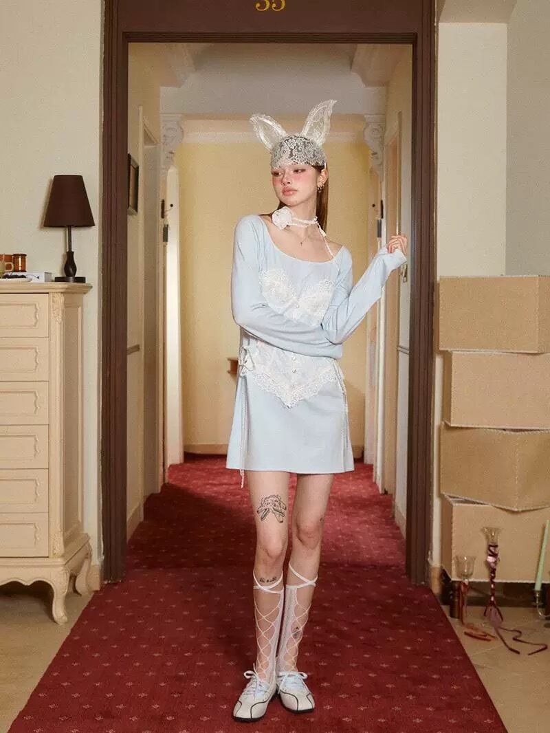 水色 ガーリー ワンピース 可愛い 騙し絵