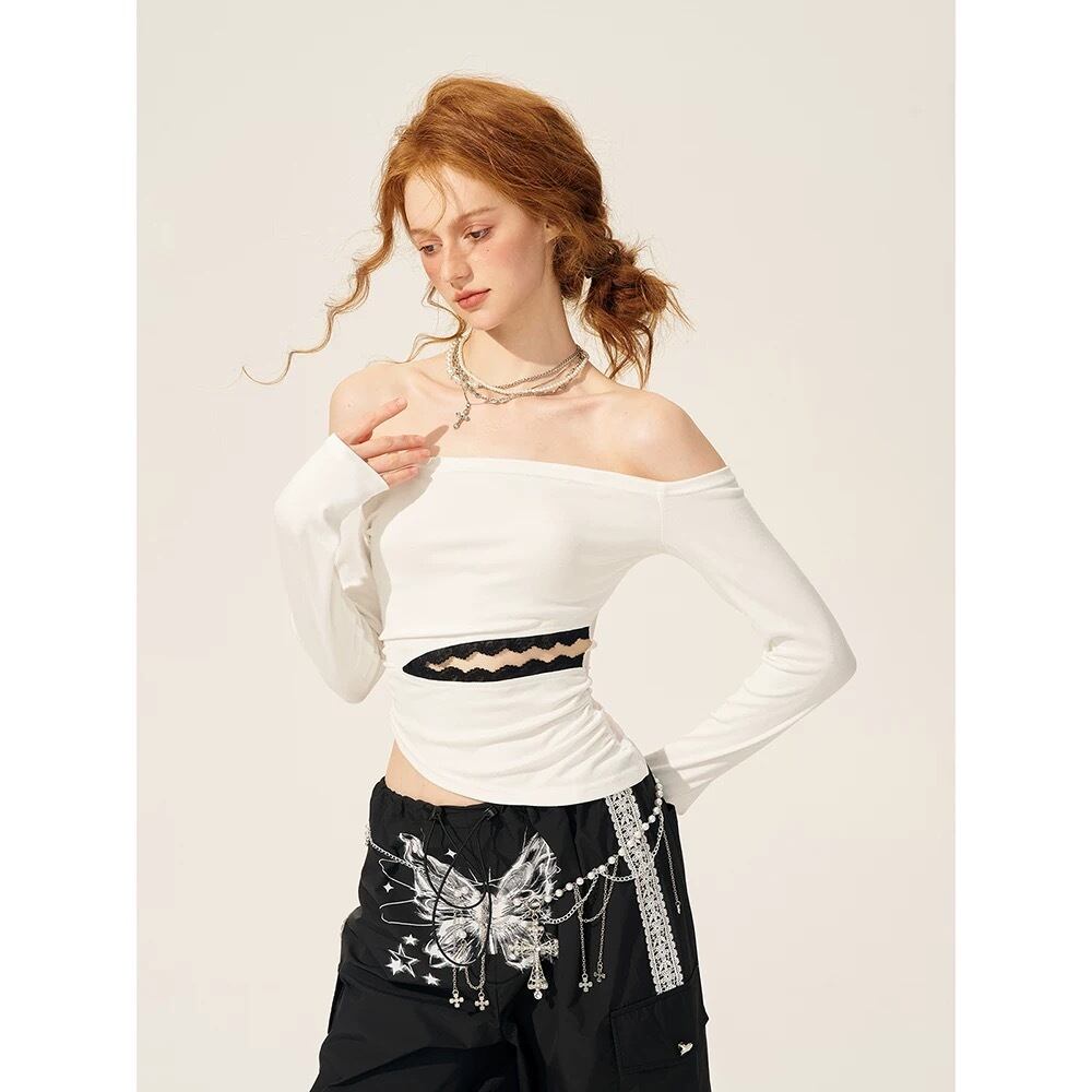オフショルダー シースルー 黒 セクシー 白