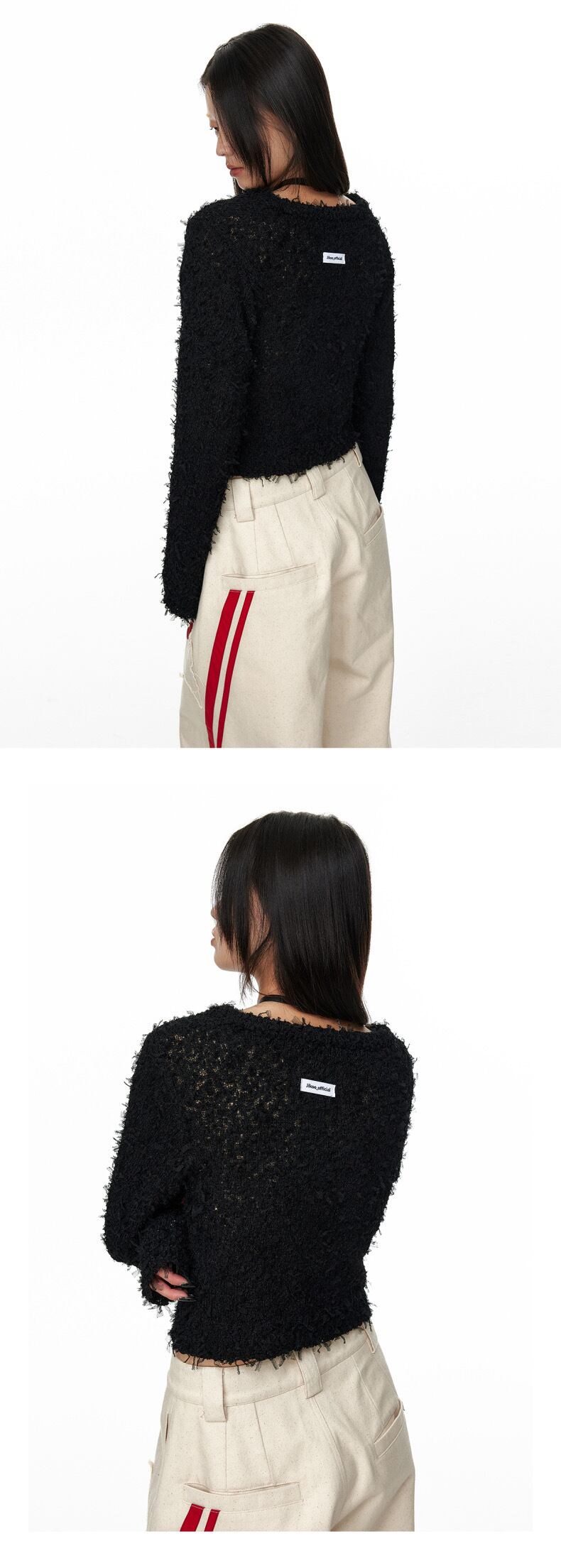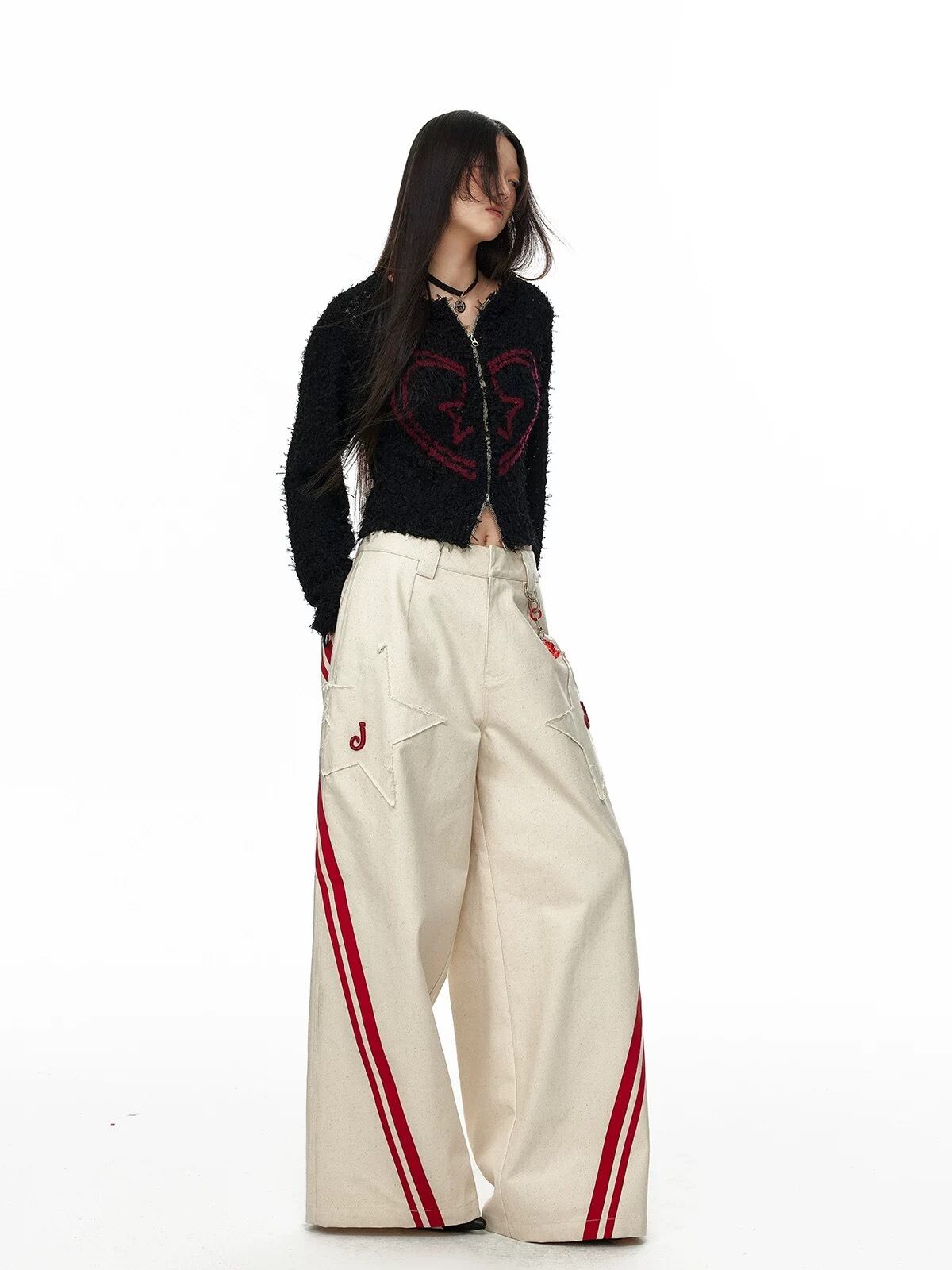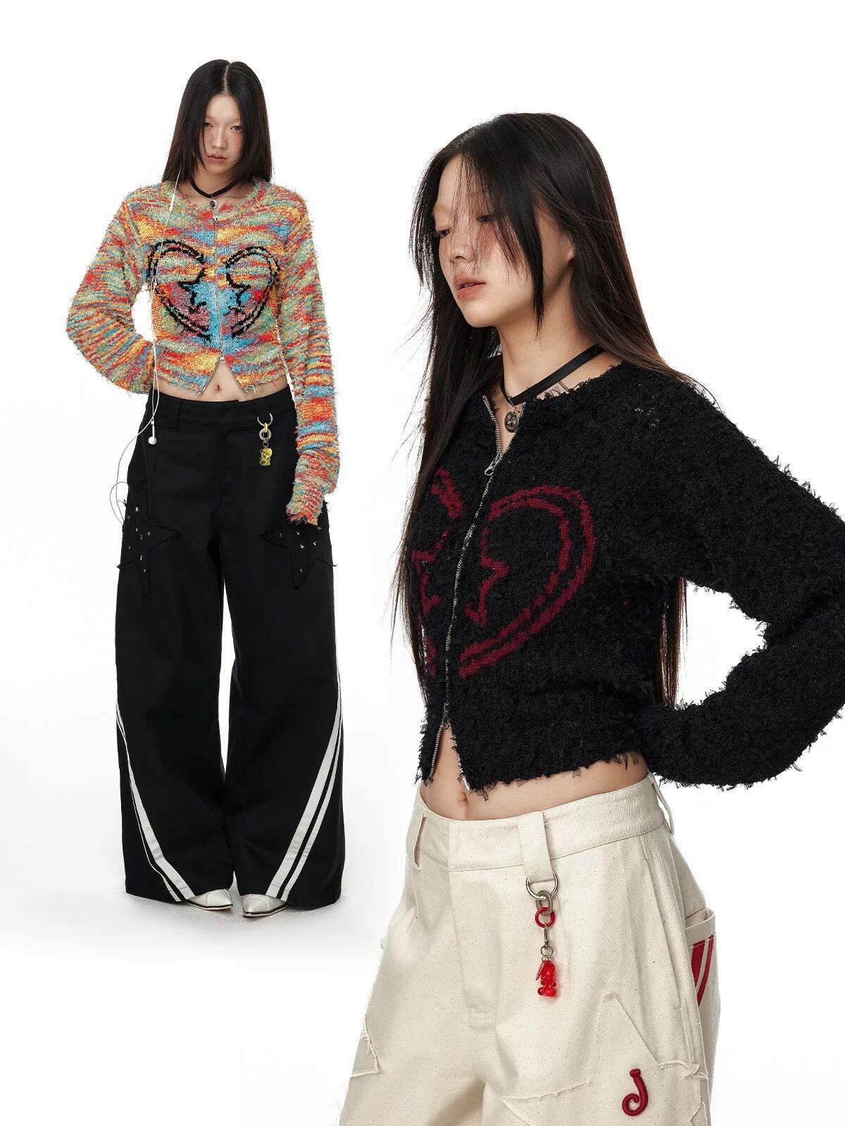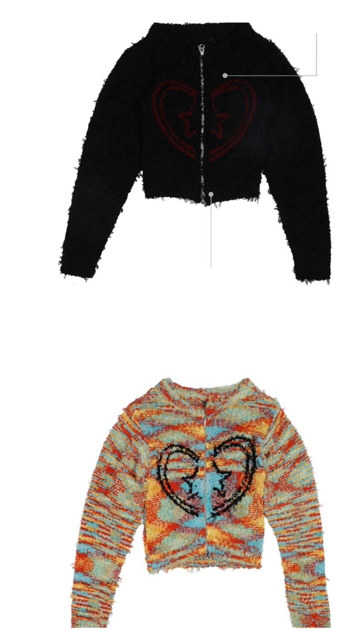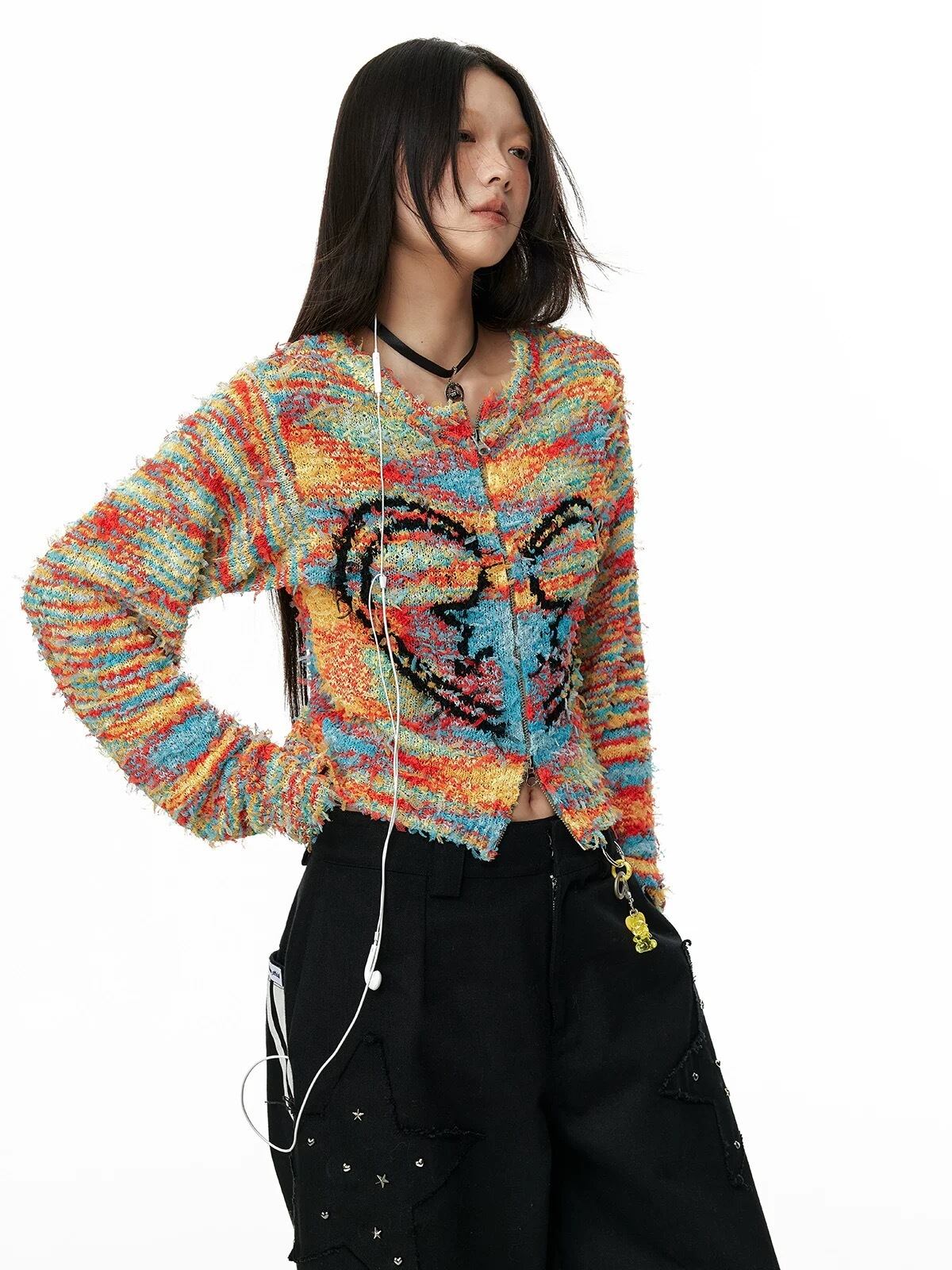 カラフル ボーダー チェック ハート セーター カーディガン 黒