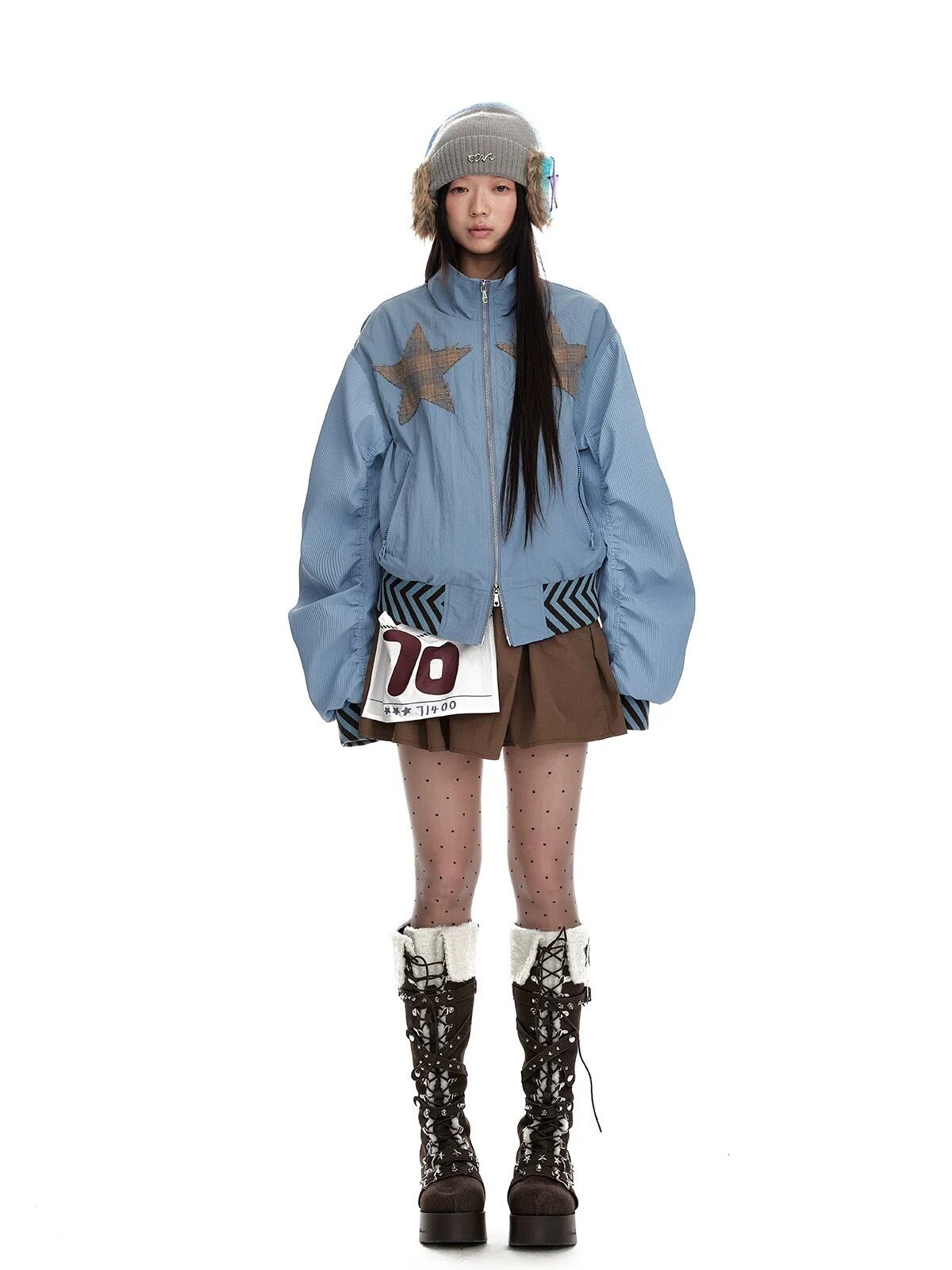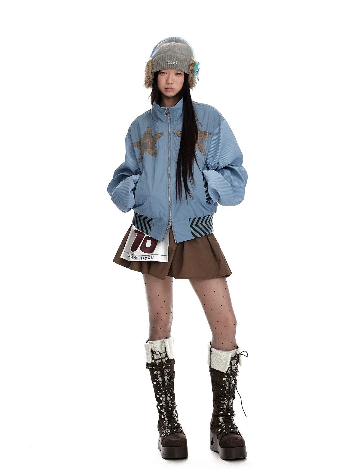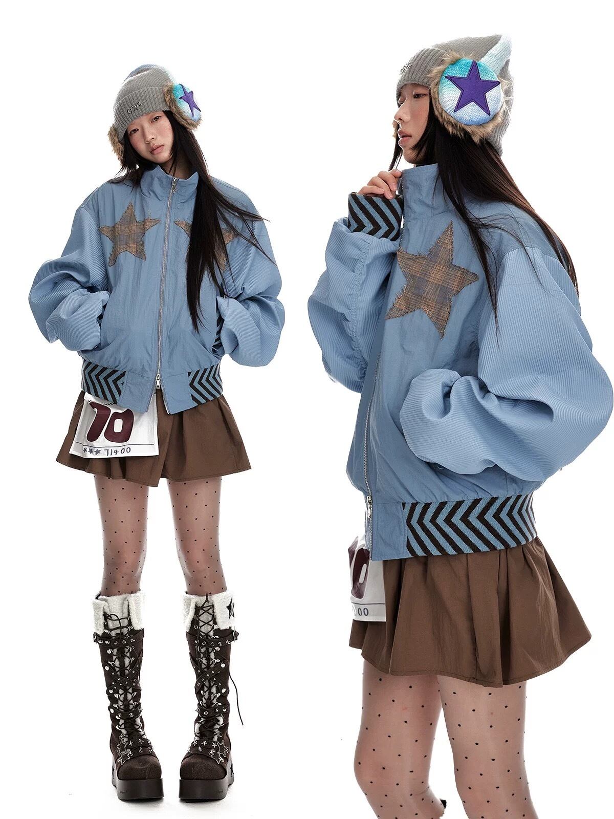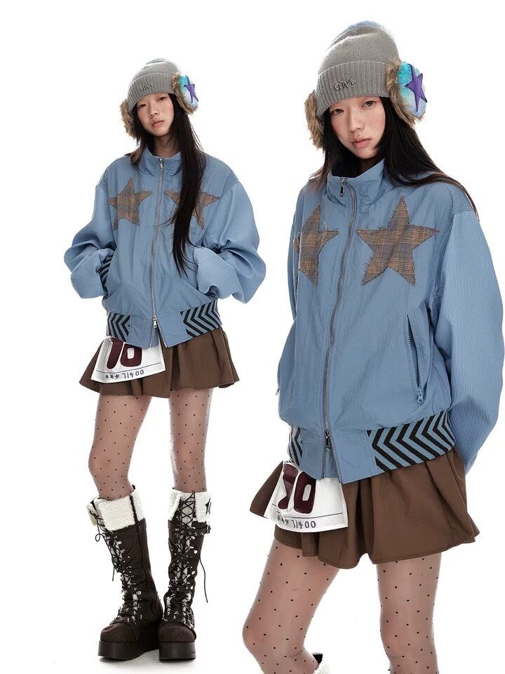 ジャンパー ブルゾン 水色 星 カーディガン アウター