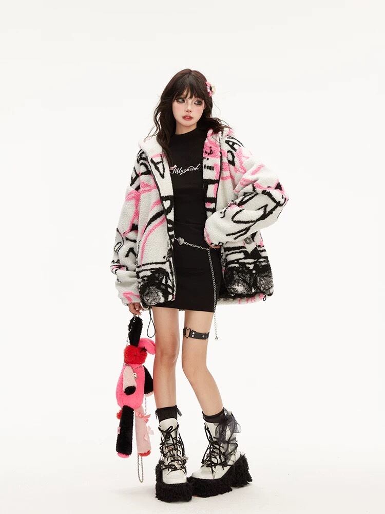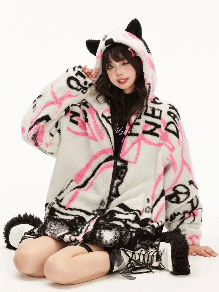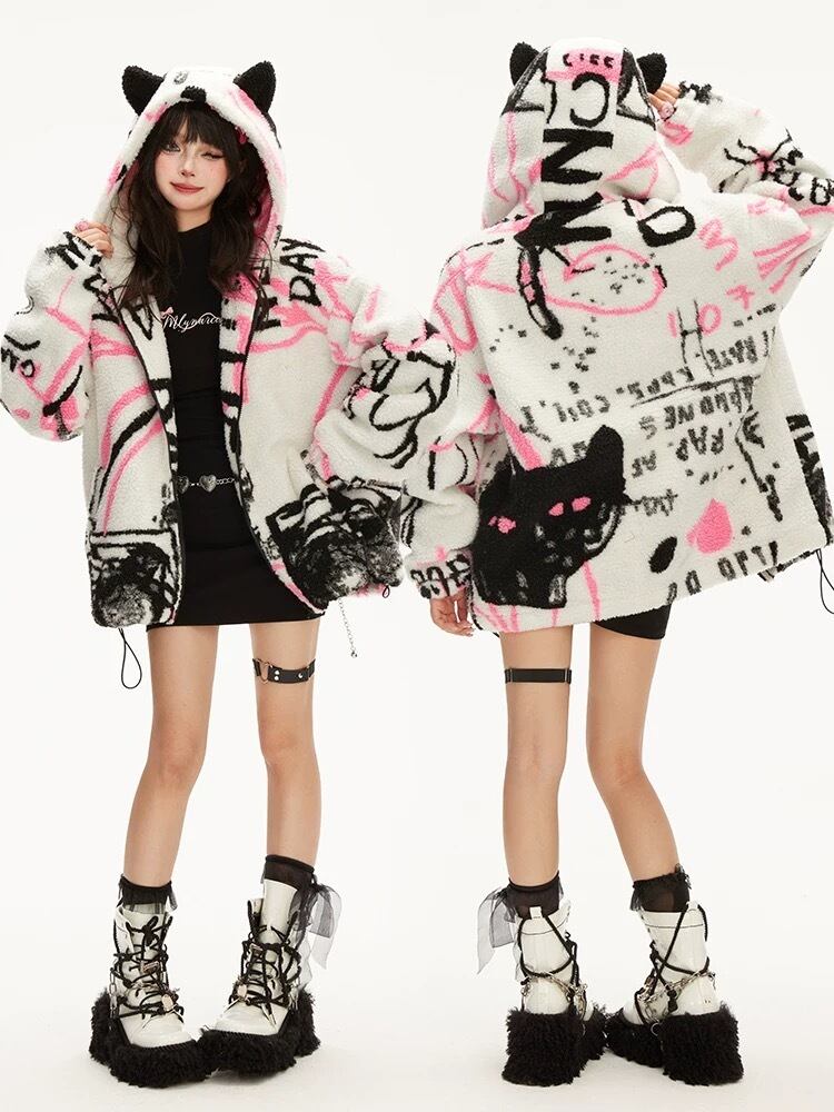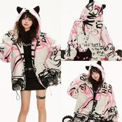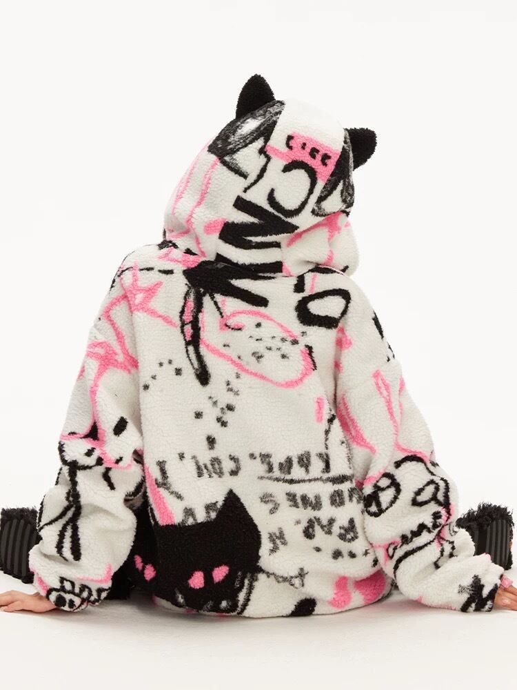 ねこ耳 パーカー ジャンパー 落書き フリース