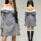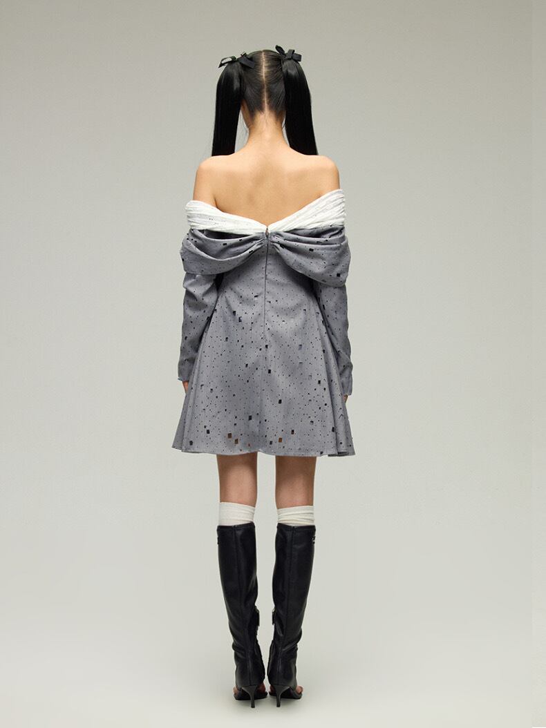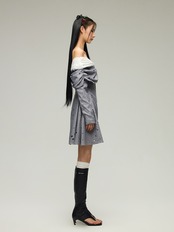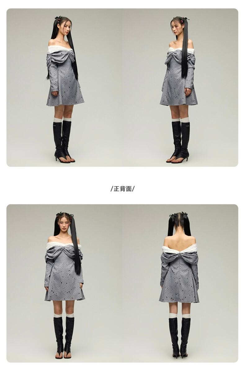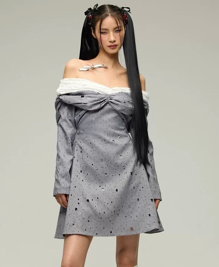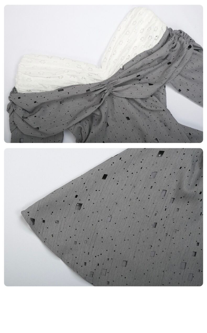グレー オフショルダー エレガント ワンピース ブラウス