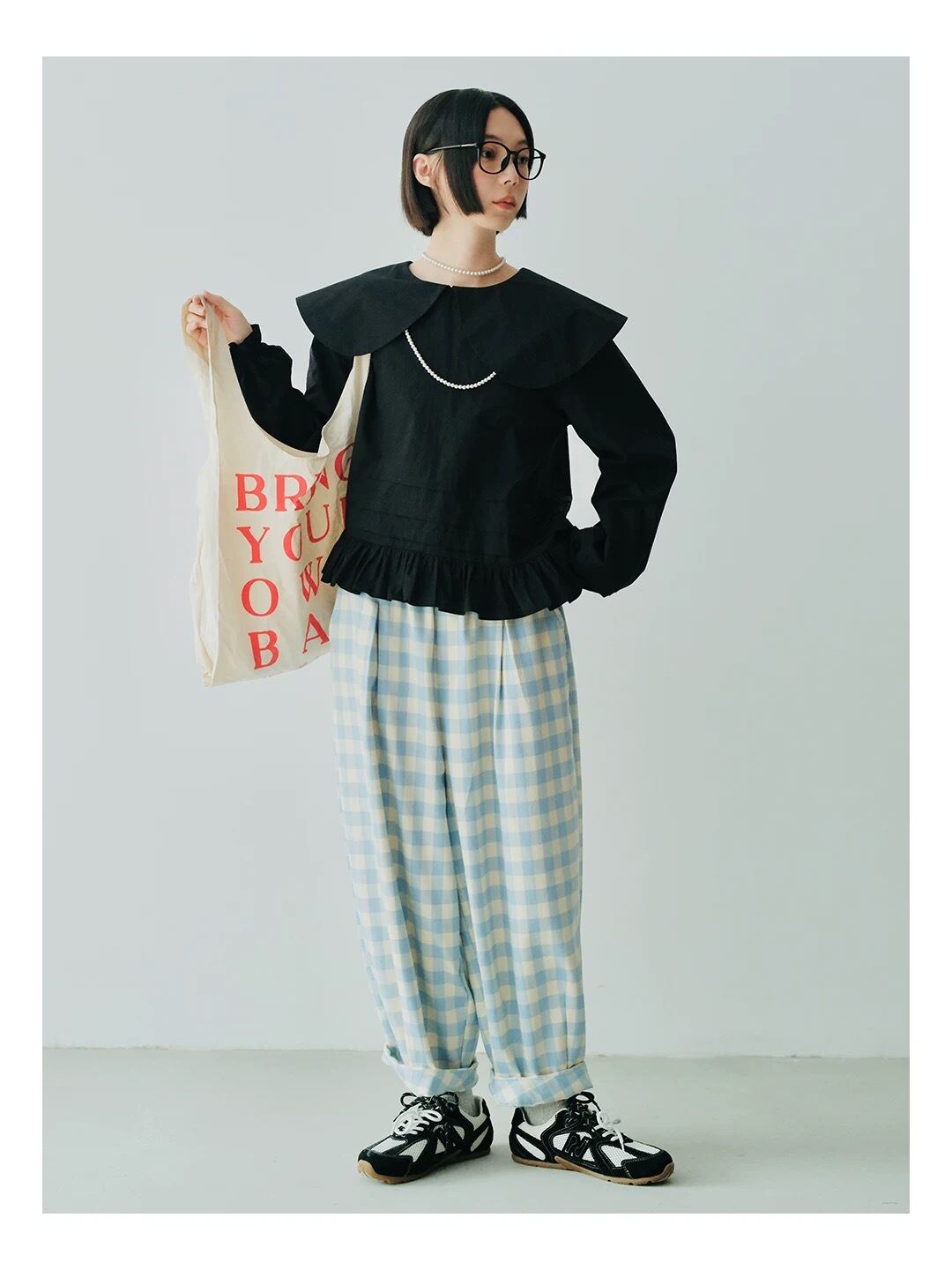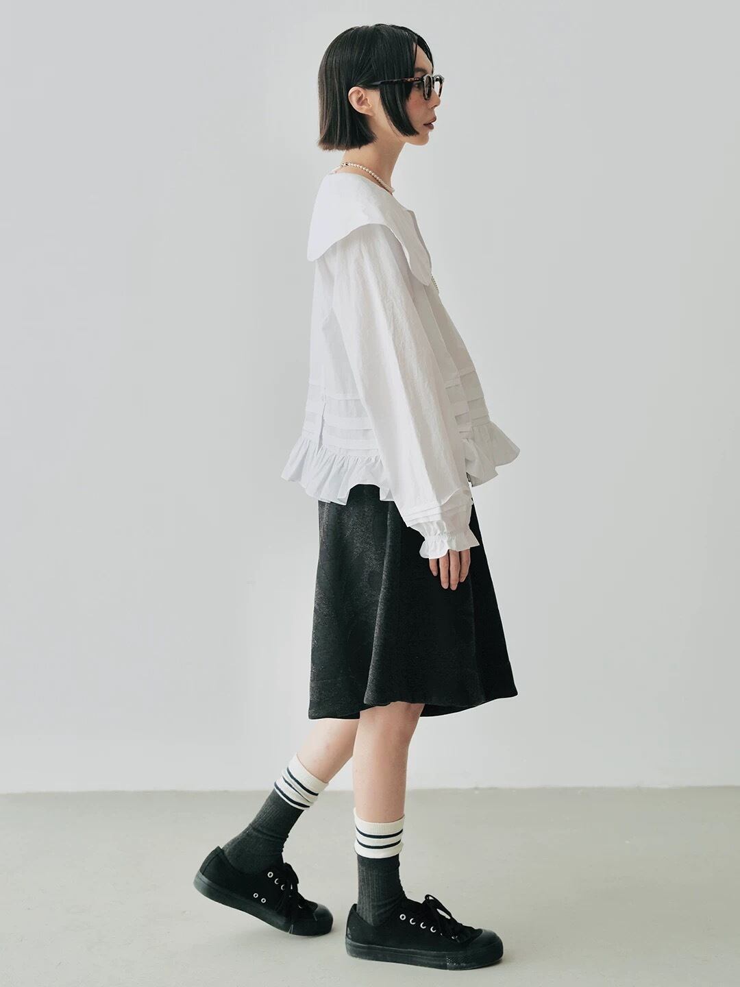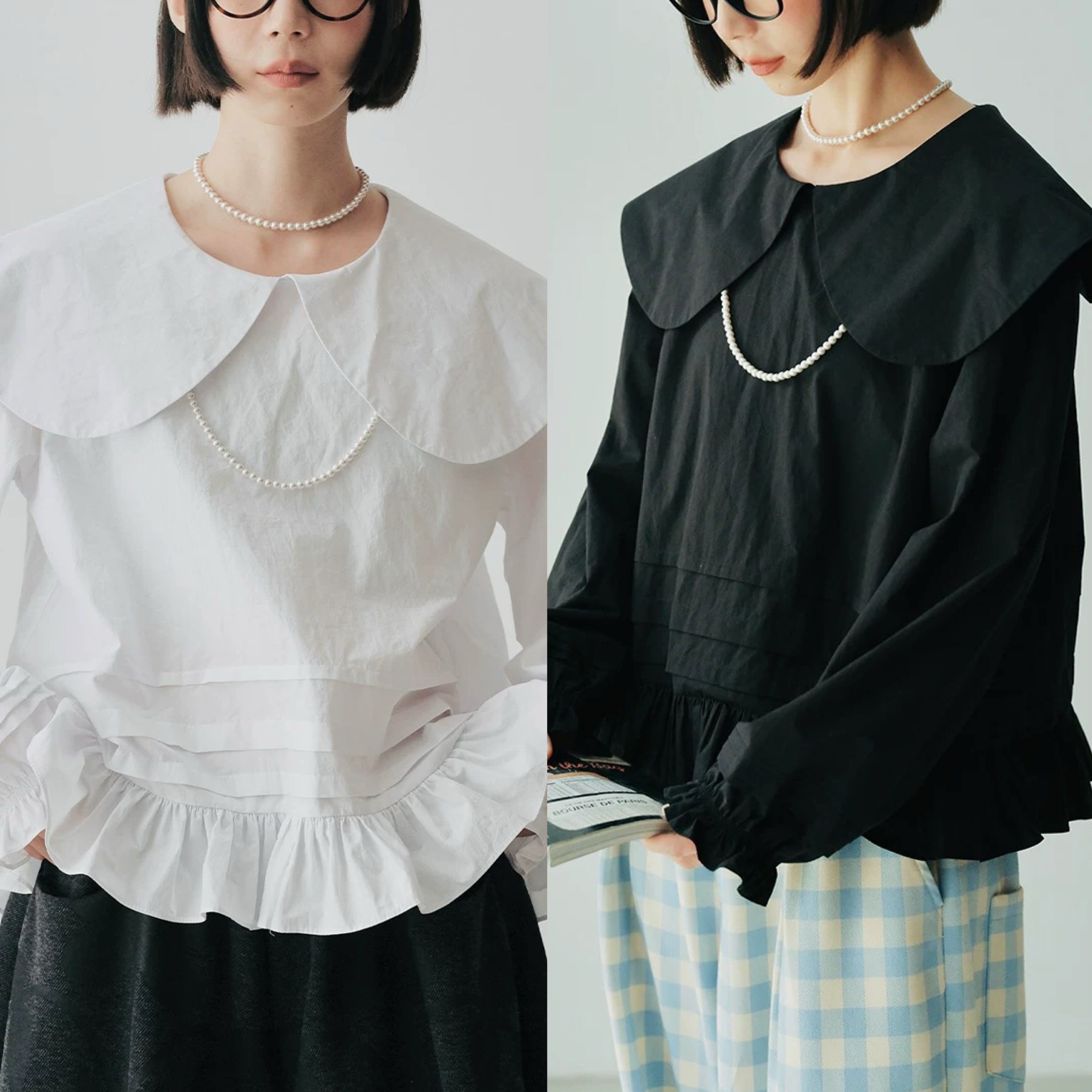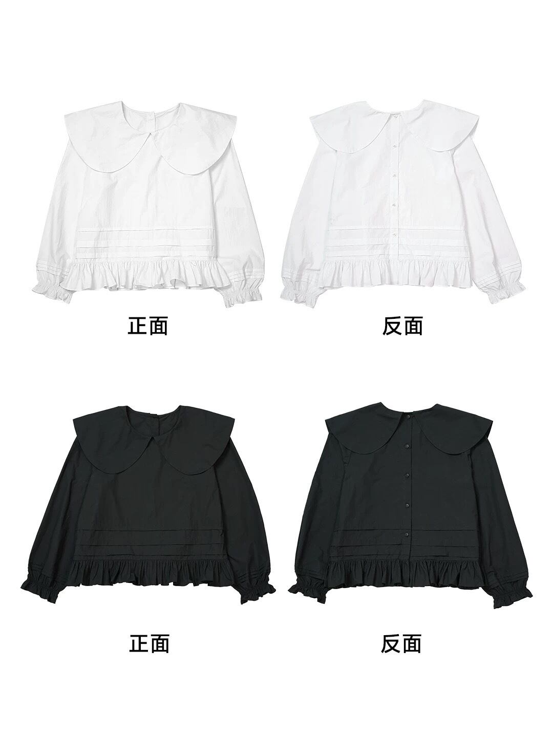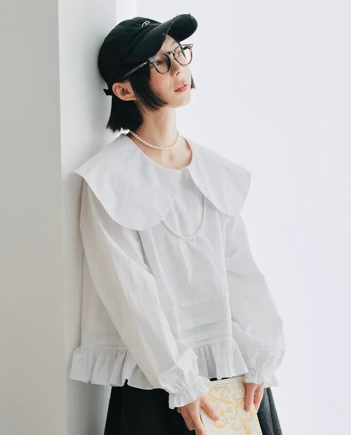 丸襟 デカ襟 ブラウス 白 黒 シンプル