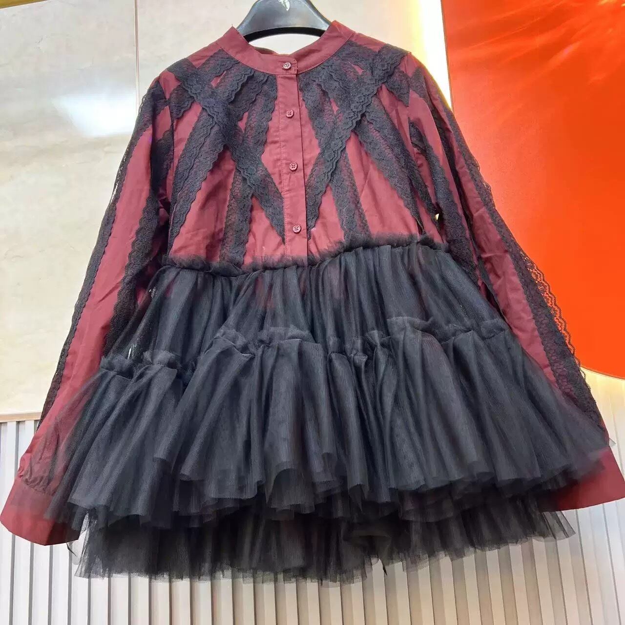 グレー 赤 ワンピース カーディガン