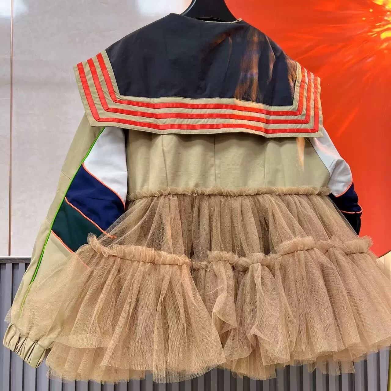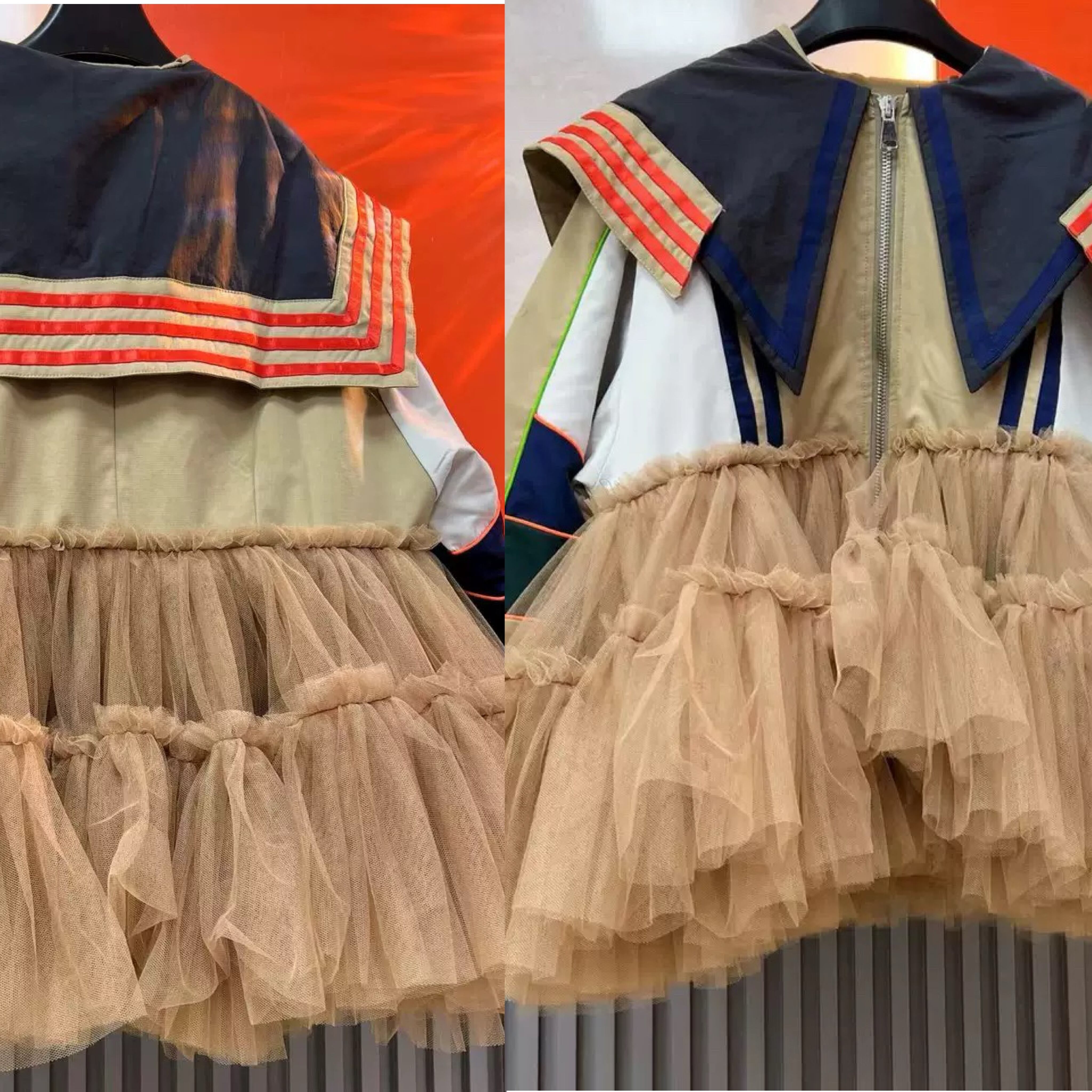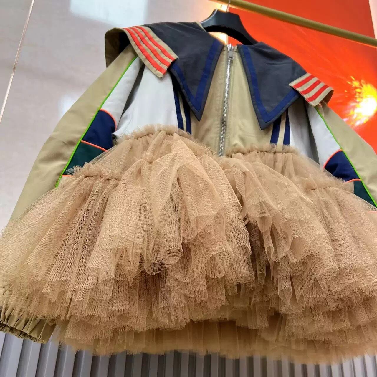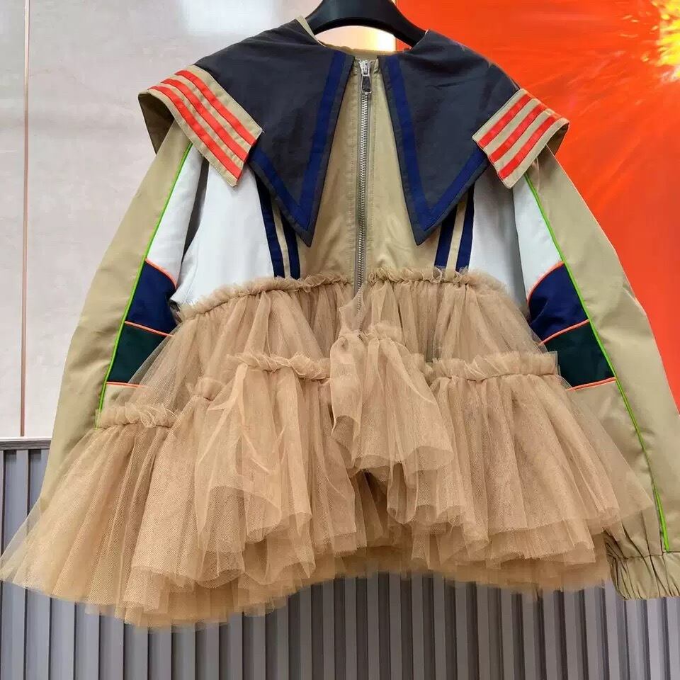 ベージュ ジャケット ワンピース 襟 ネイビー