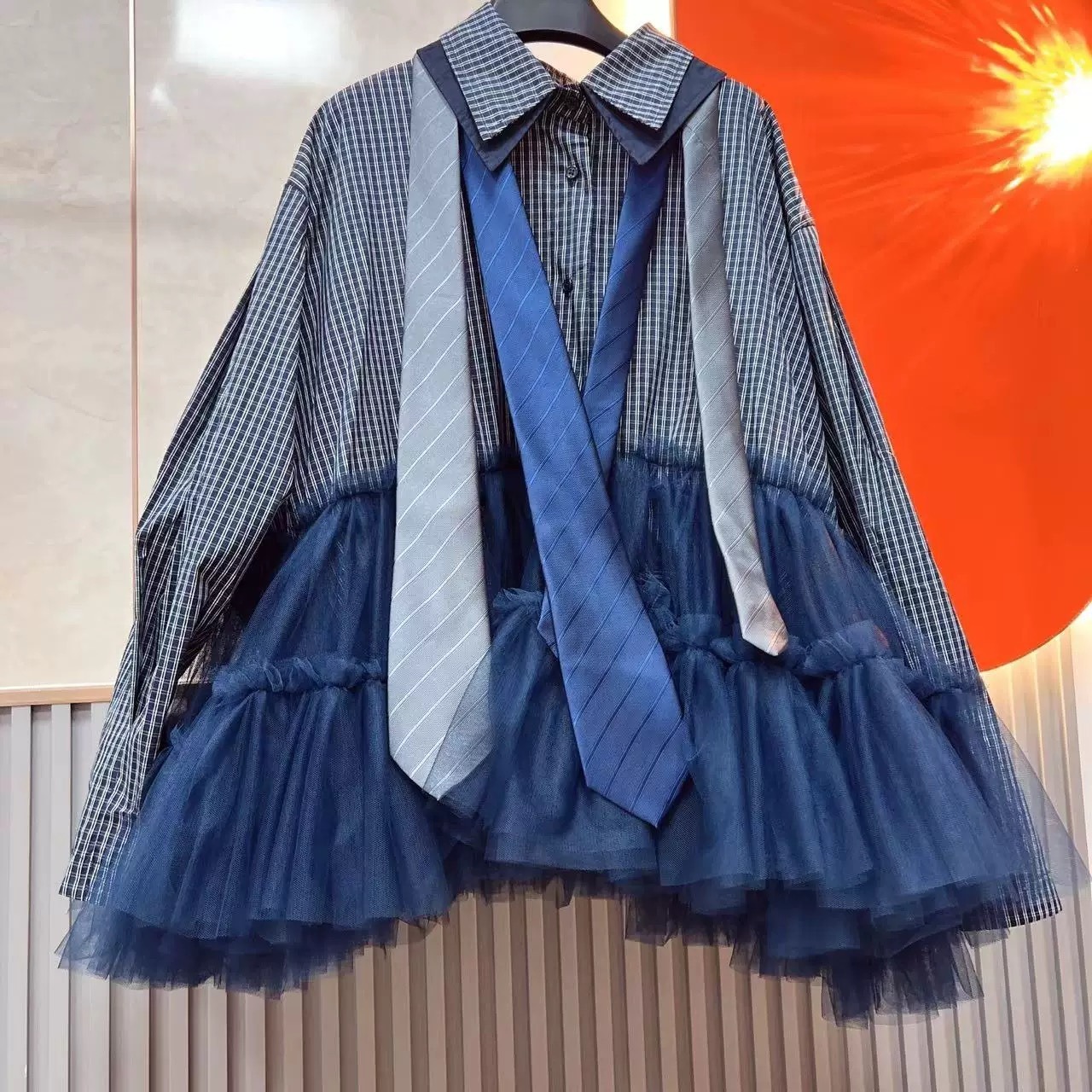 チェック 茶色 ネイビー ブラウス シャツ ワンピース ネクタイ