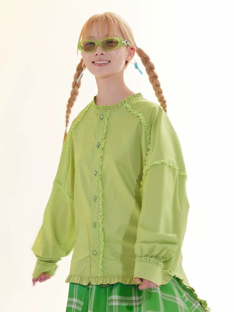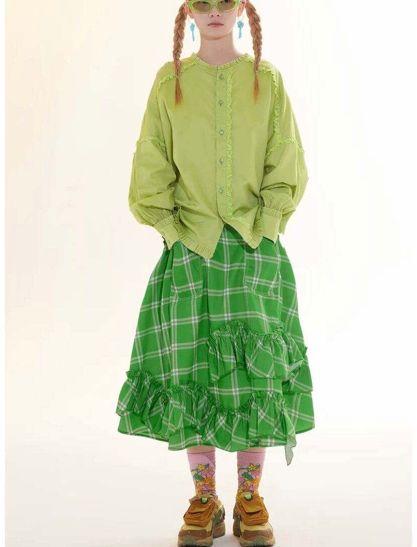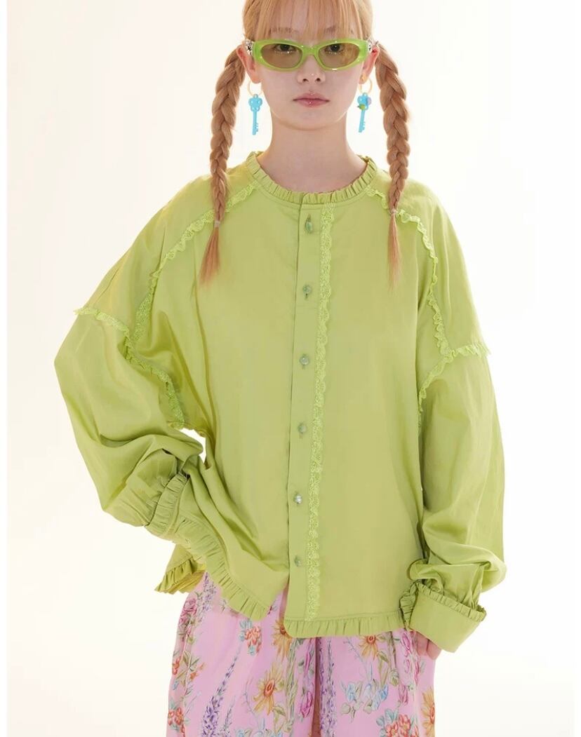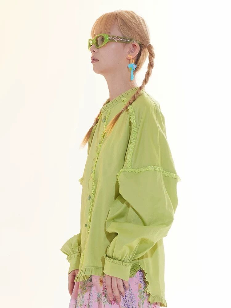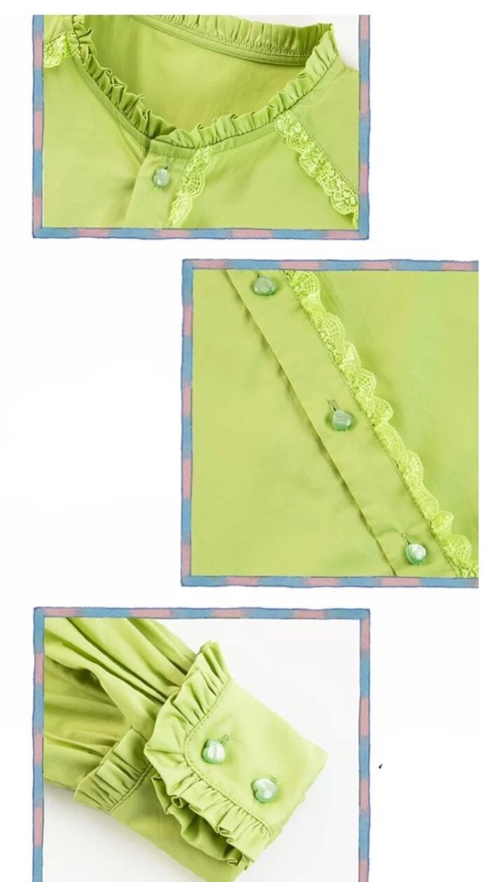 緑 グリーン ブラウス シャツ トップス ガーリー