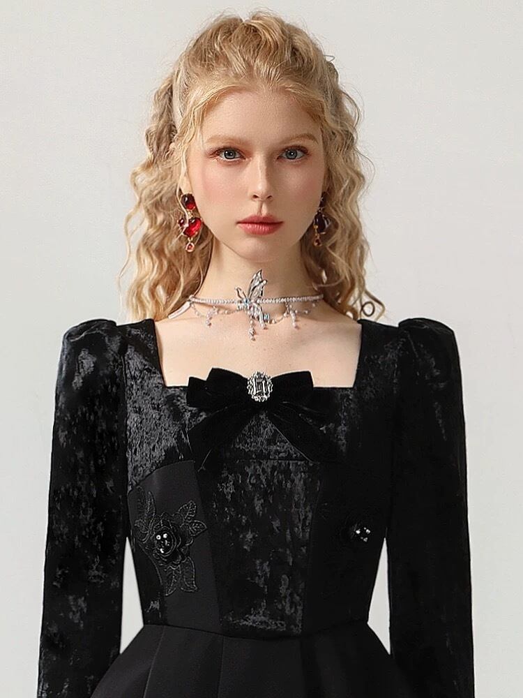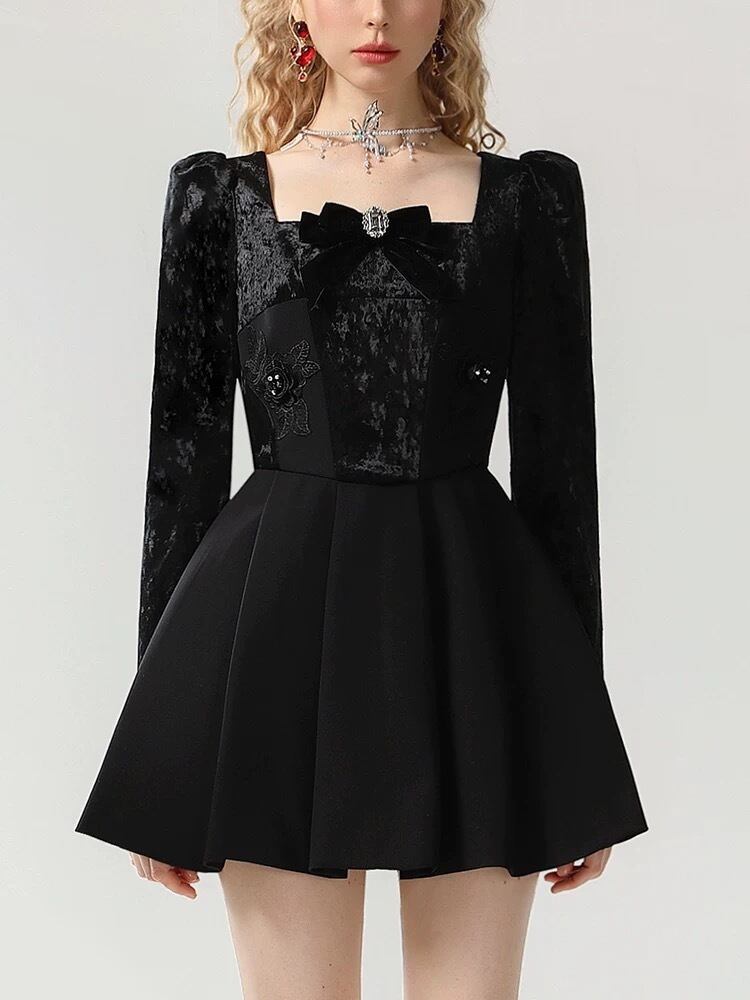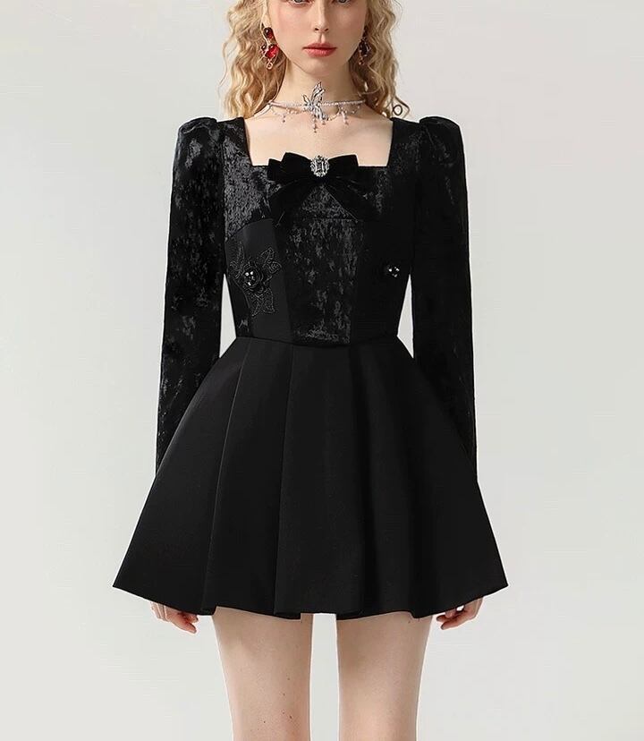 黒 リボン エレガント ワンピース ドレス