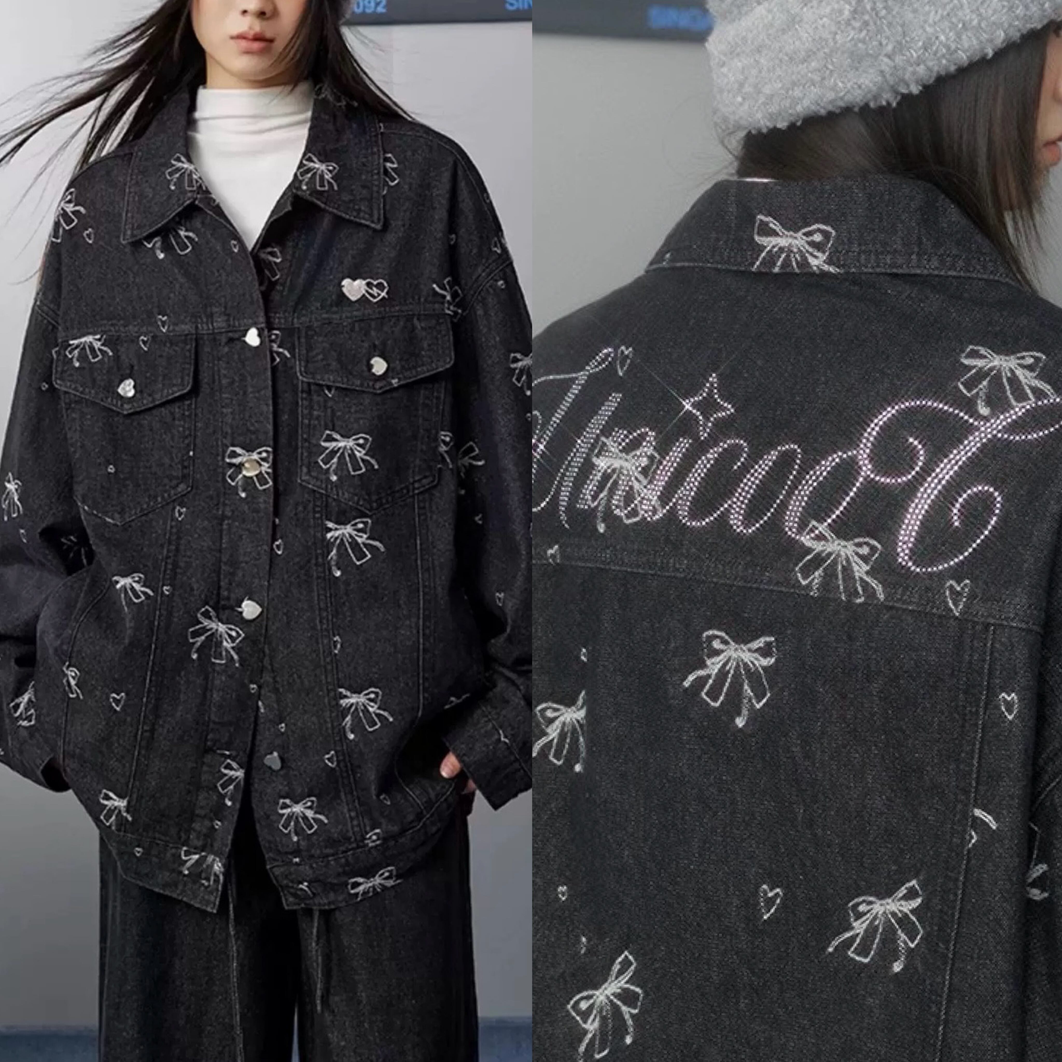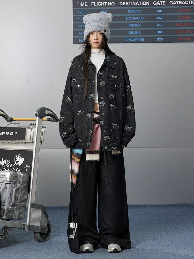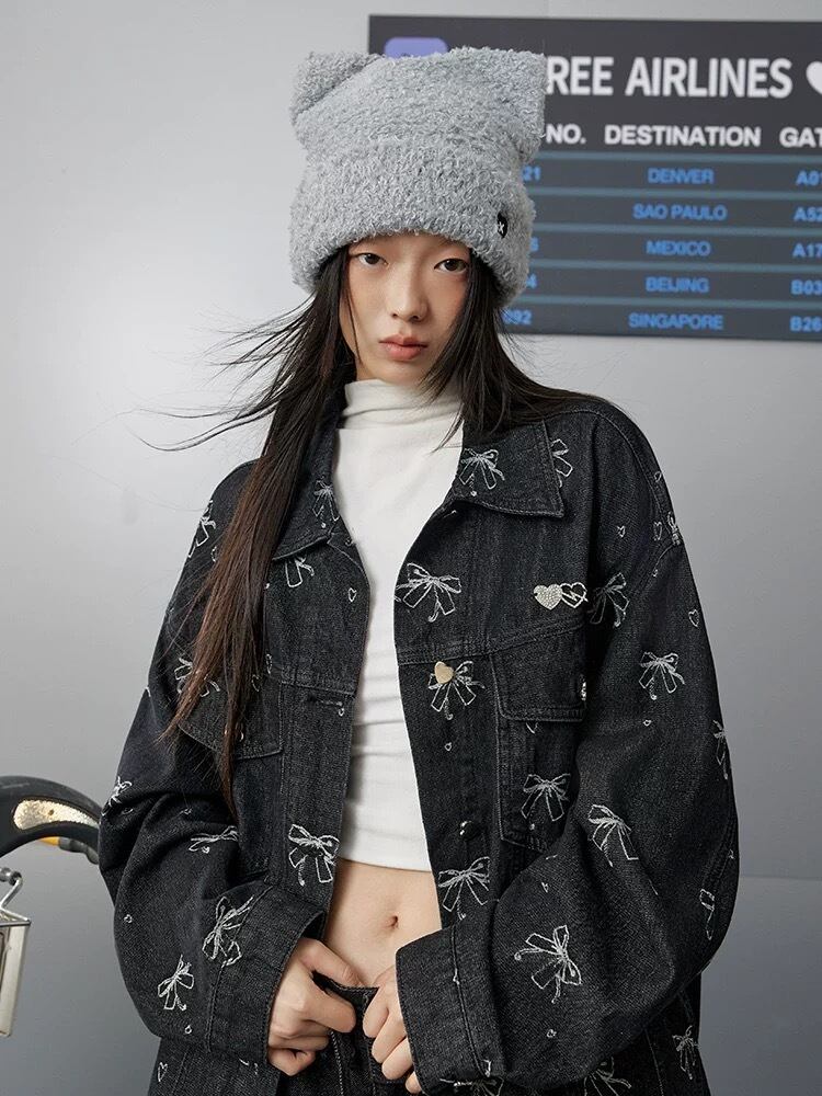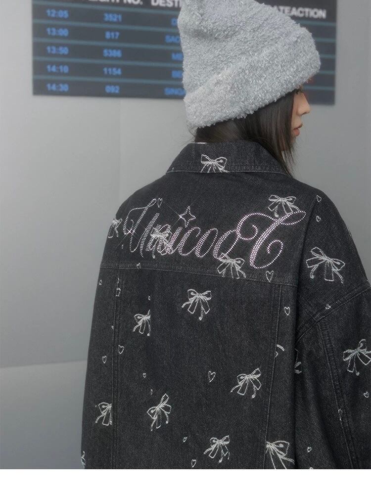 デニム リボン柄 キラキラ ラインストーン アウター