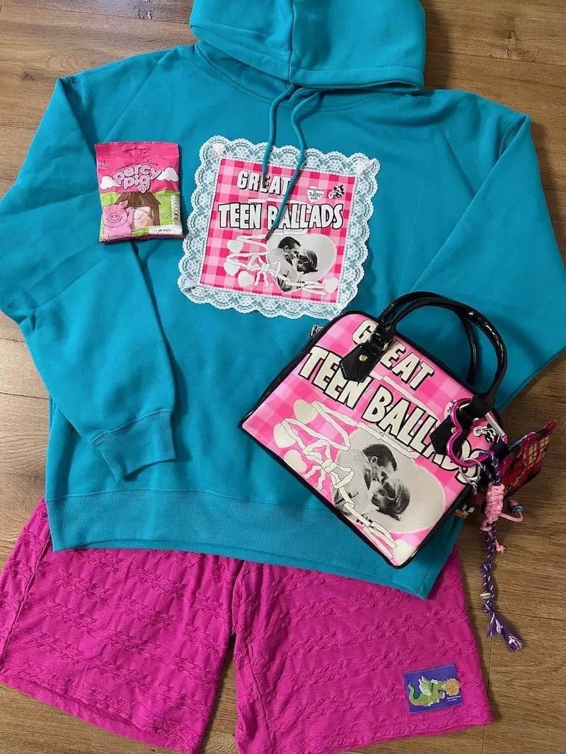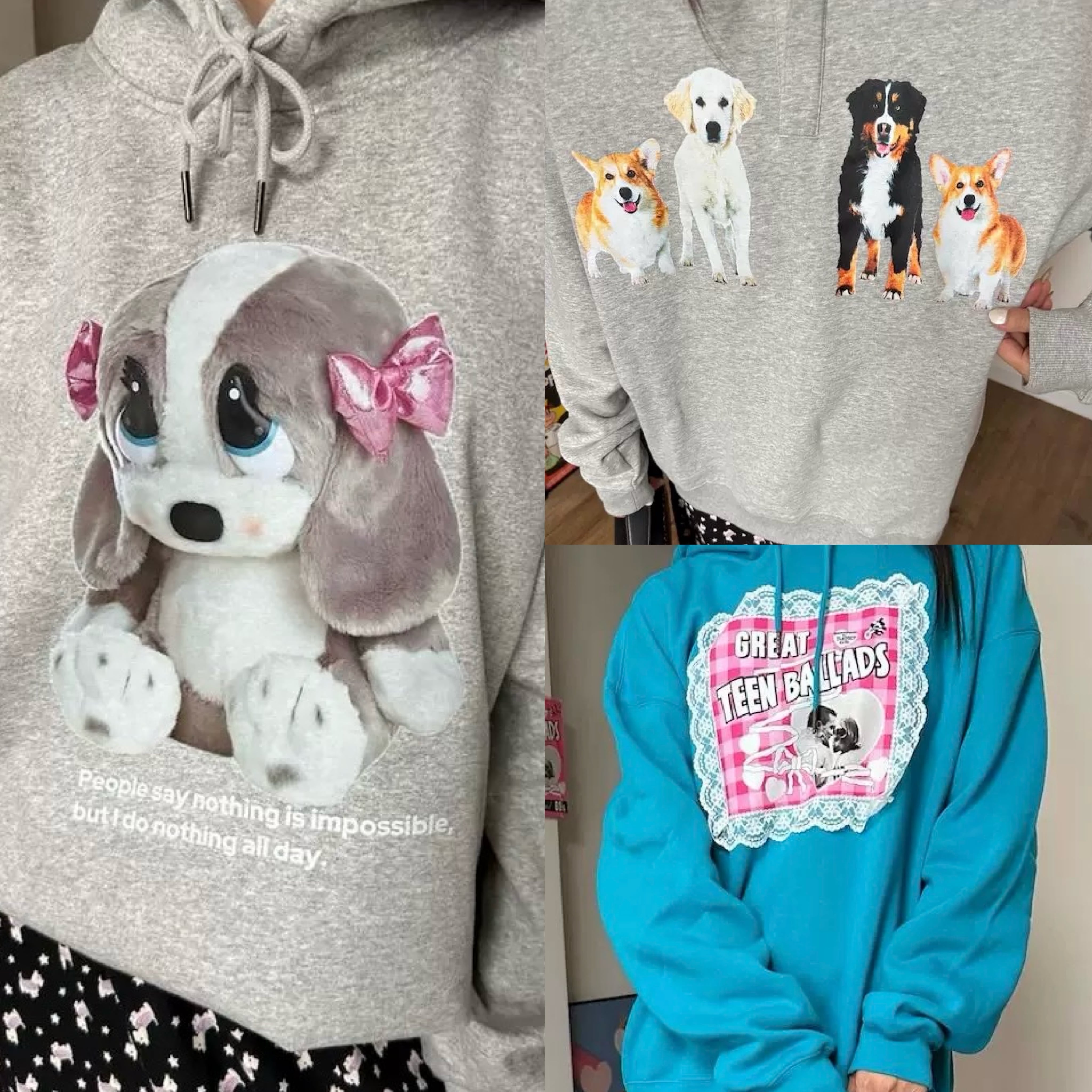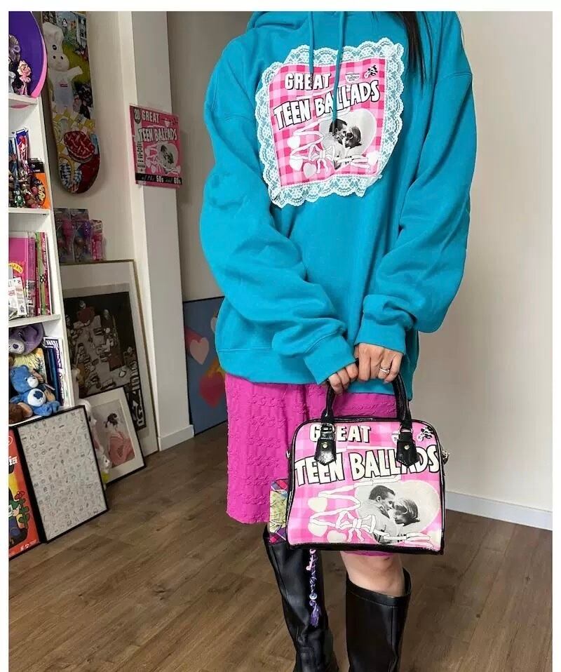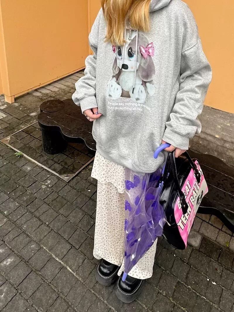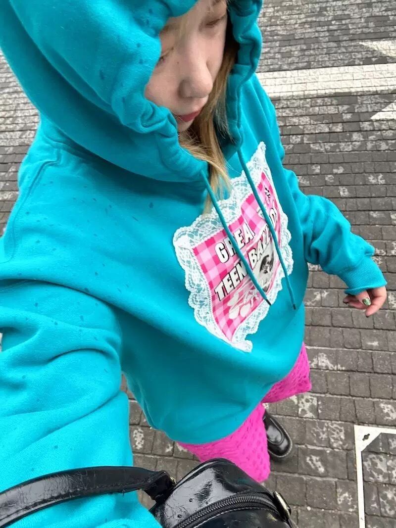 スウェット カジュアル パーカー グレー ピンク リボン 水色 ピンク チェック