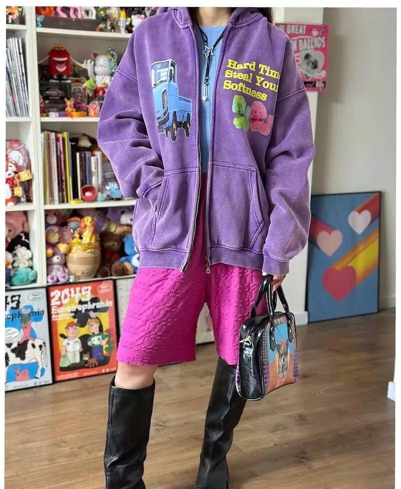 紫 パーカー 軽トラ 車 カラフル トレーナー
