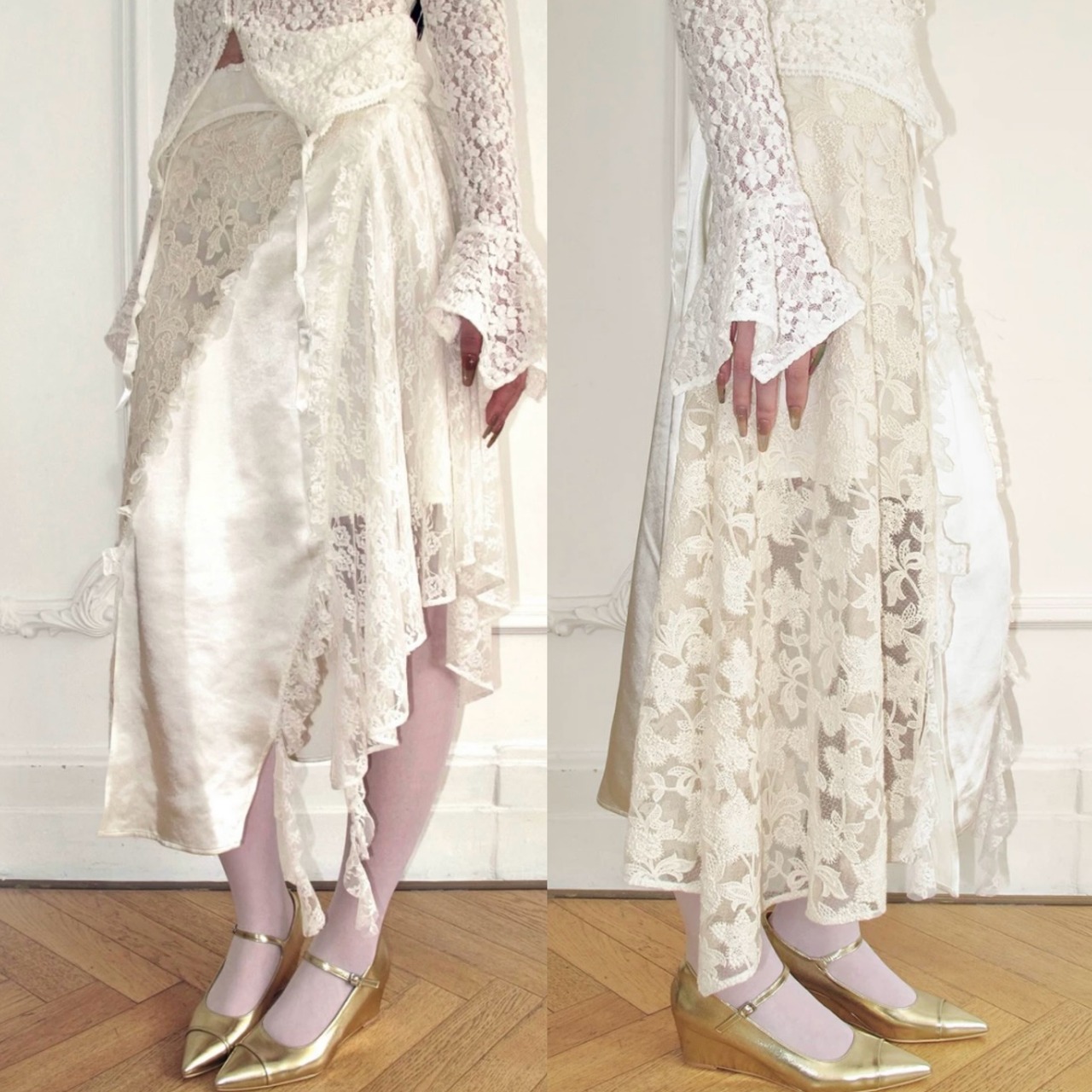 レース 白 フラワー ボトムス スカート エレガント