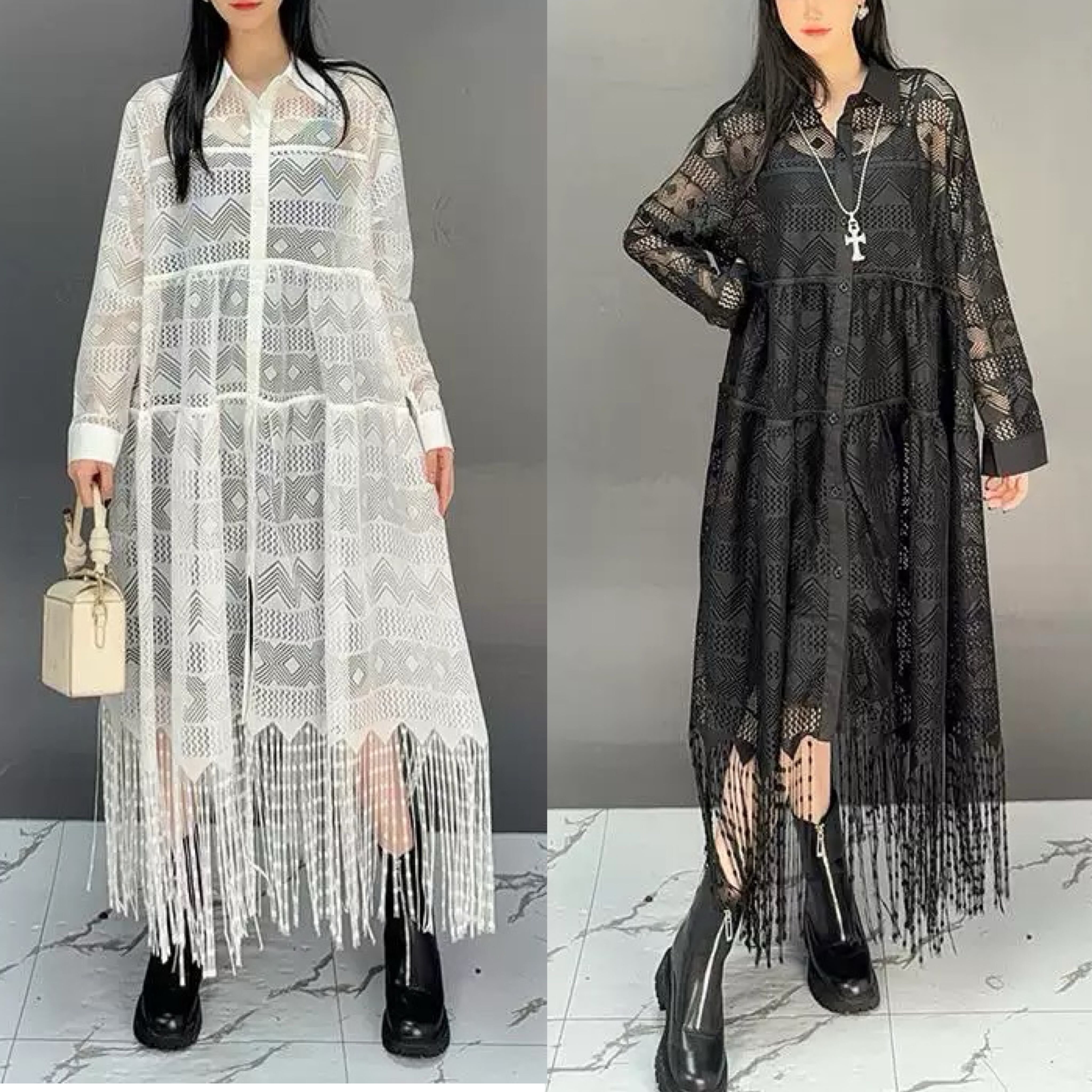 シースルー 白 黒 ブラウス カーディガン