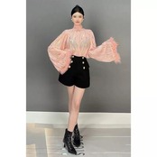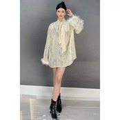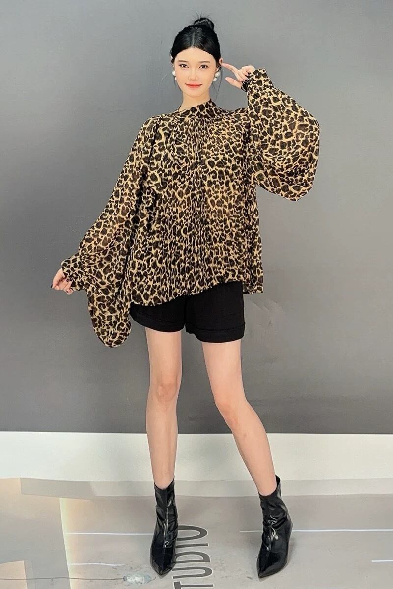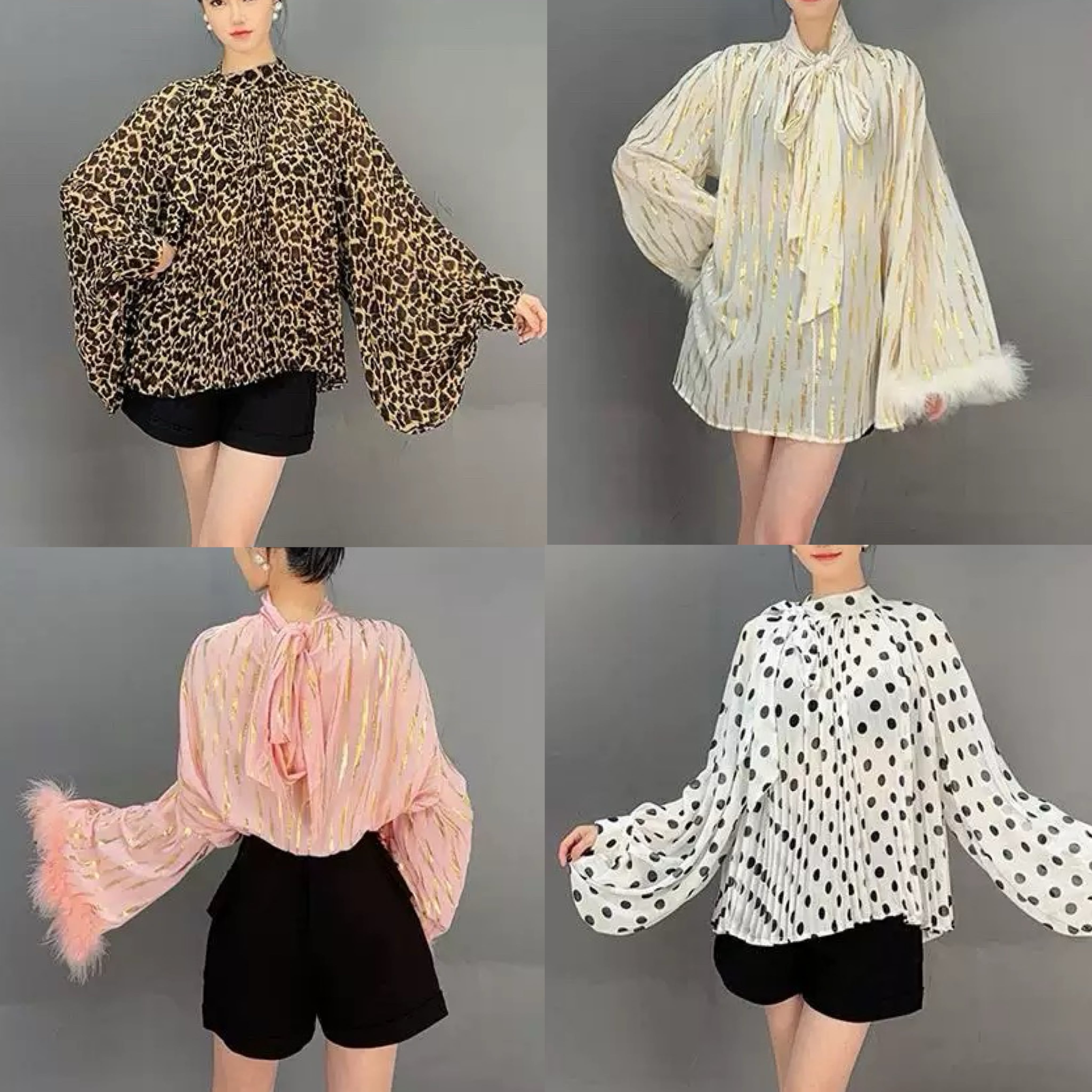 水玉 ドット レオパード ヒョウ柄 ピンク ブラウス 白 ファー