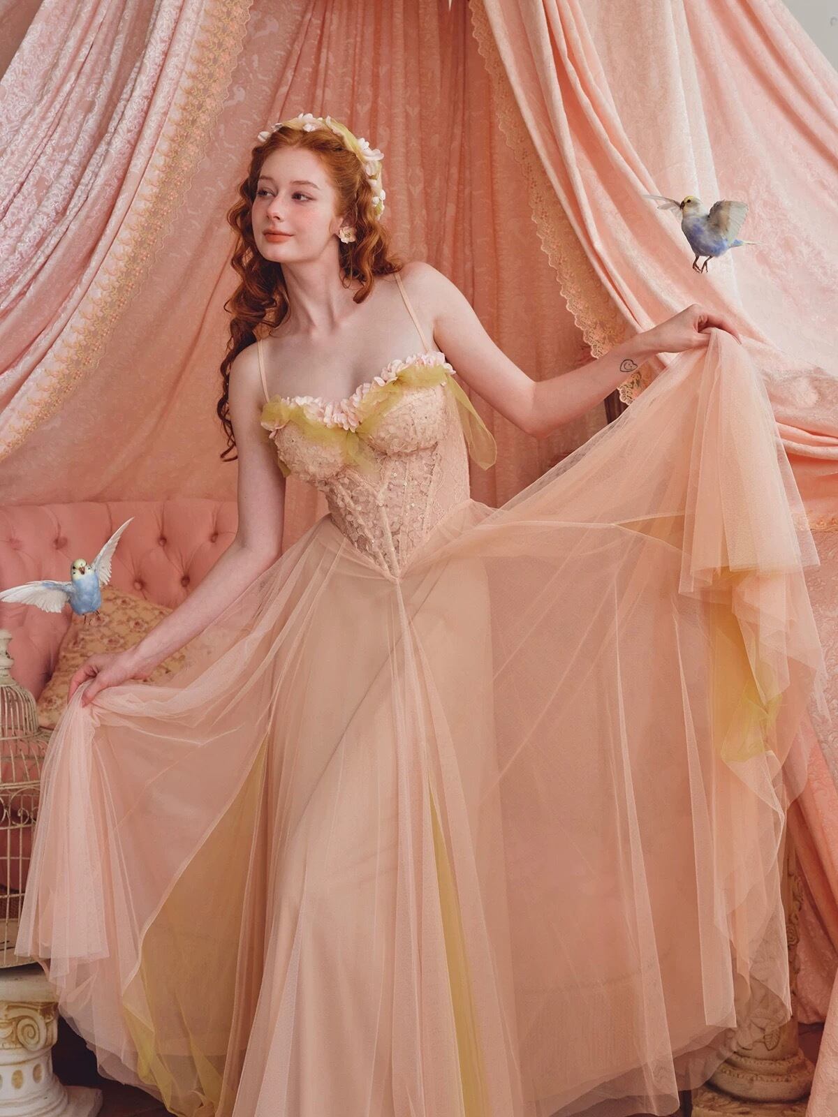 オレンジ ベージュ ドレス ワンピース XL キャミソール