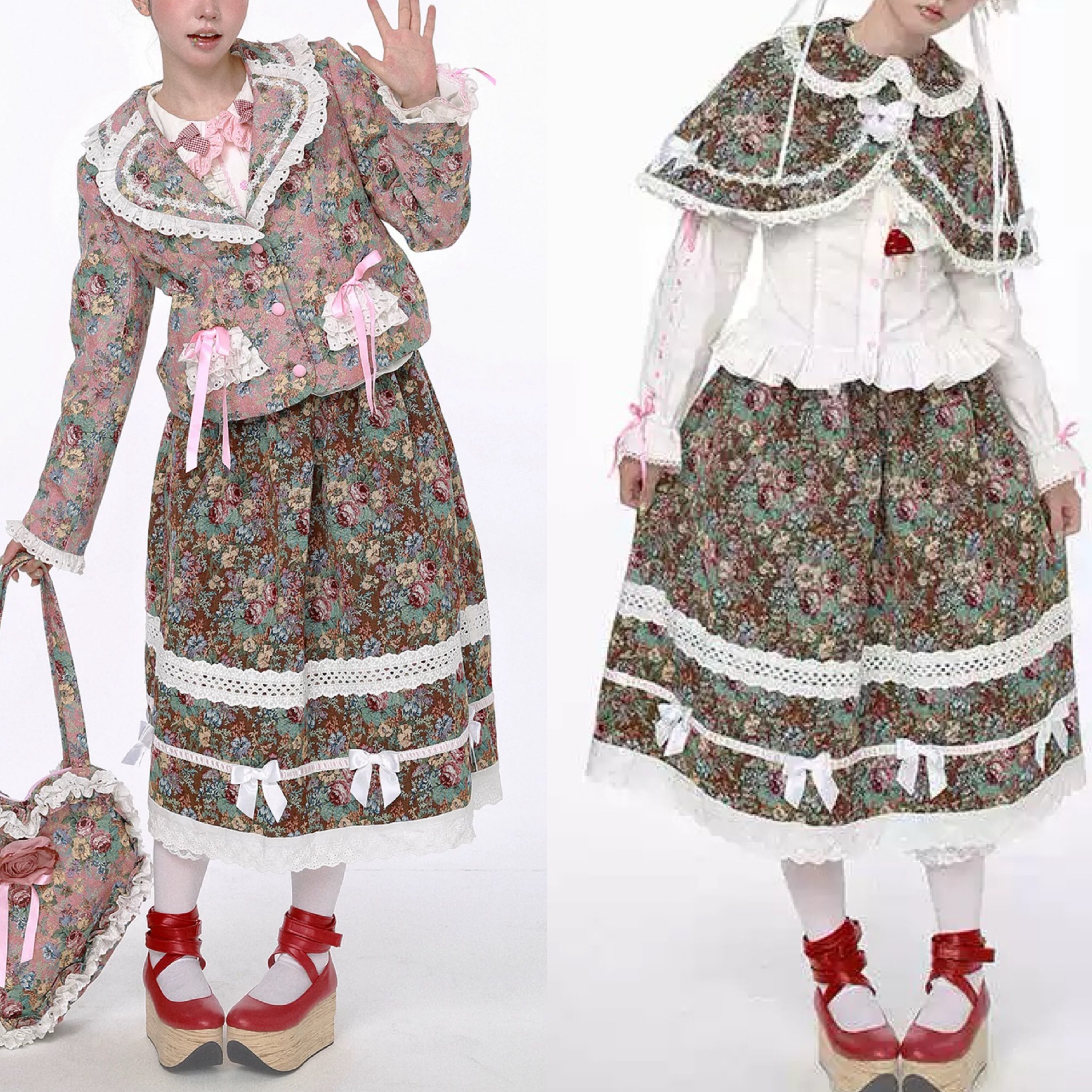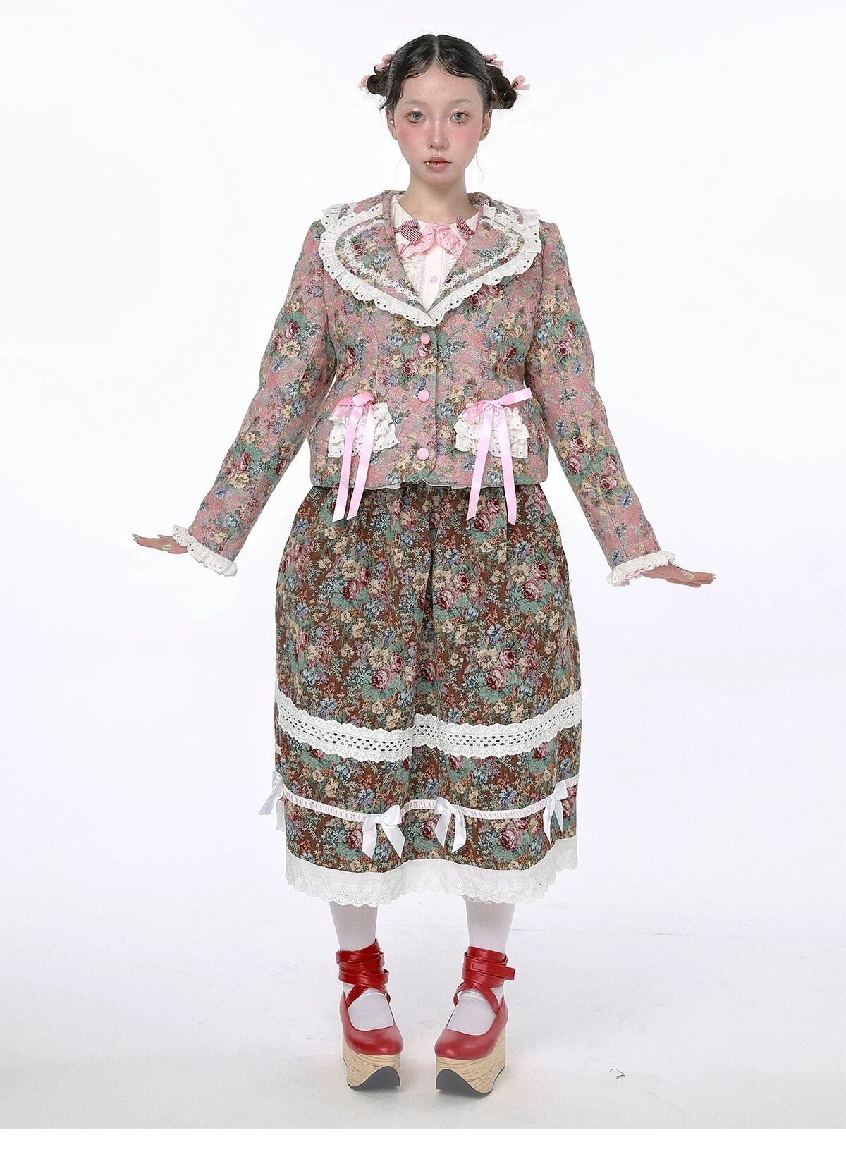 可愛い 緑 スカート リボン ボトムス