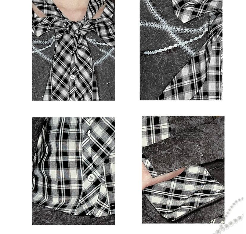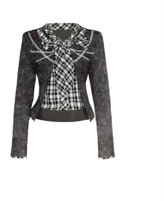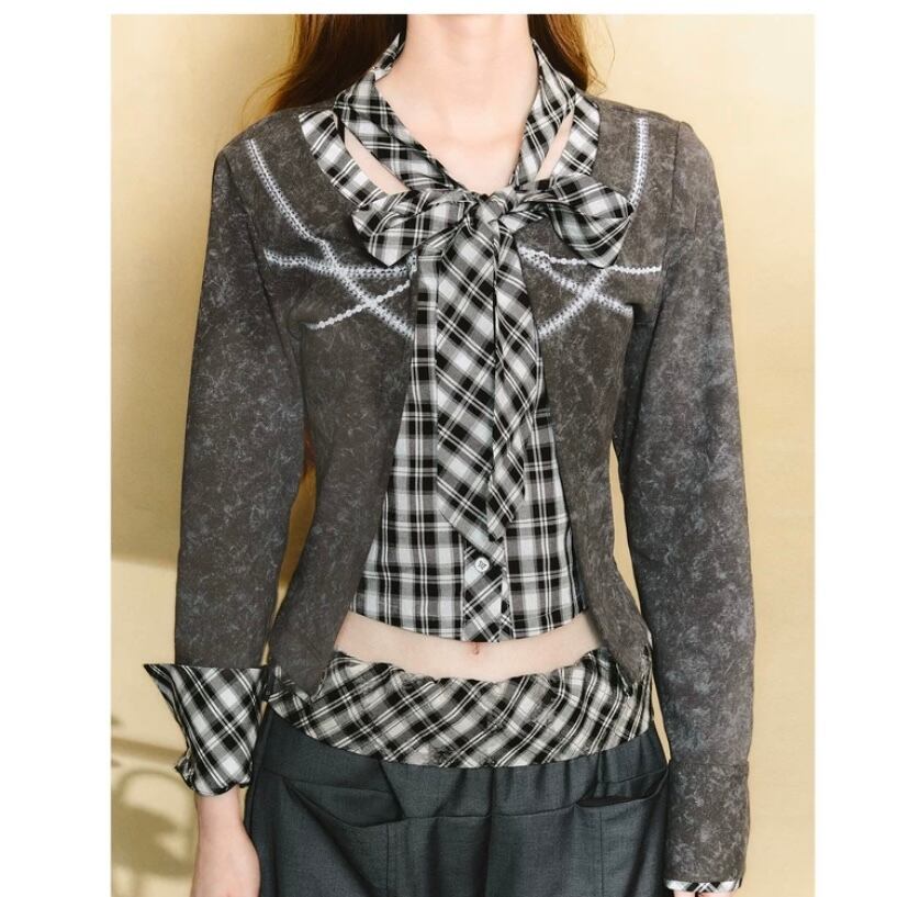 トップス シャツ チェック リボン ブラウス カーディガン