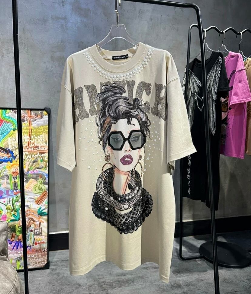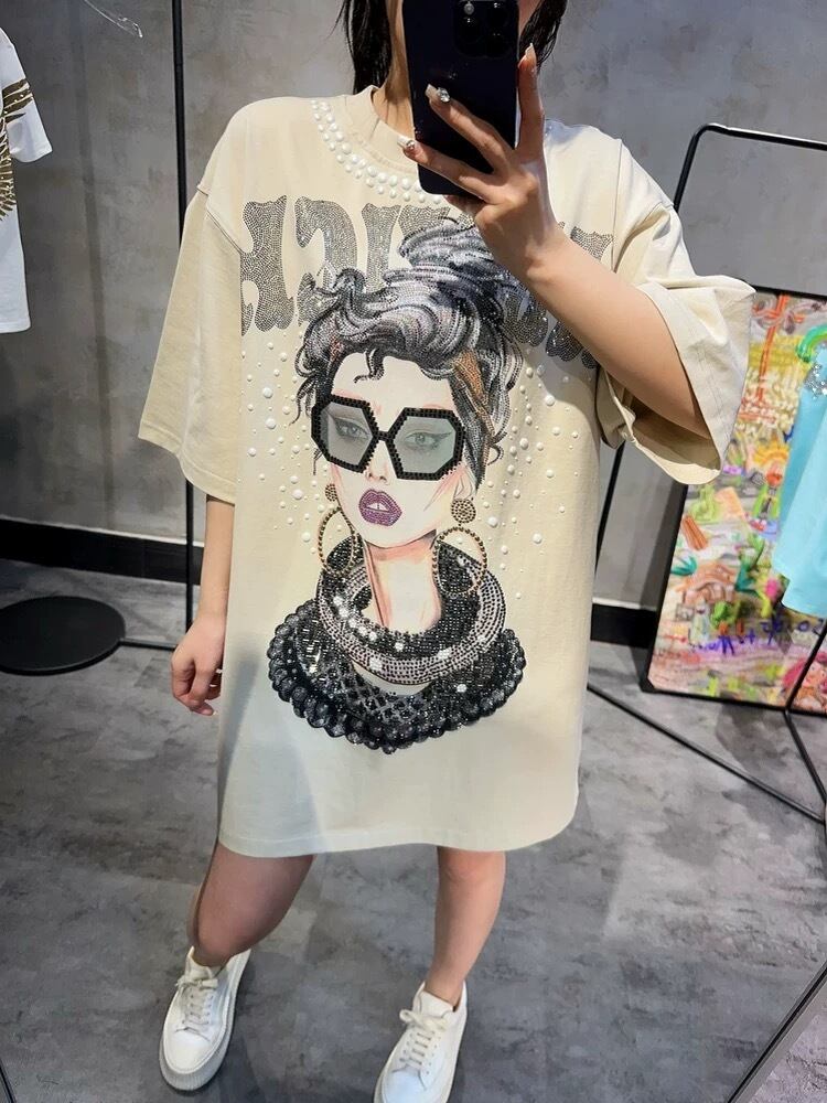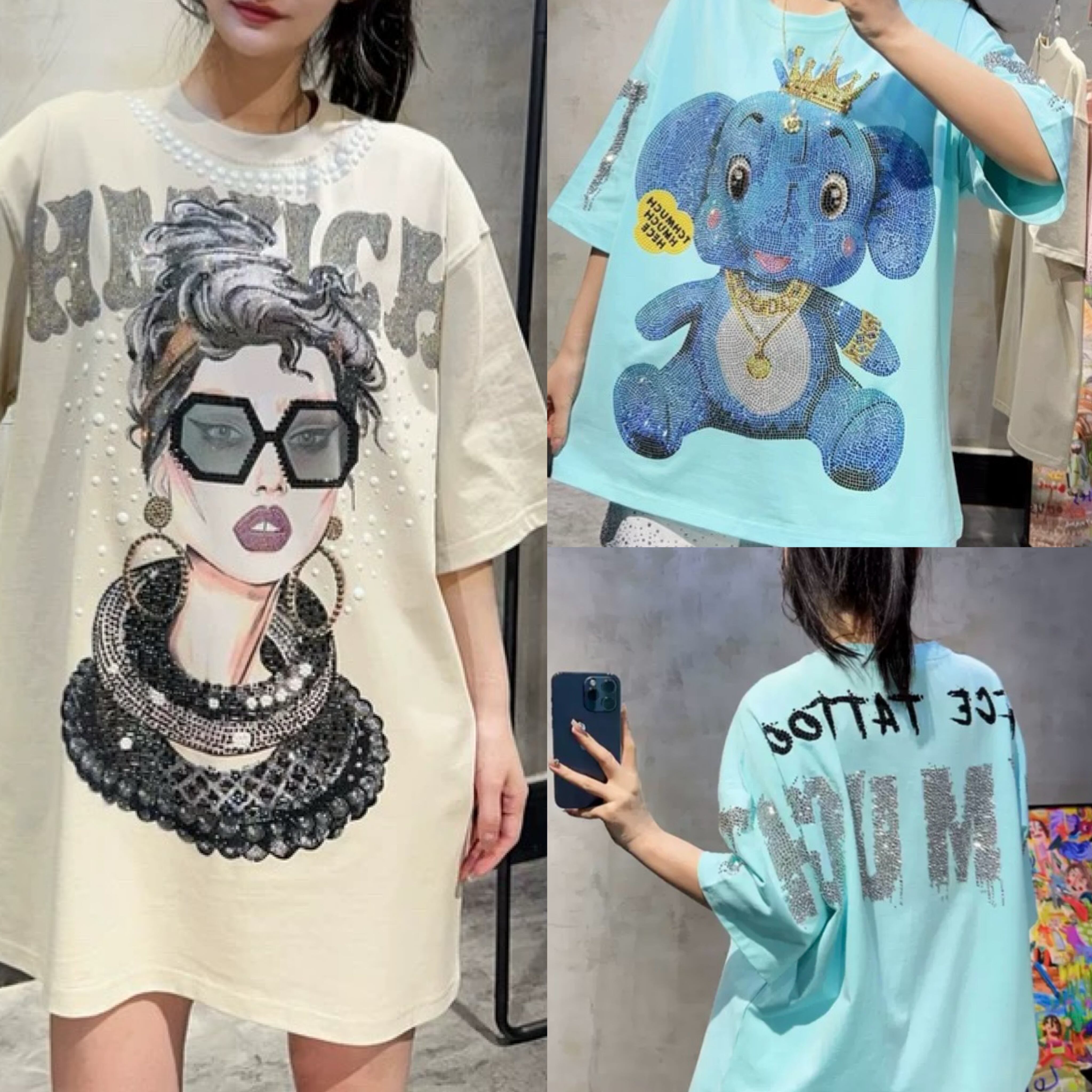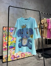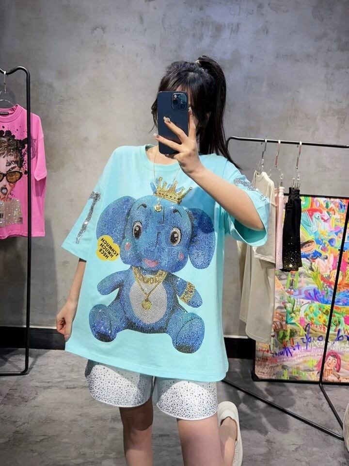 Tシャツ ラインストーン グレー 水色 ぞうさん