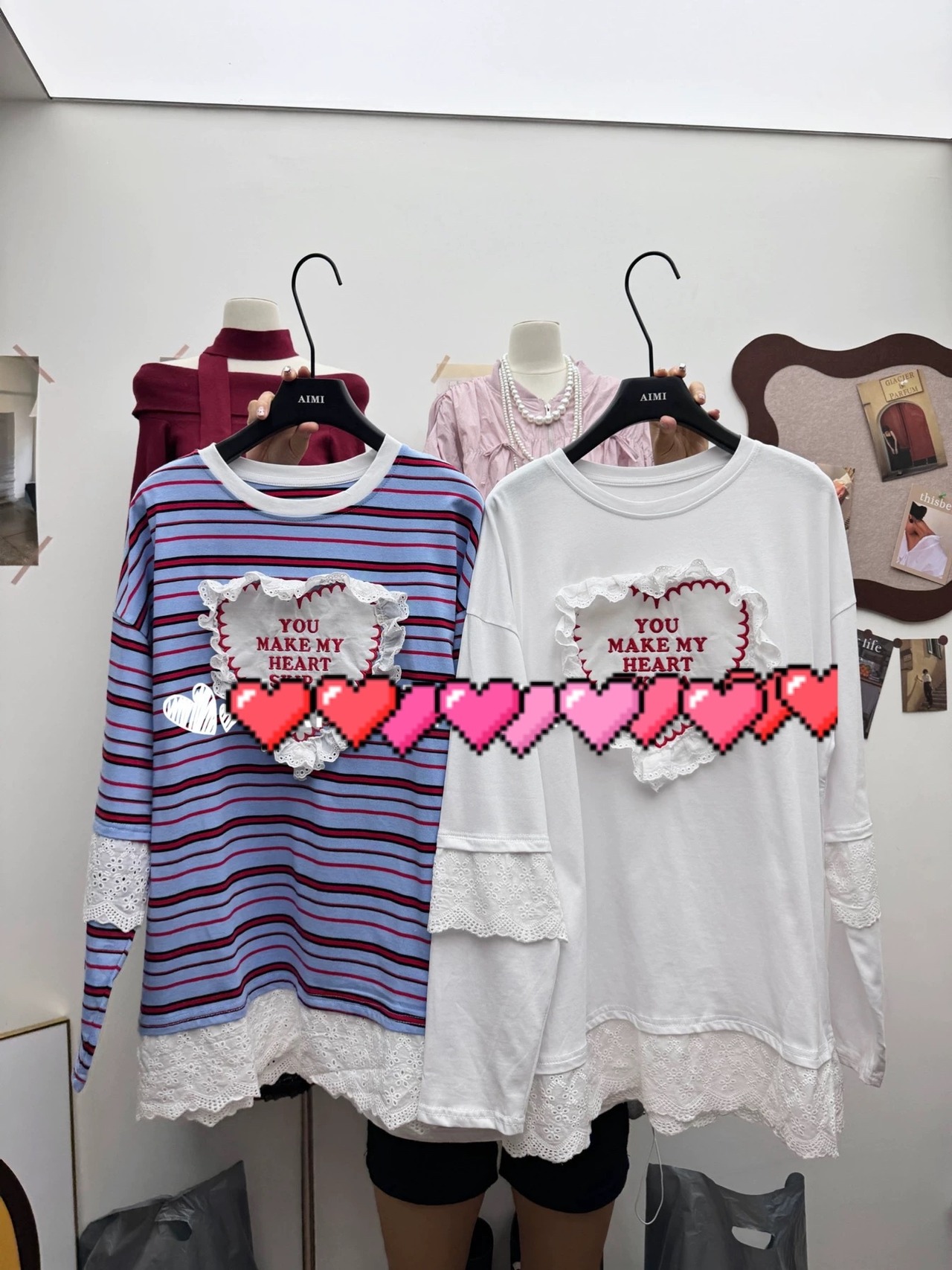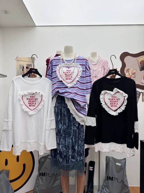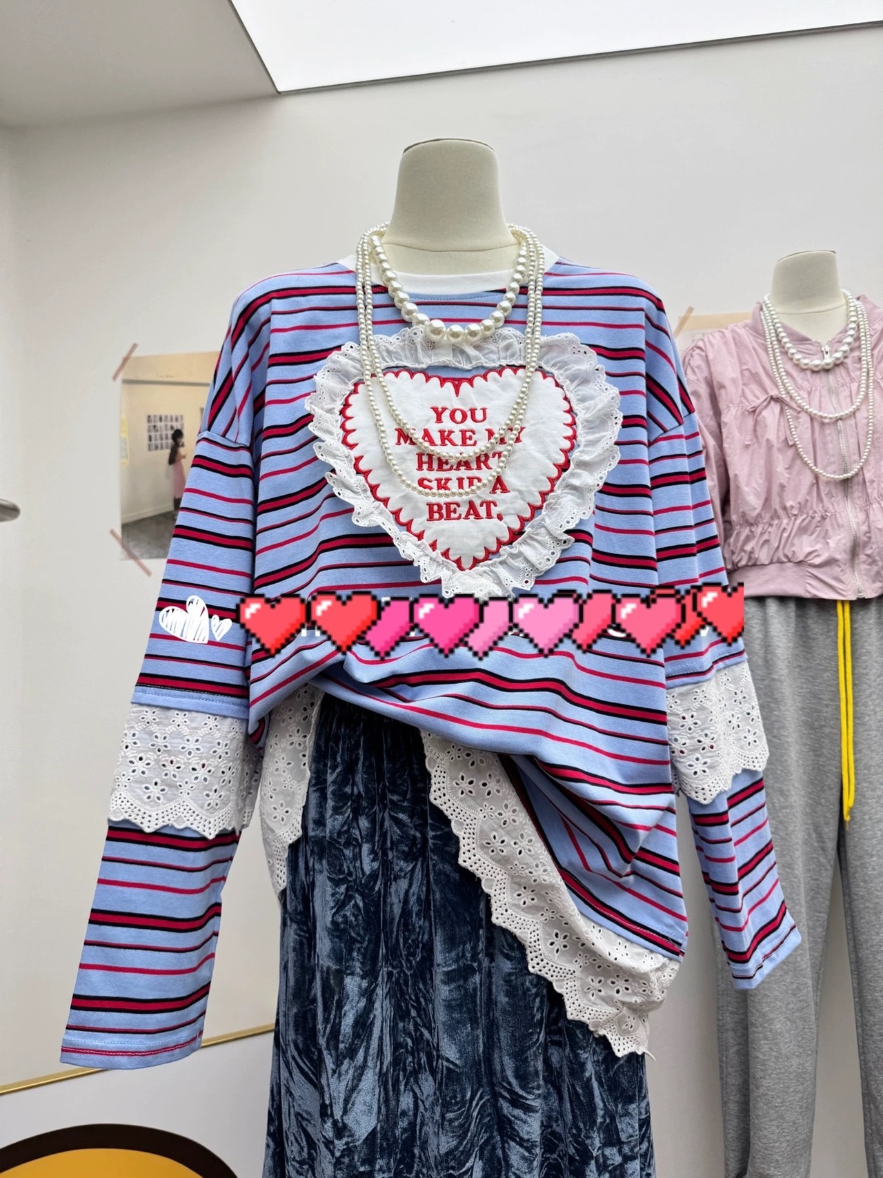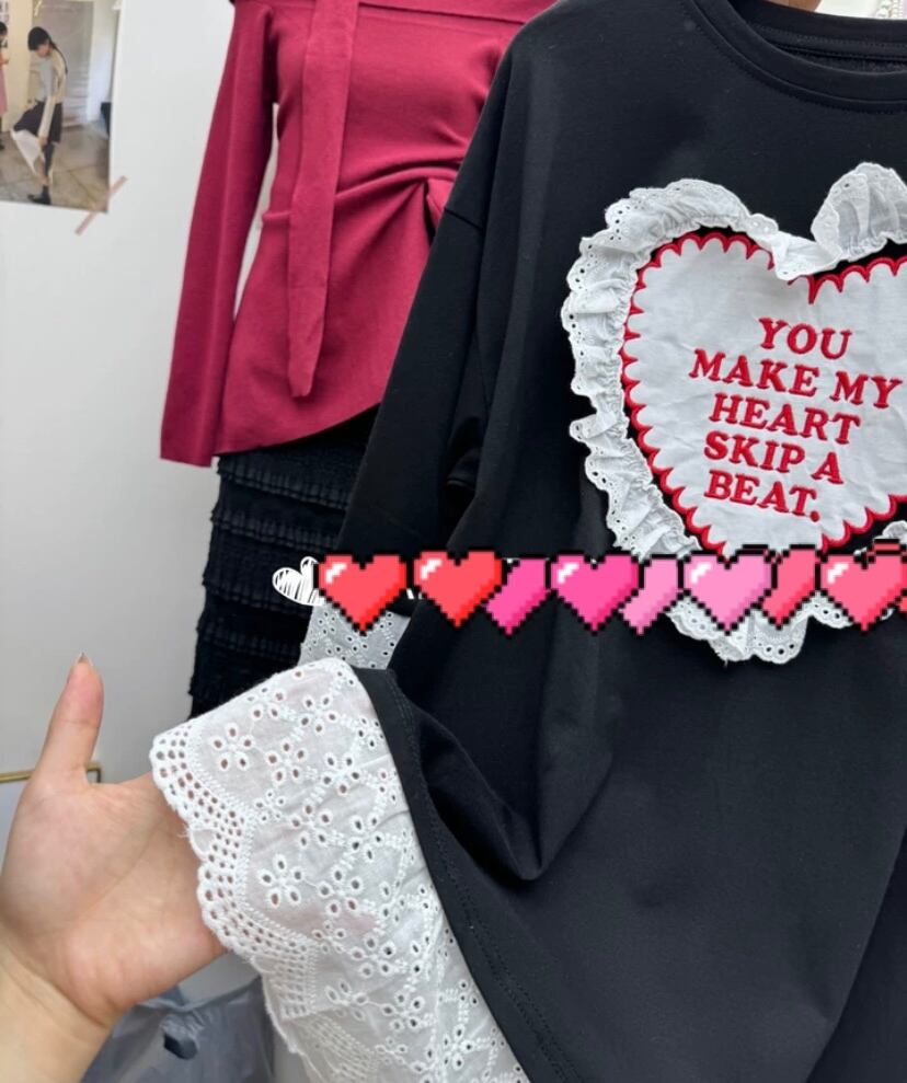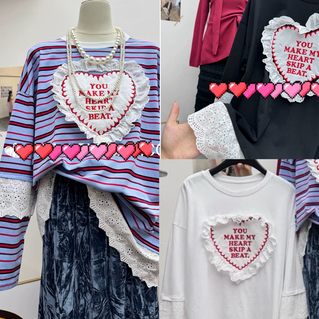 ハート 黒 白 紫 ボーダー チェック ブラウス