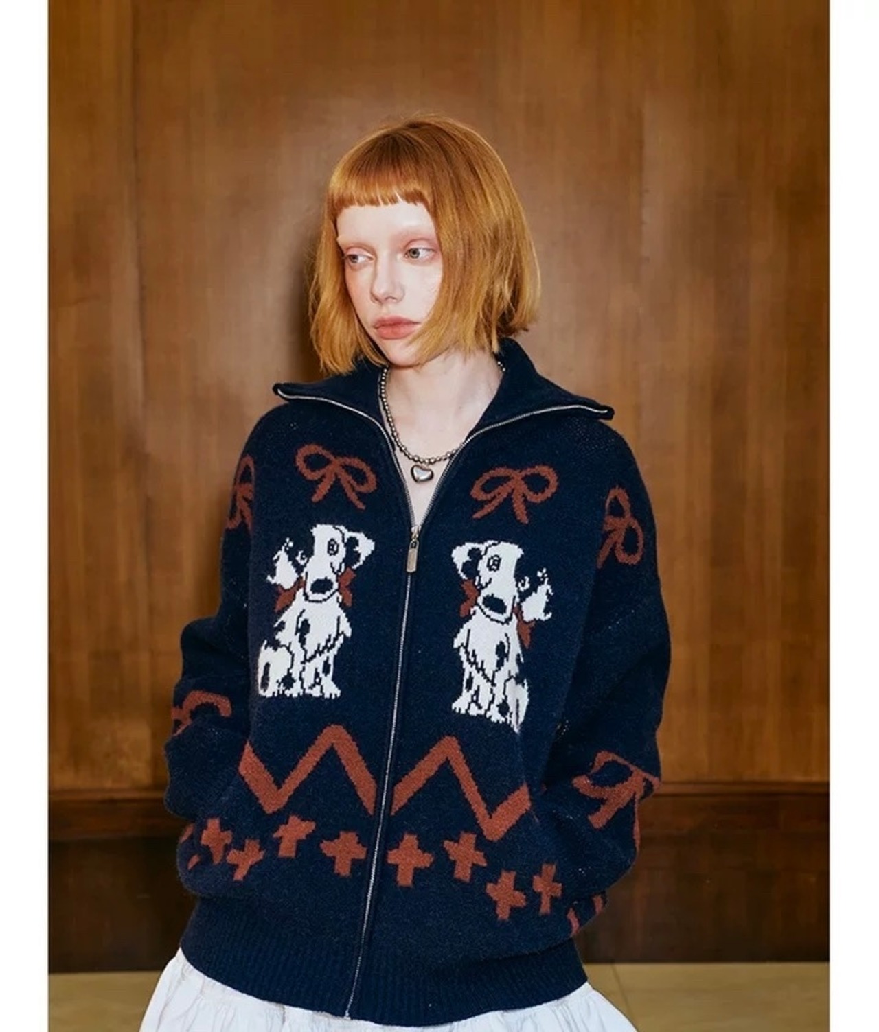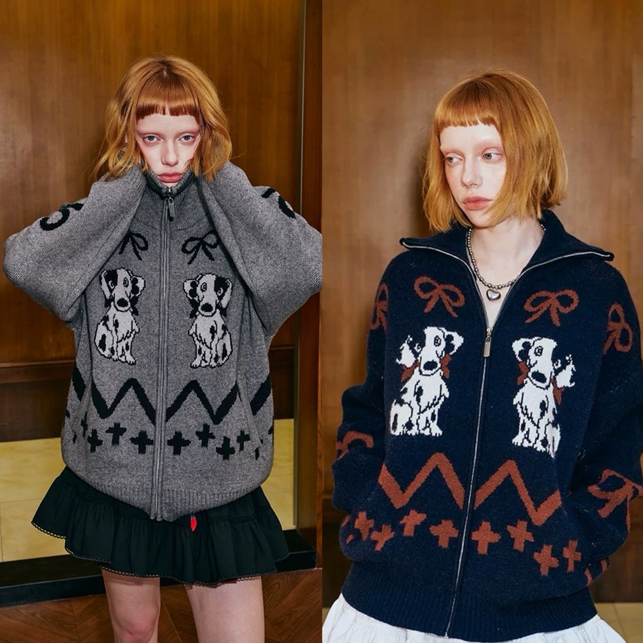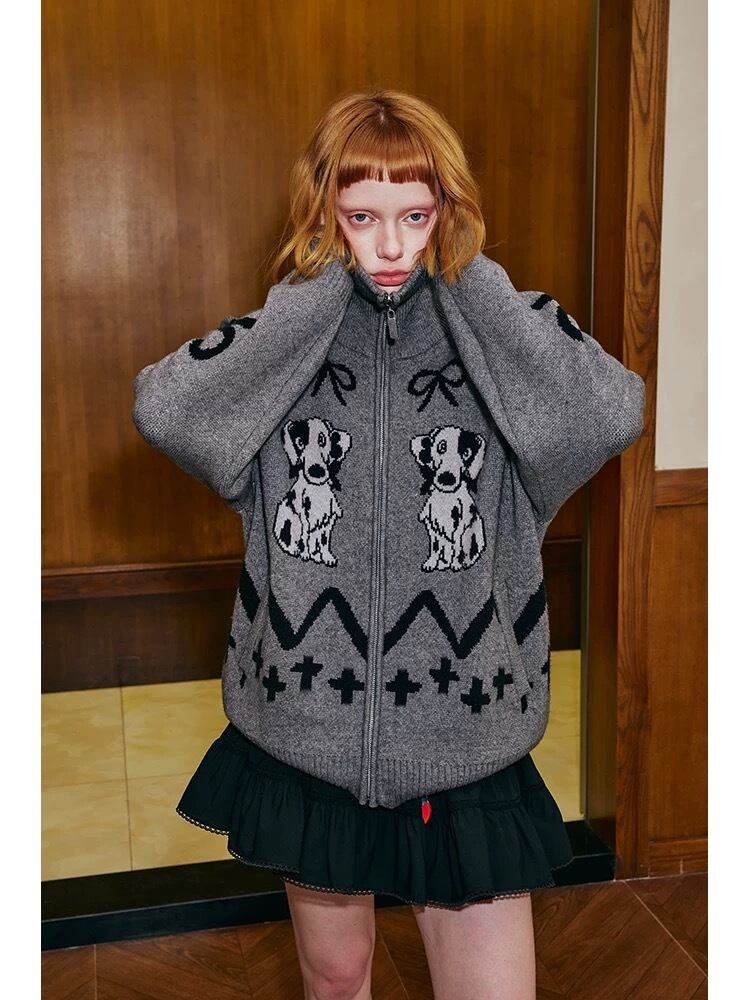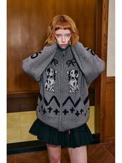 リボン カーディガン 犬 いぬ グレー 茶色 黒