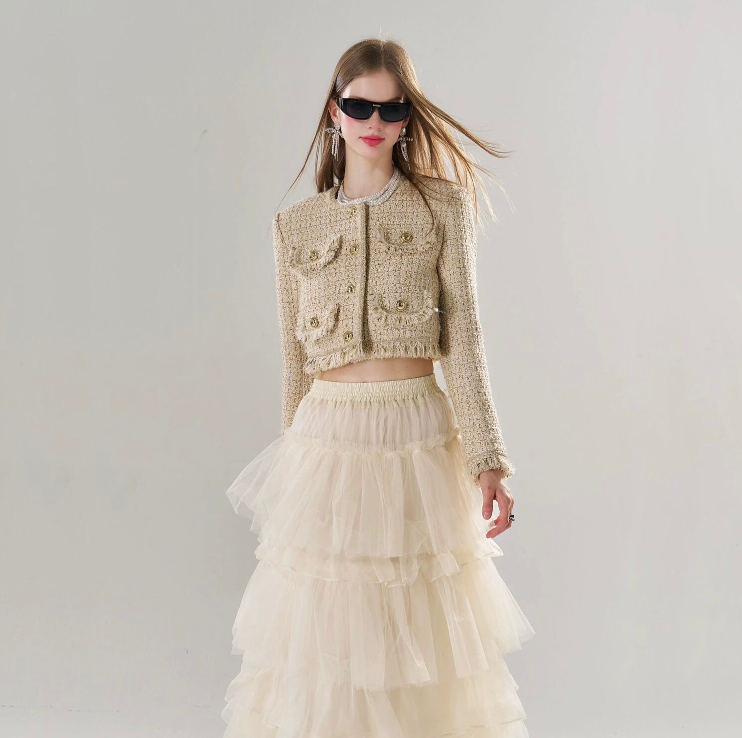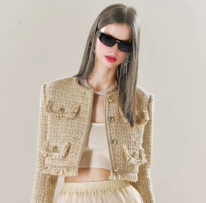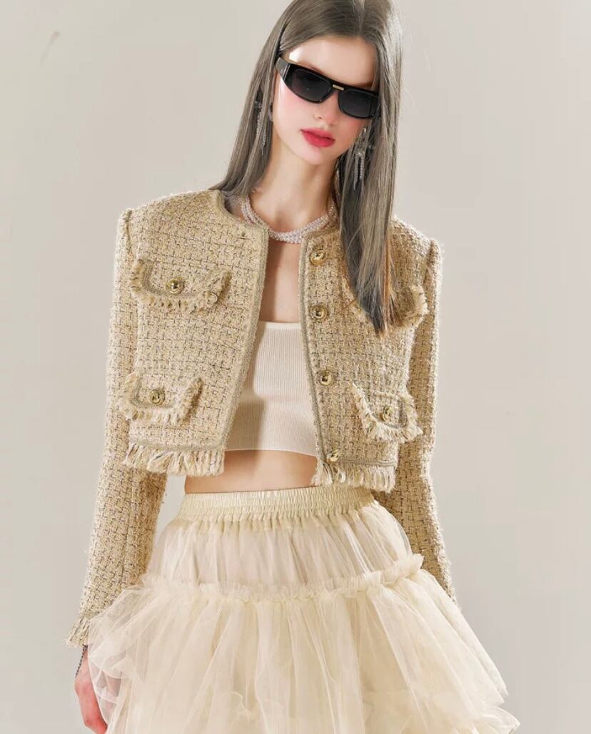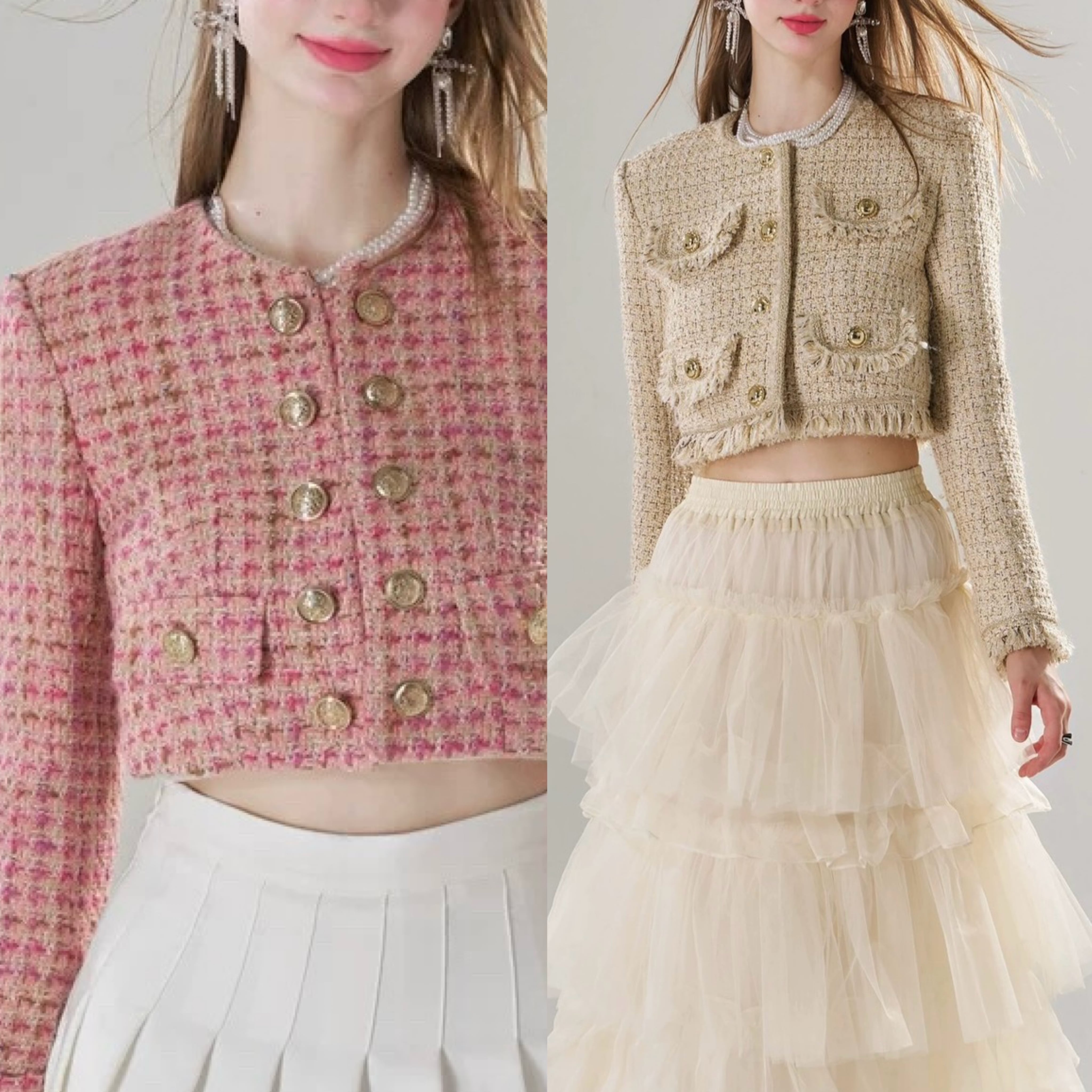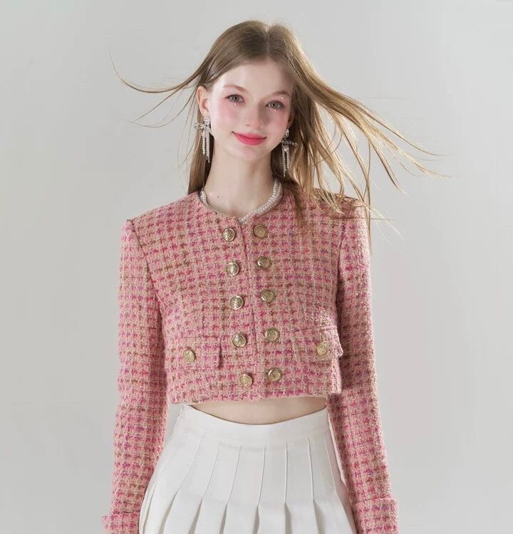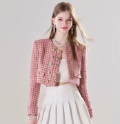 ゴールド 金色 ピンク ジャケット アウター ツイード