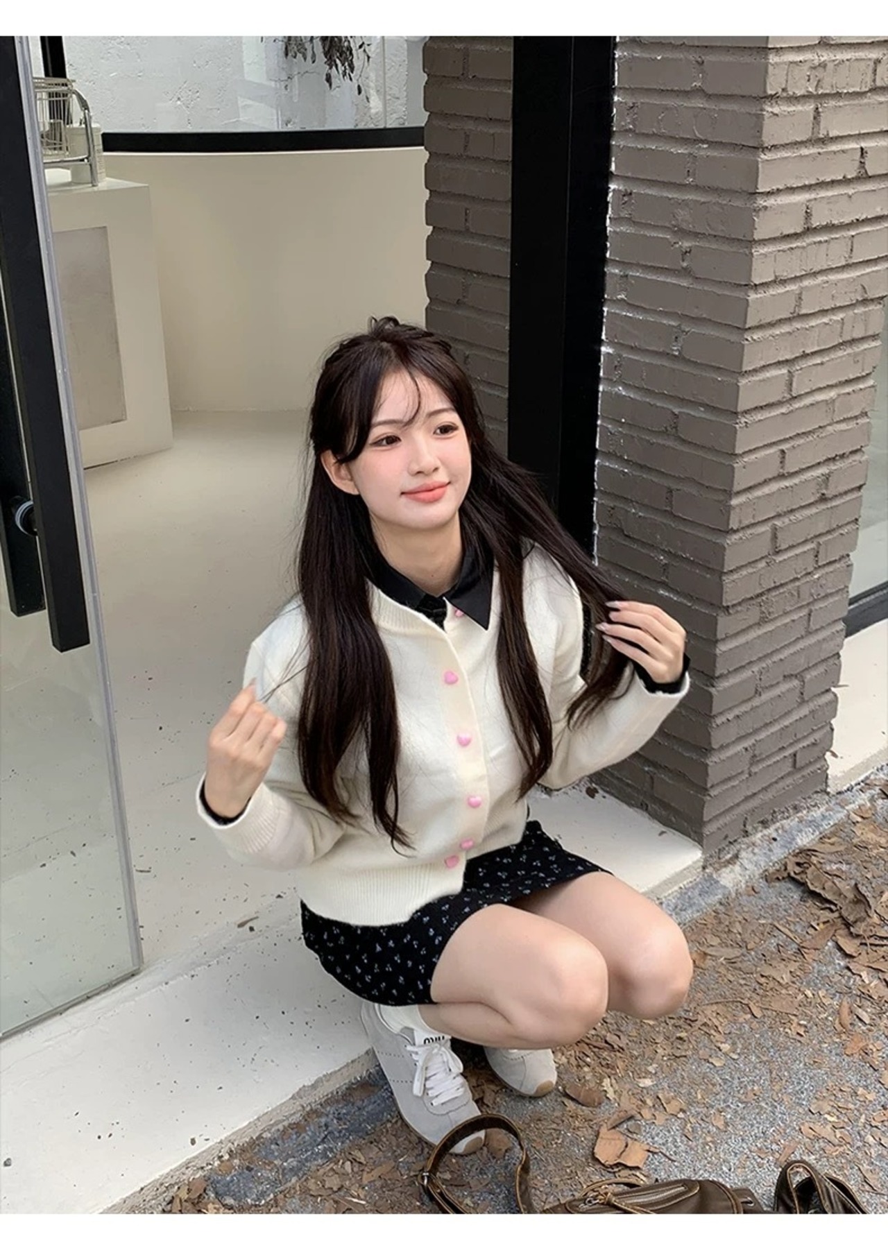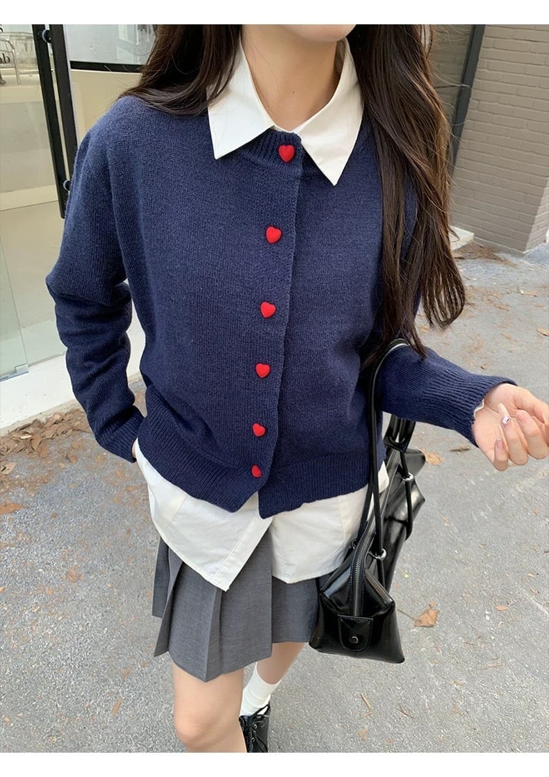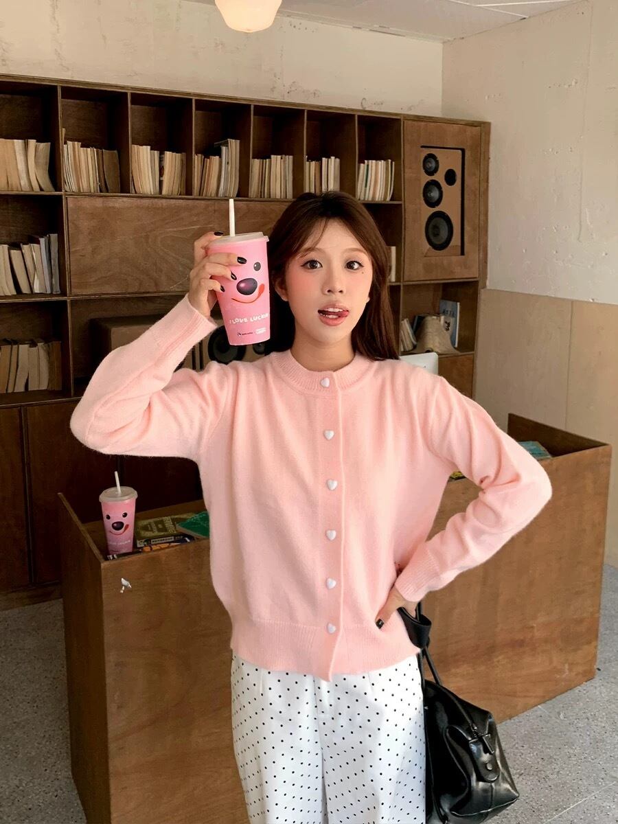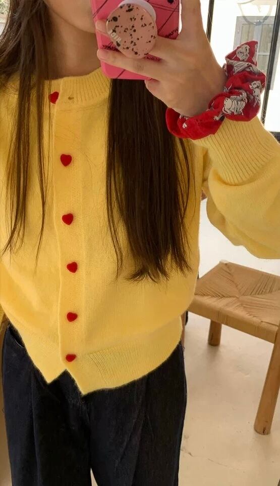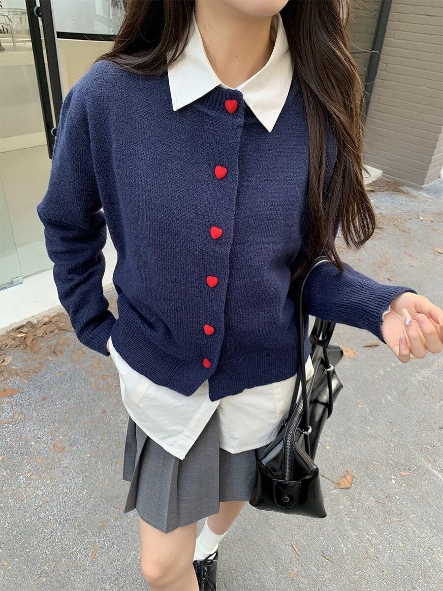 赤 ピンク 白 黄色 ネイビー ハート XL カーディガン
