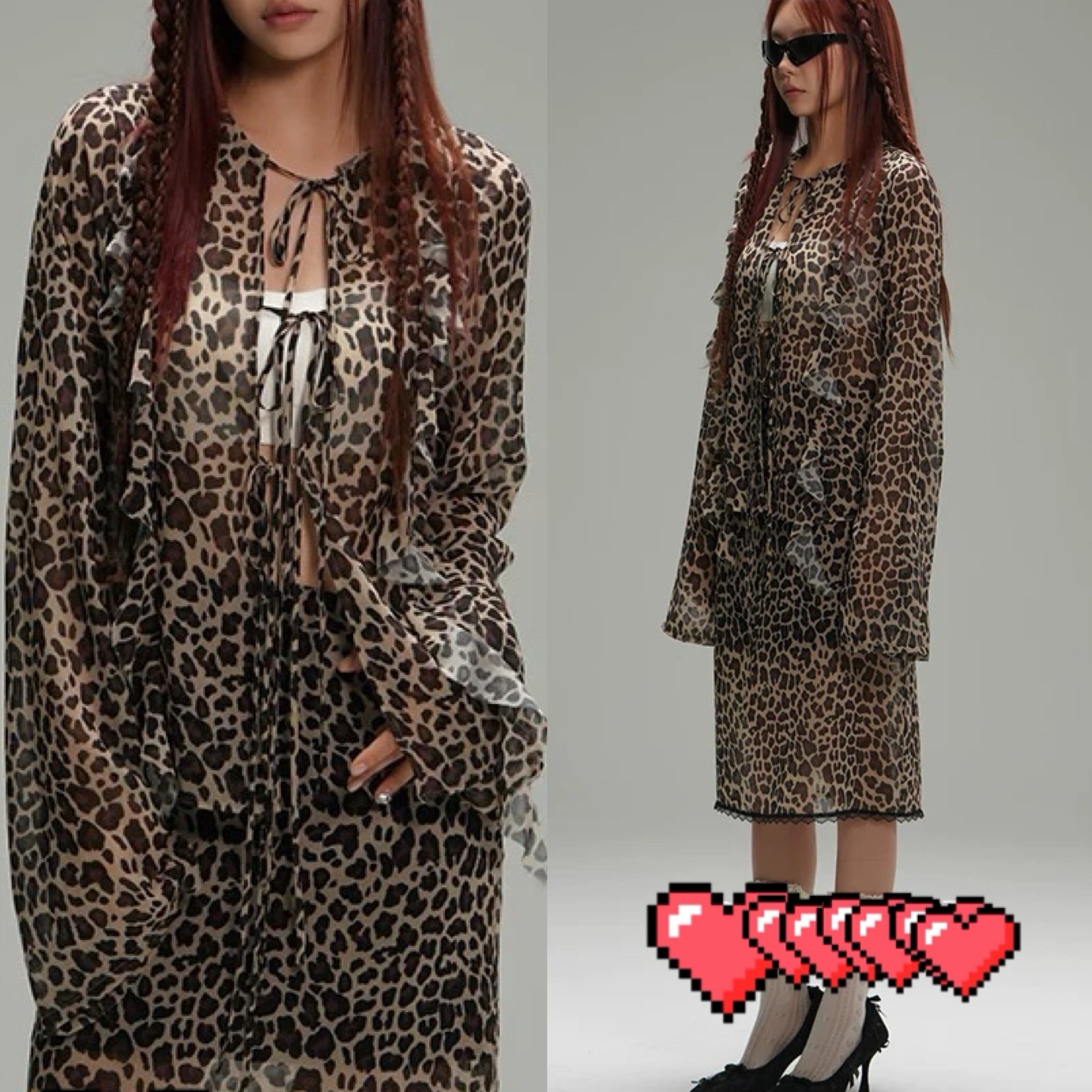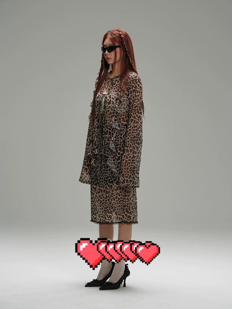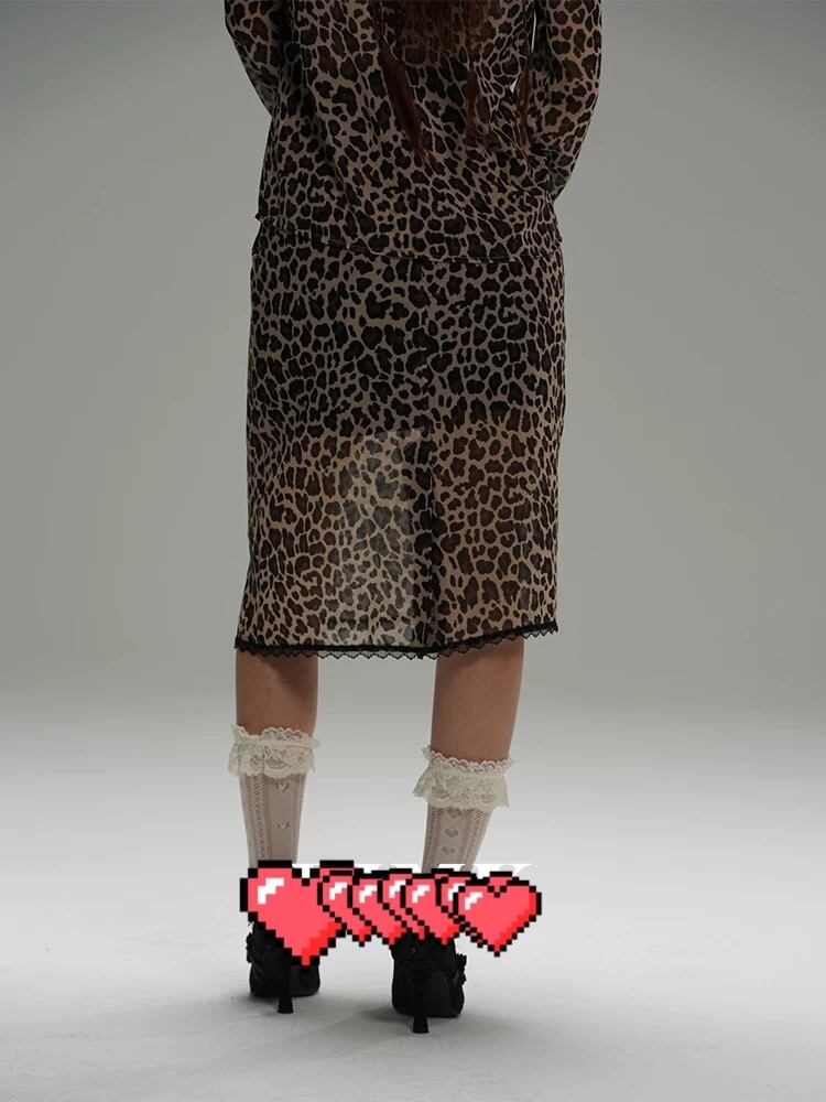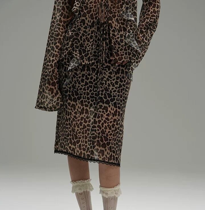 レオパード ヒョウ柄 茶色 ブラウス スカート シースルー