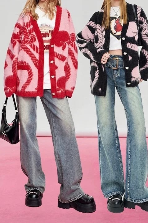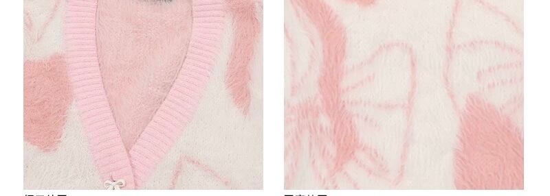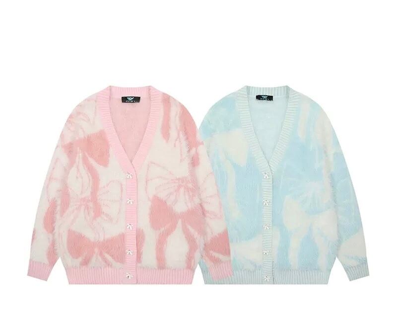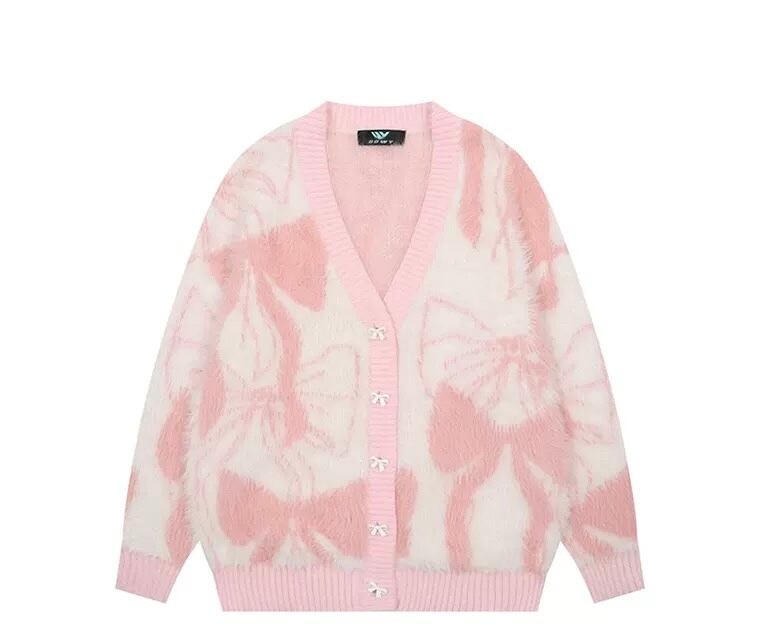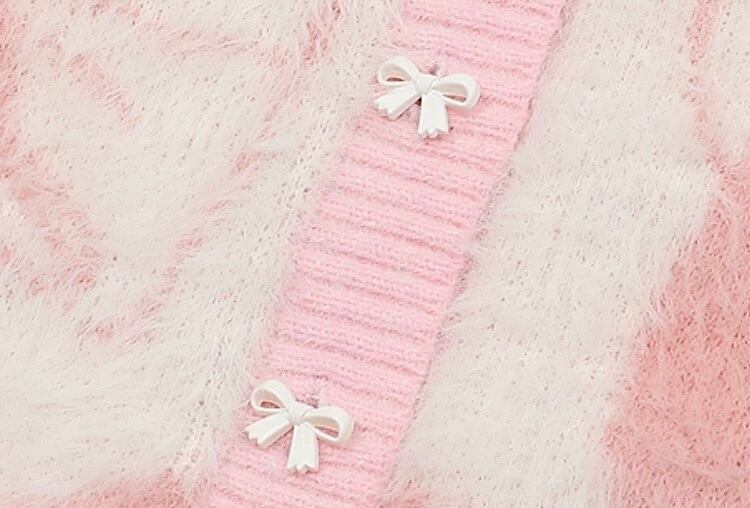 水色 ピンク リボン カーディガン セーター