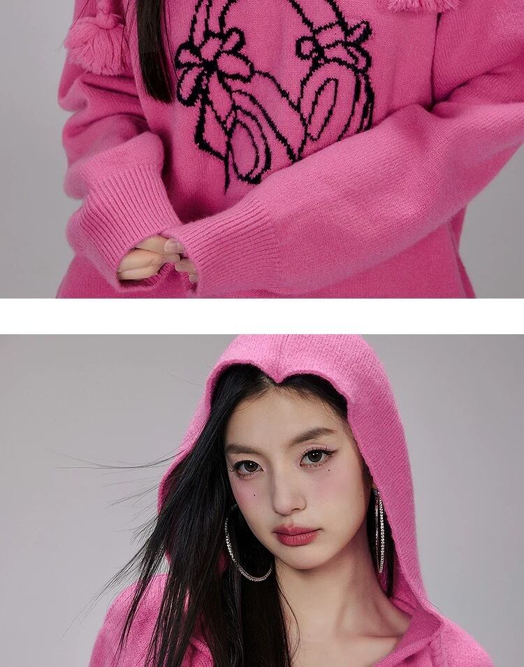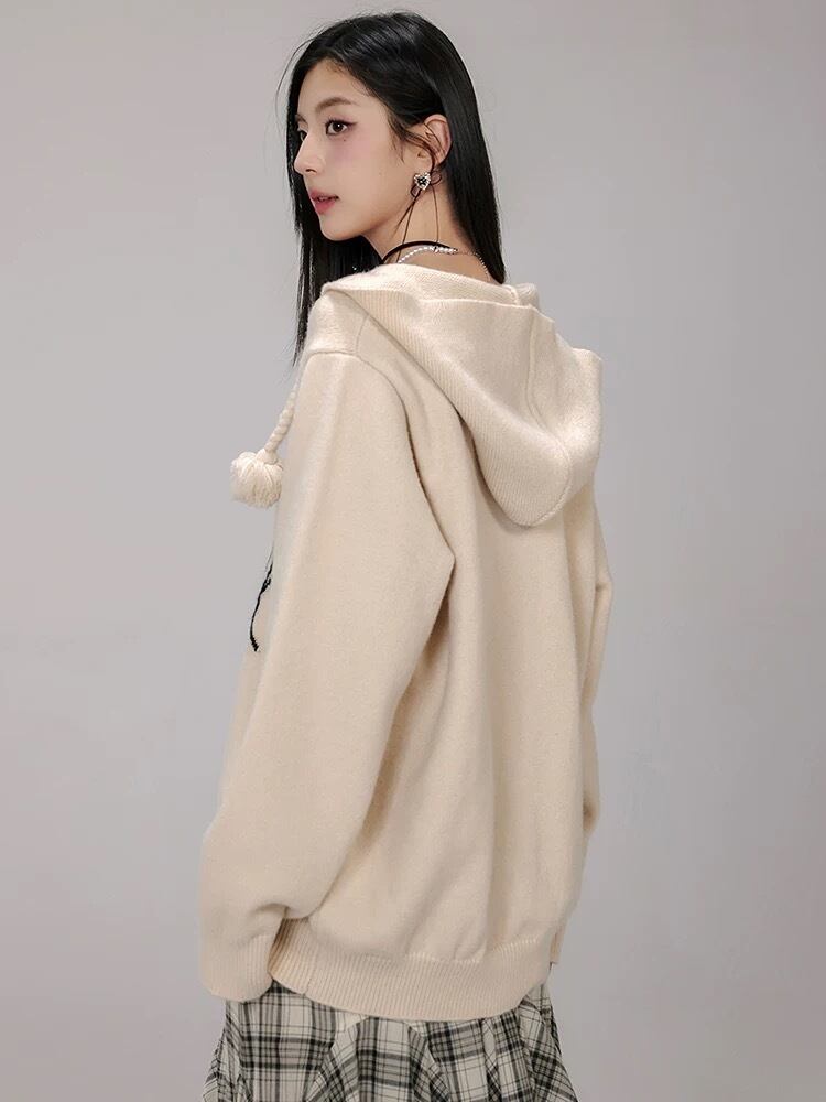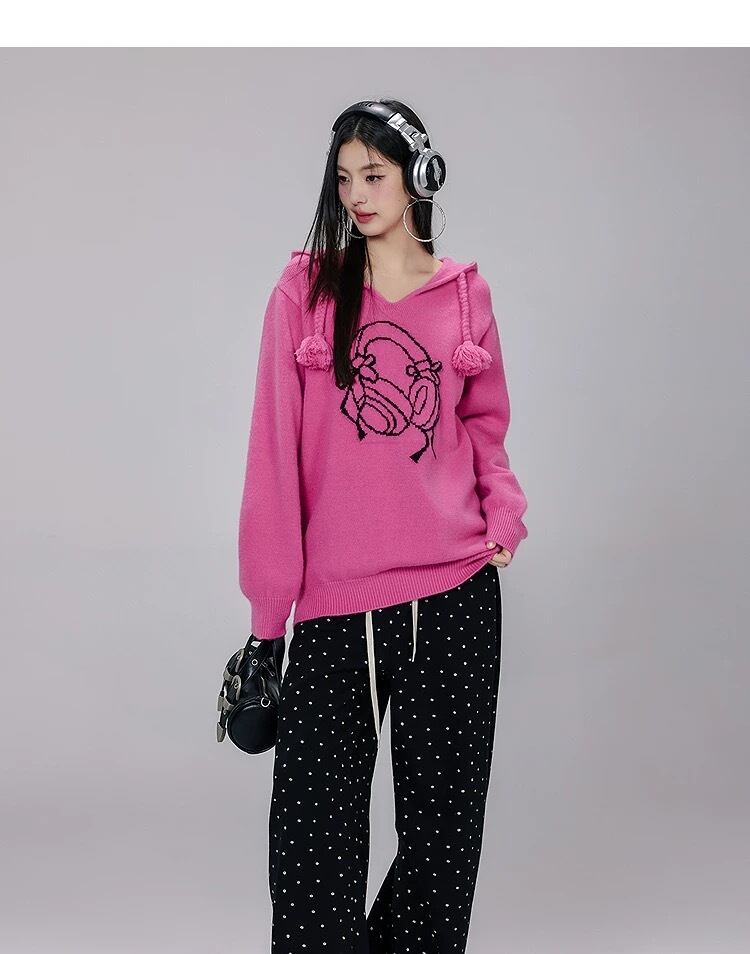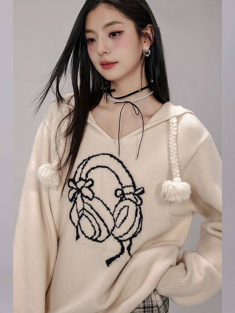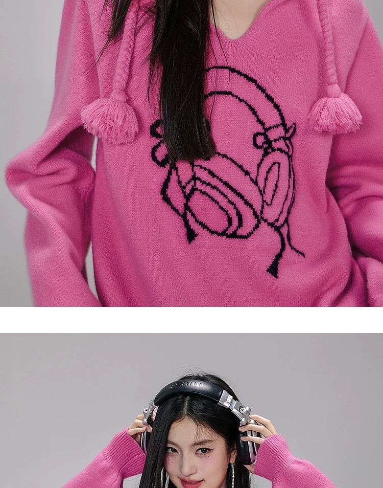 ニット パーカー ベージュ イヤホン 音楽 ピンク ミュージック