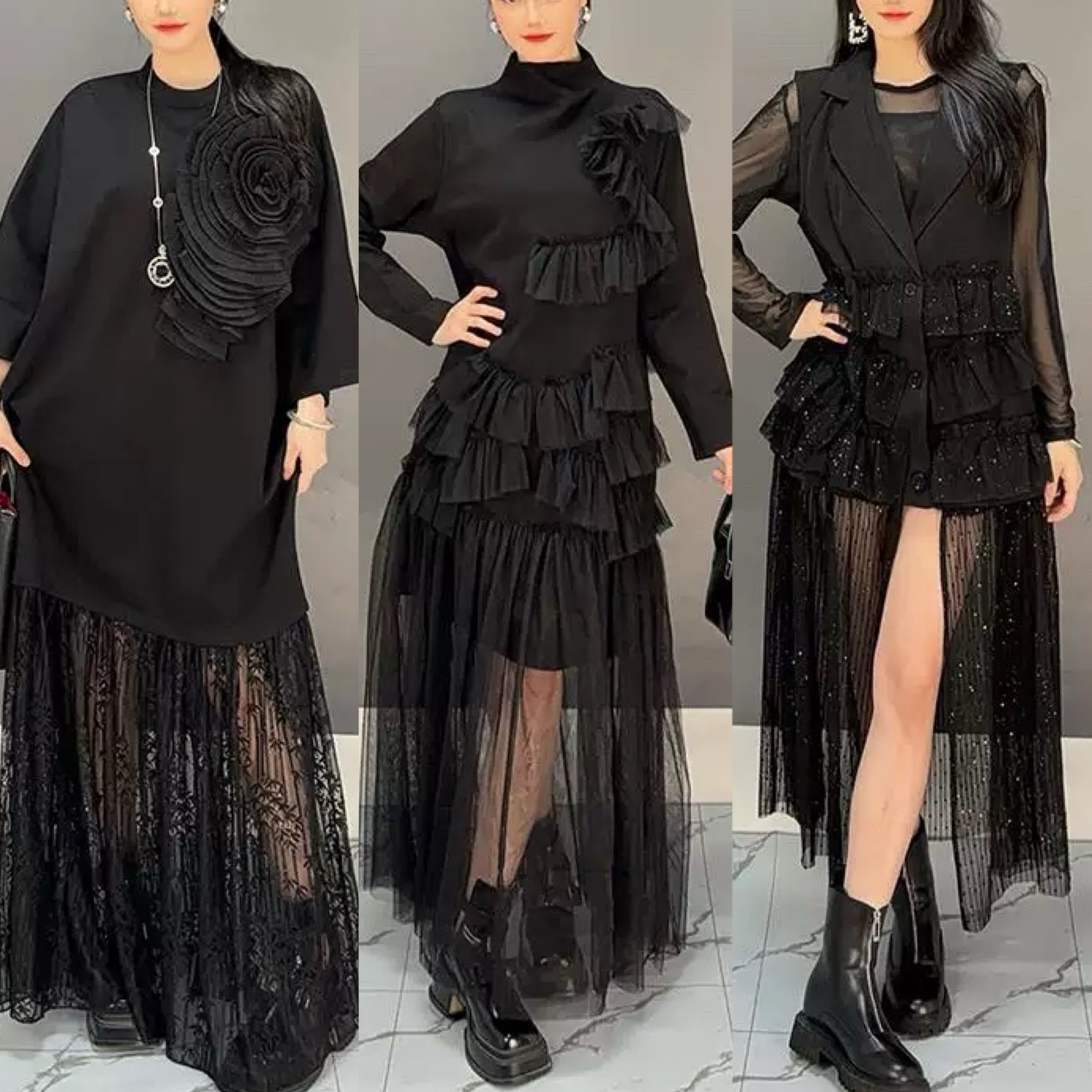 黒 ワンピース ブラック ハイネック