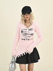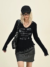 黒 ピンク ダメージ クラッシュ セーター