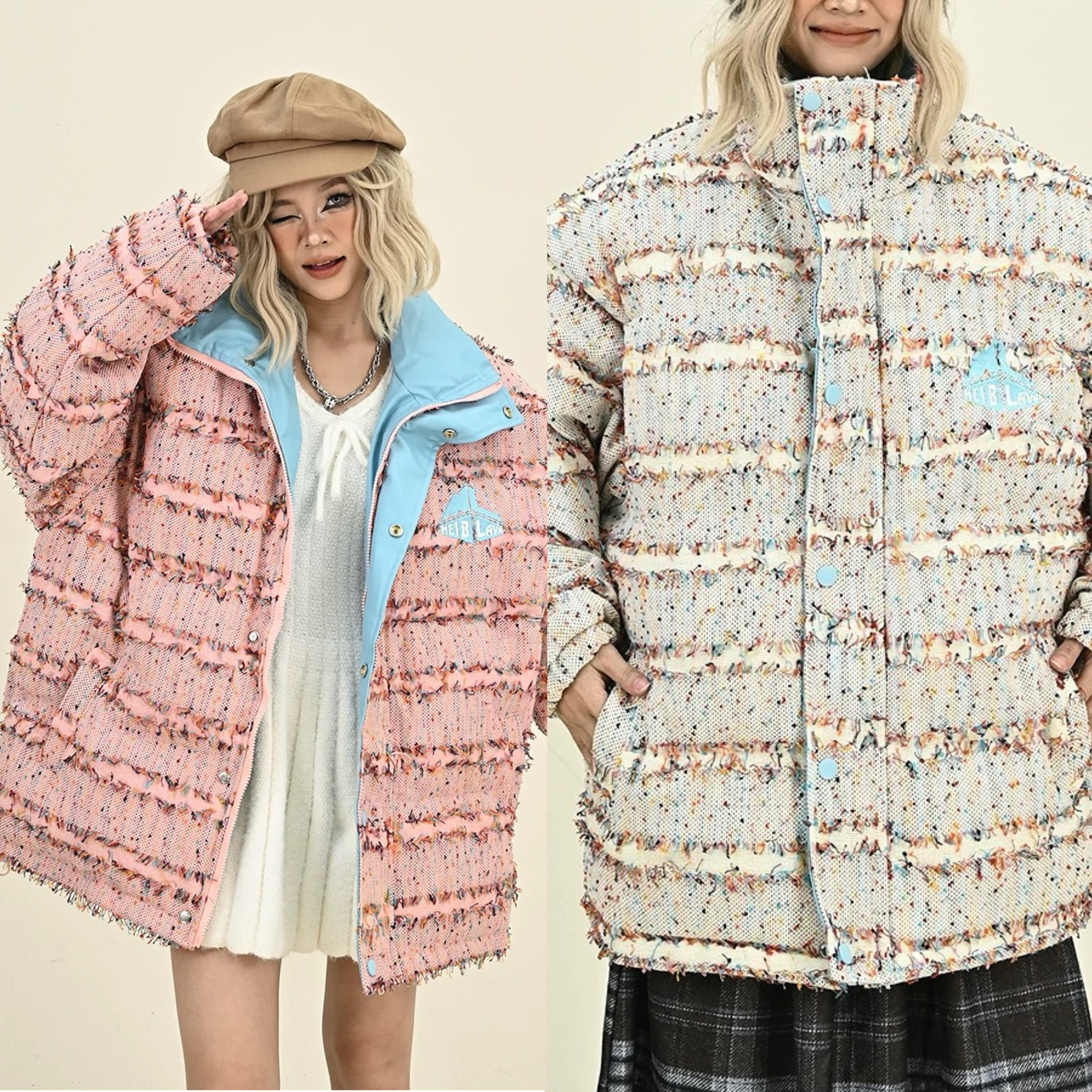 ピンク 水色 ダウン アウター コート