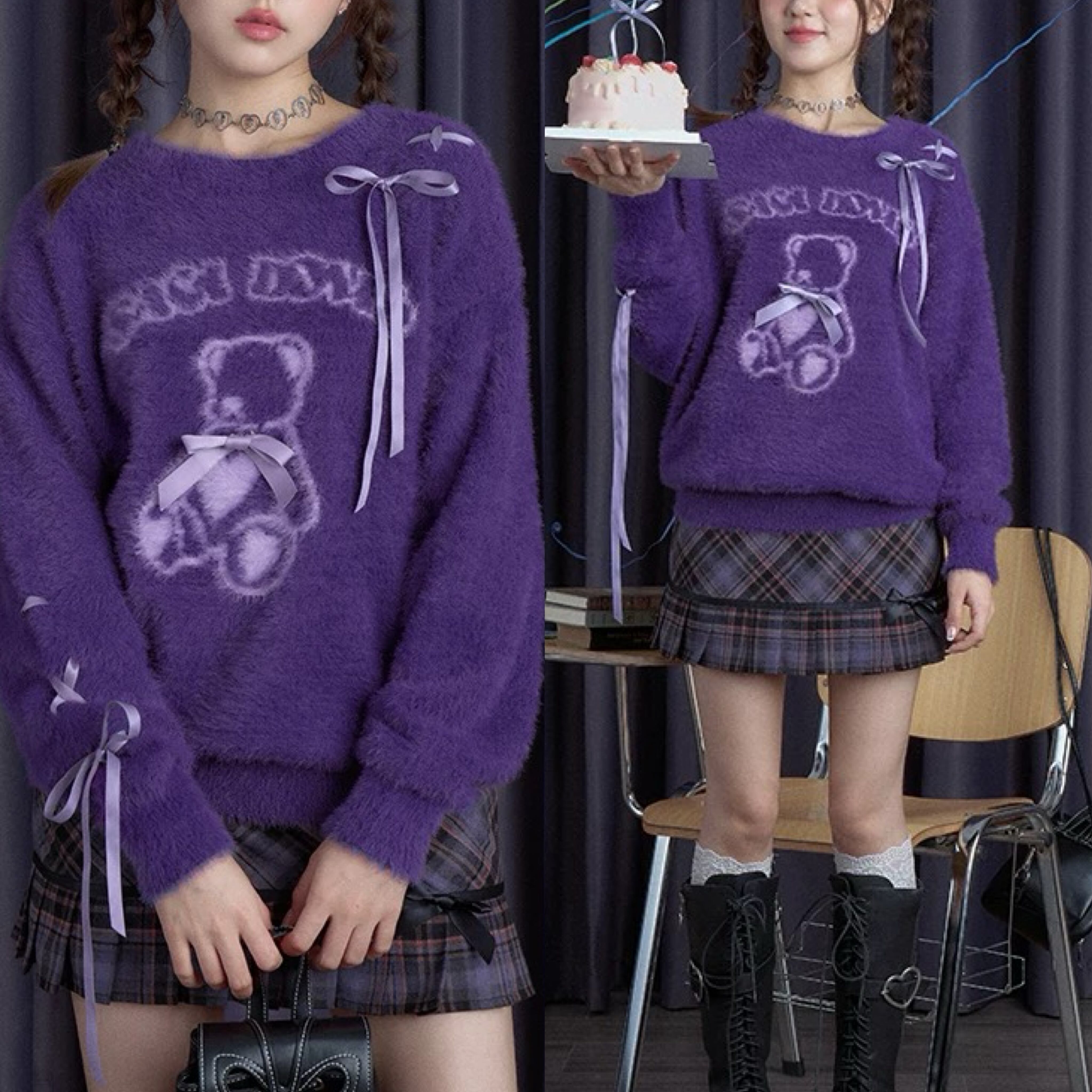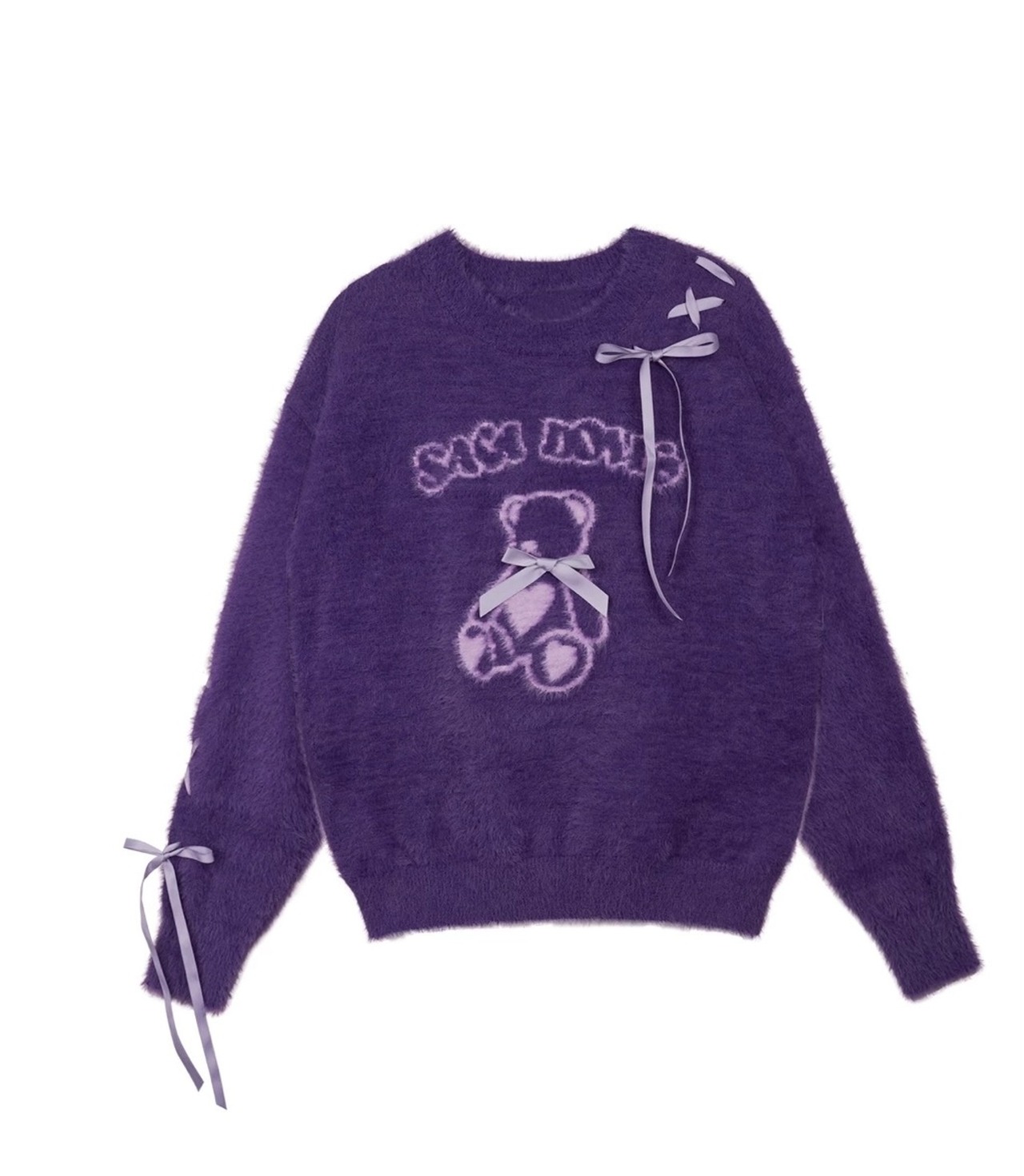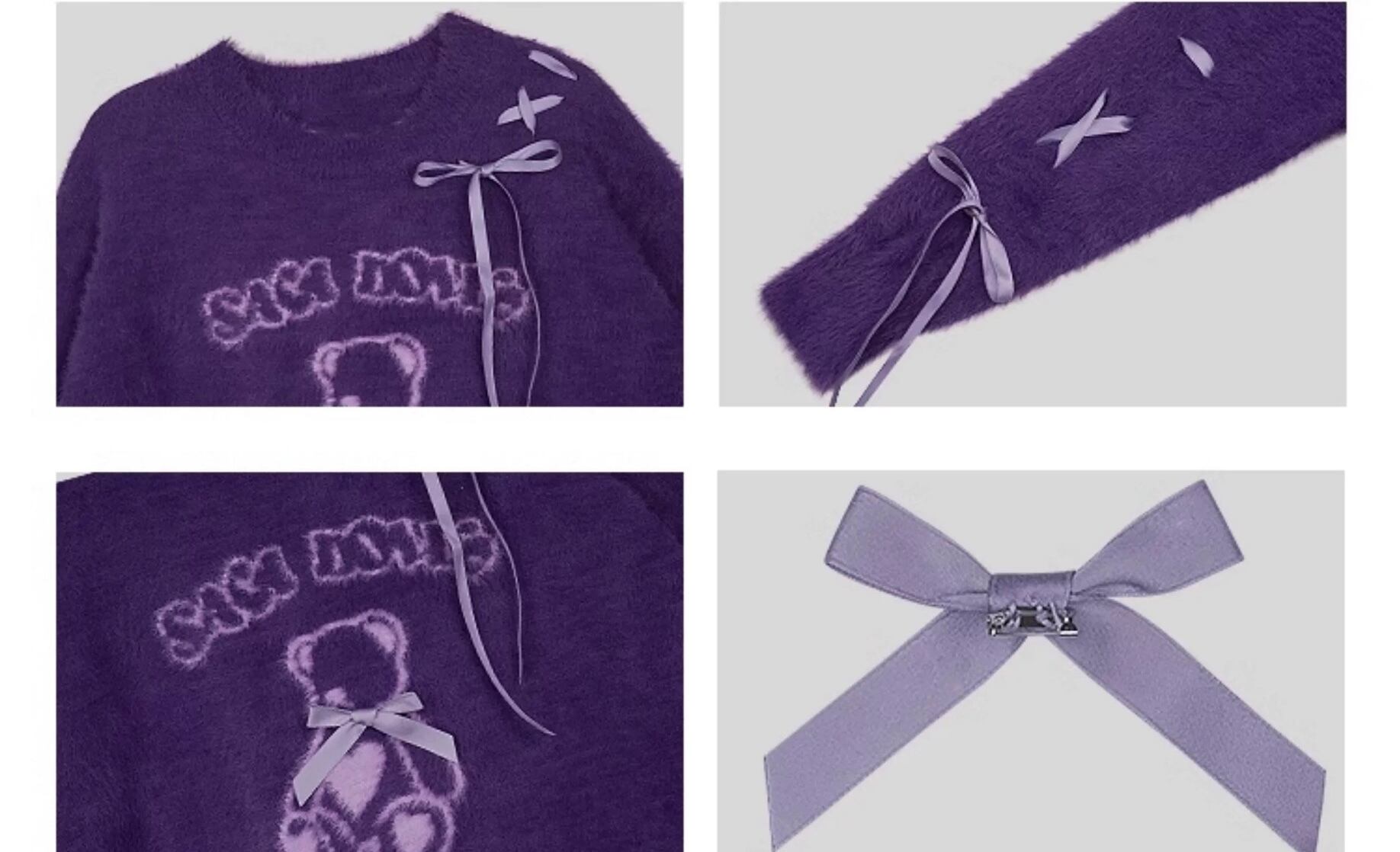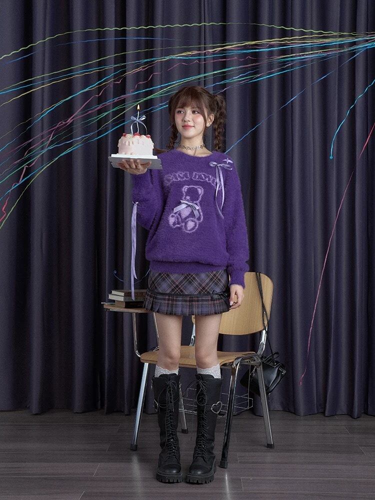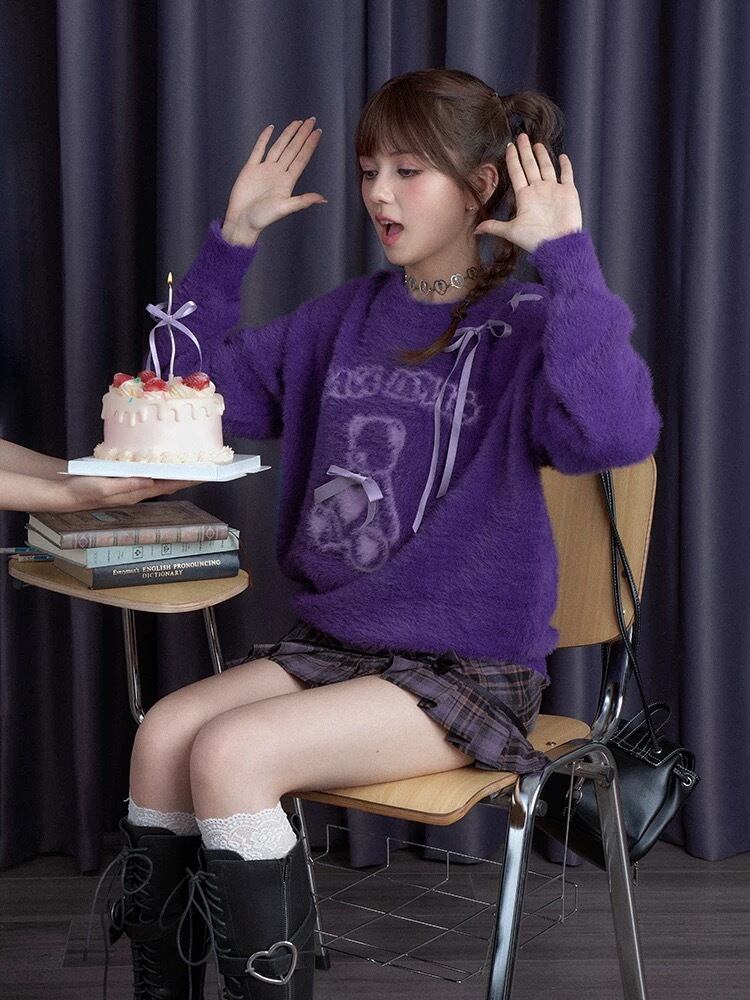 紫 セーター リボン 可愛い トップス くま