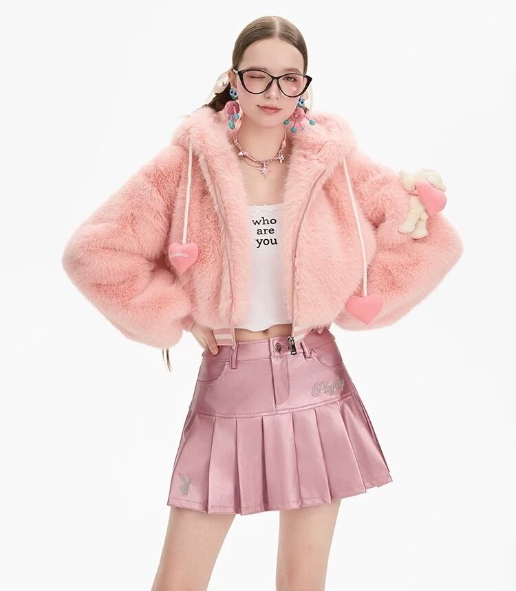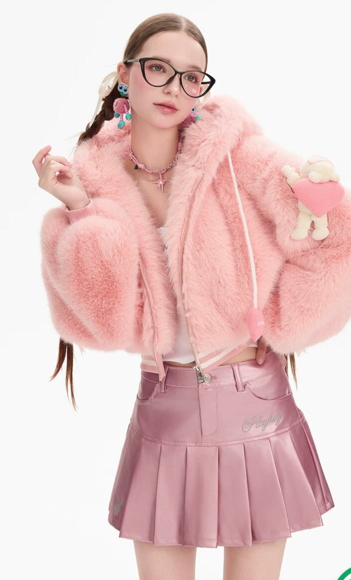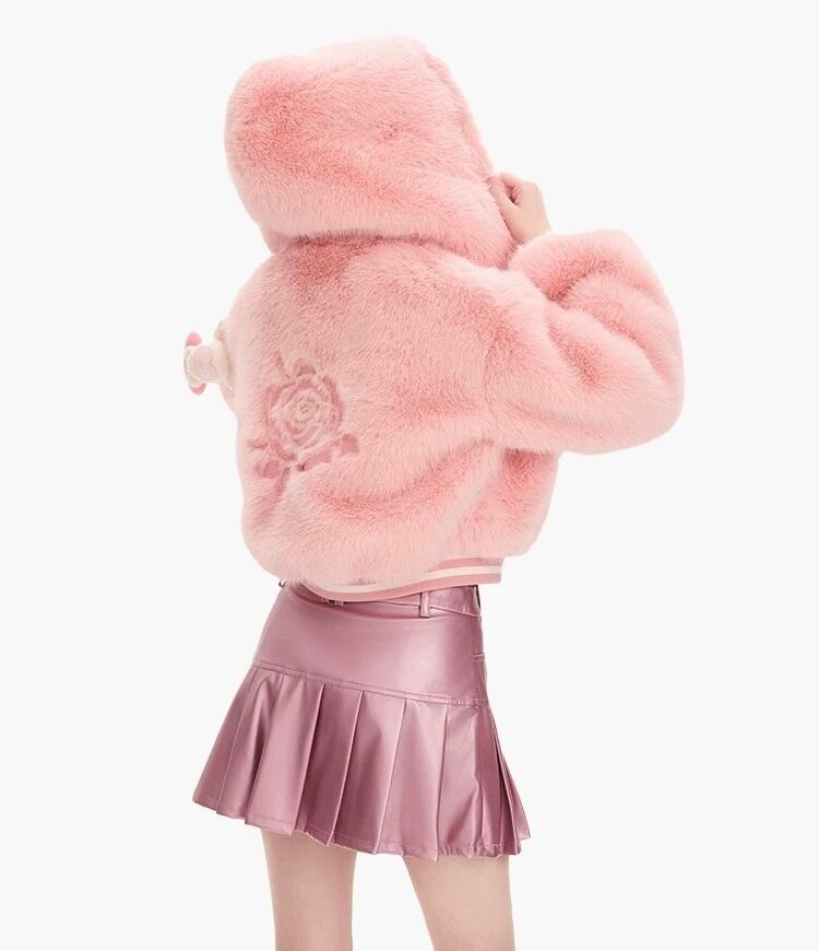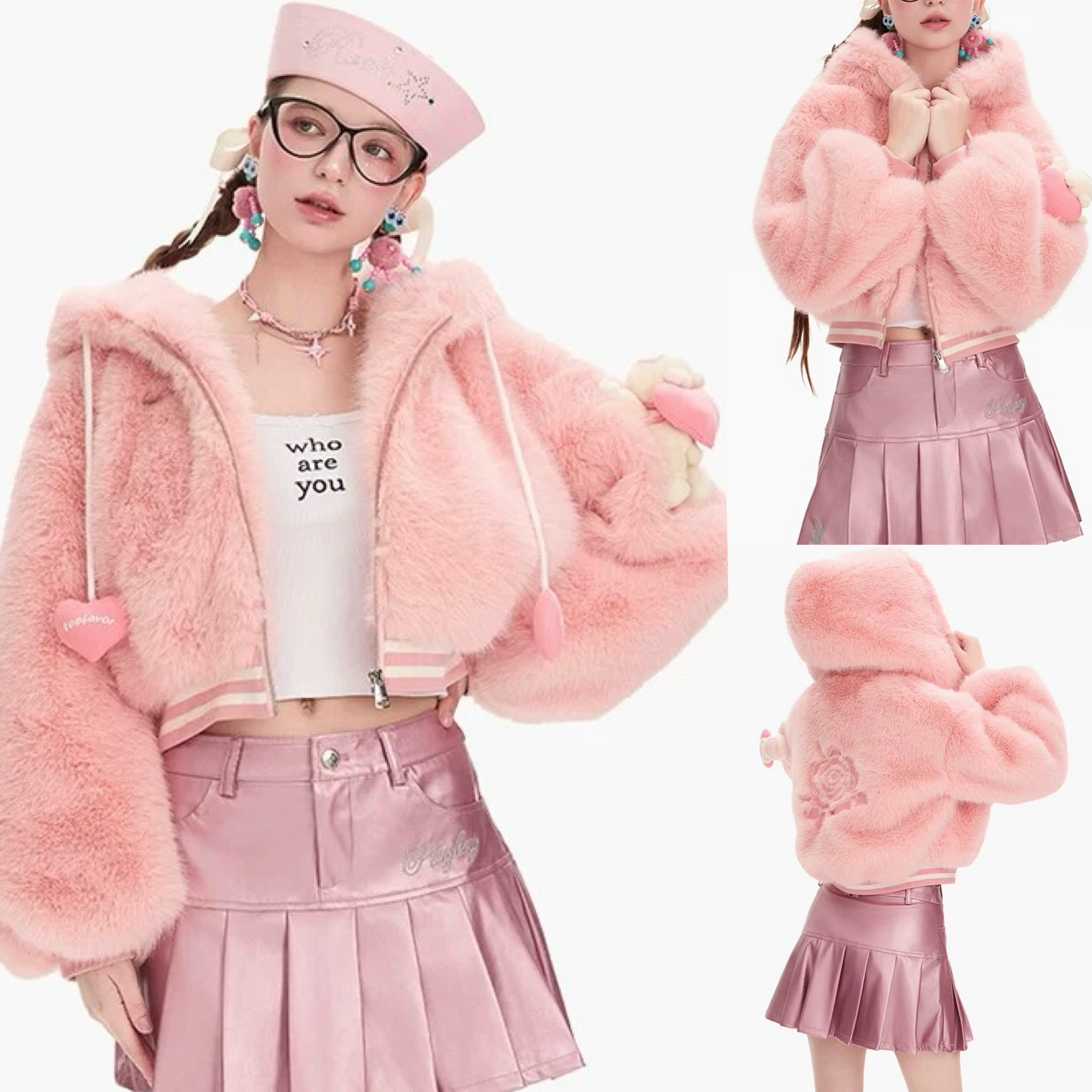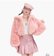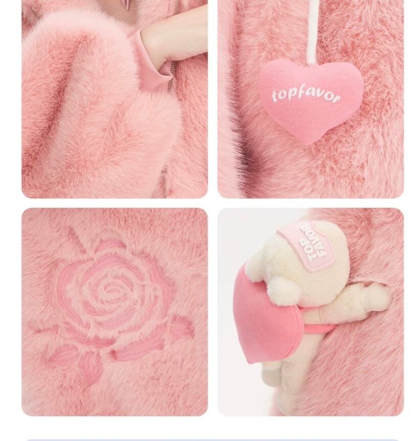 ピンク ふわふわ パーカー コート ジャケット ハート バラ 薔薇