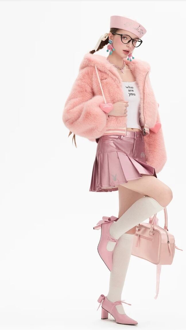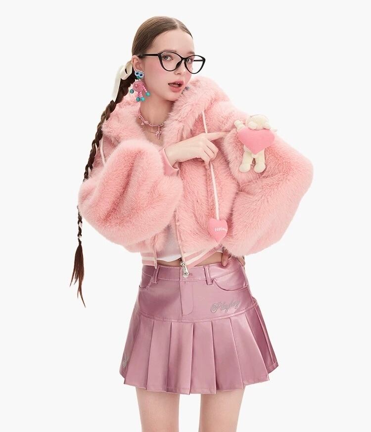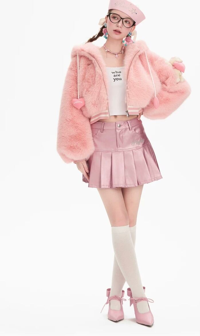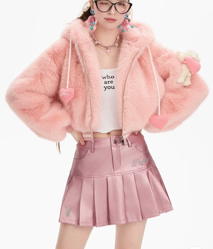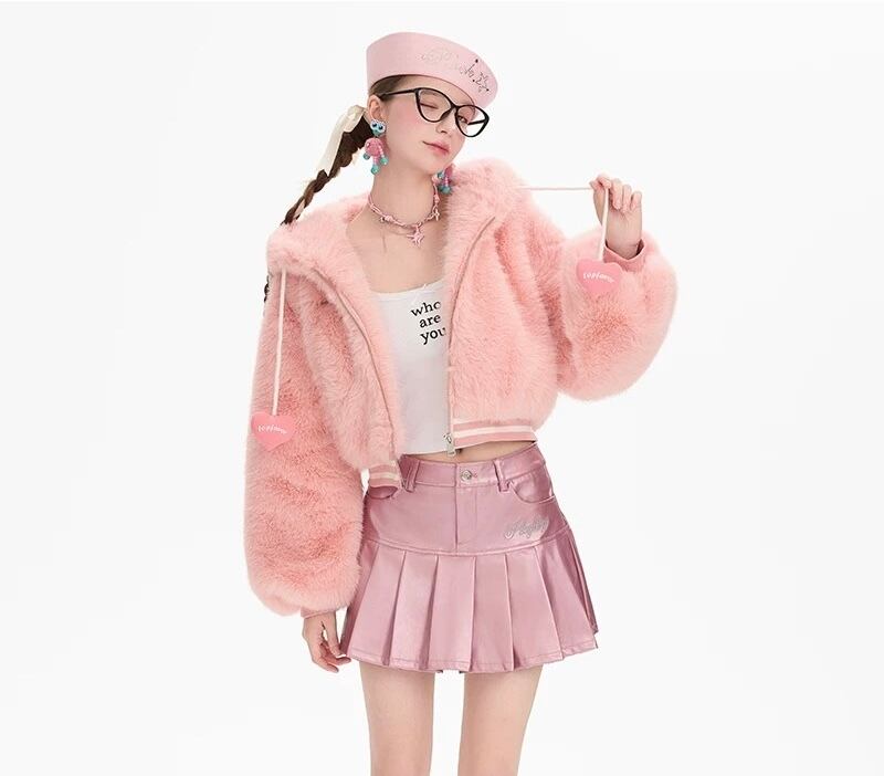 ピンク ふわふわ パーカー コート ジャケット ハート バラ 薔薇
