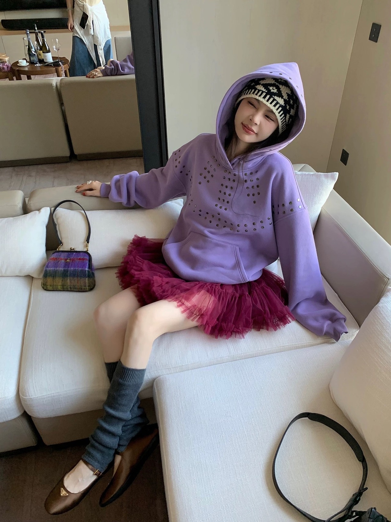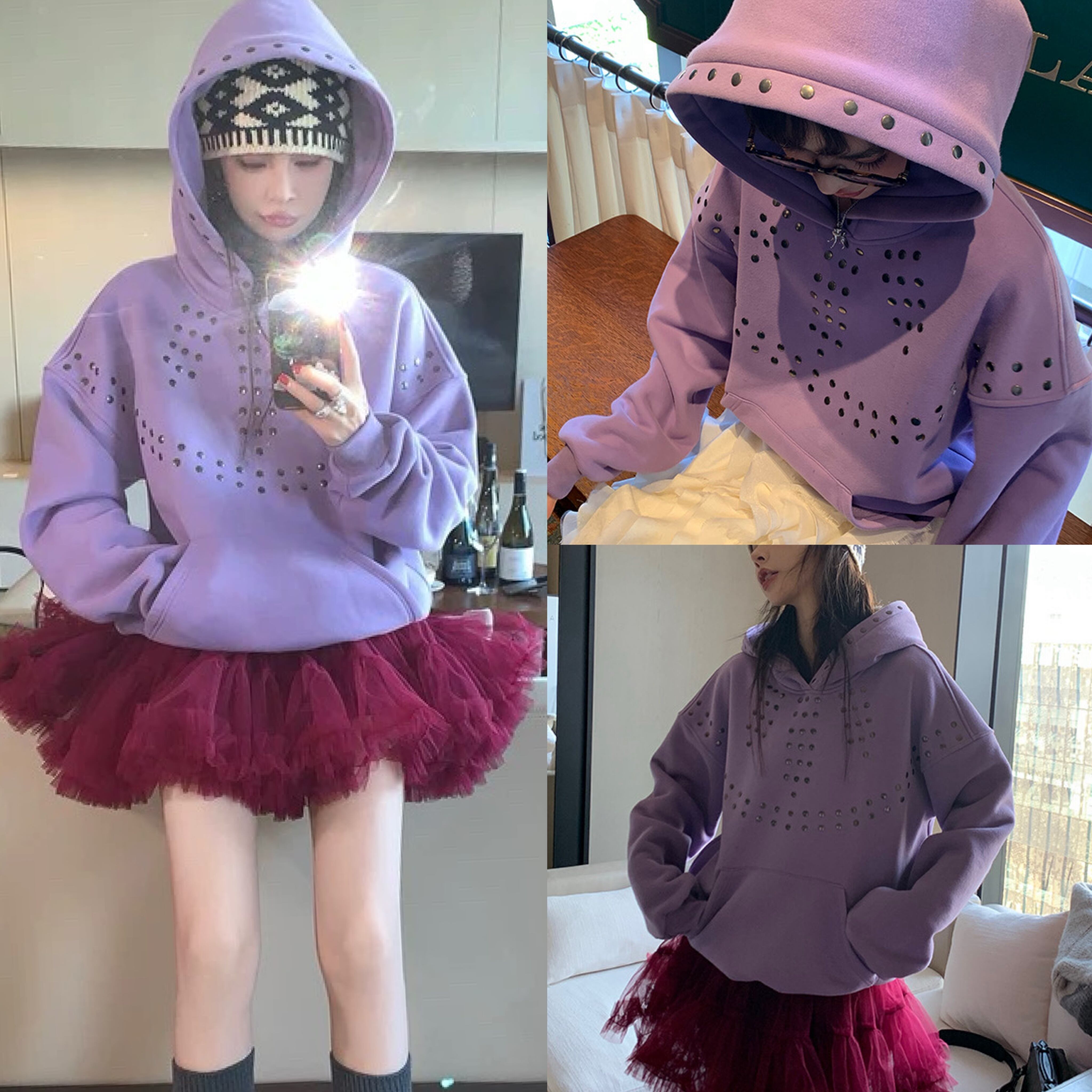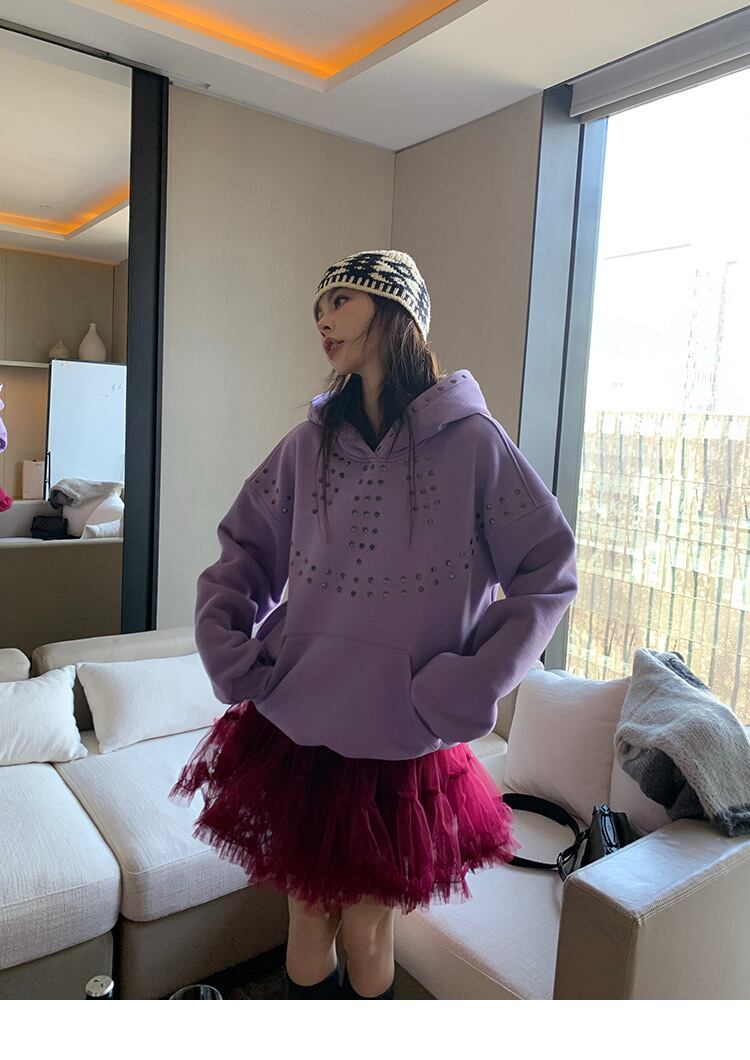 パープル 紫 トレーナー スタッズ スウェット