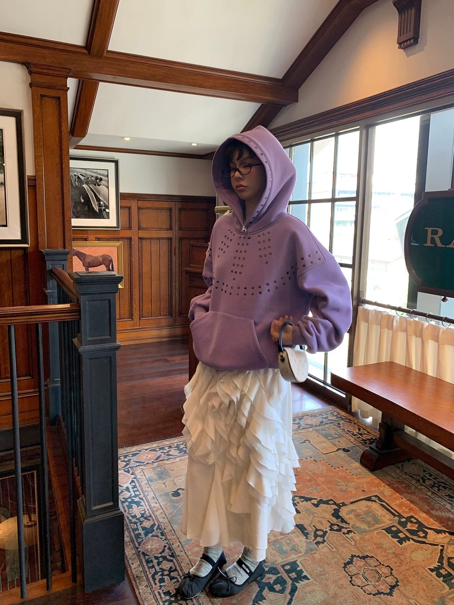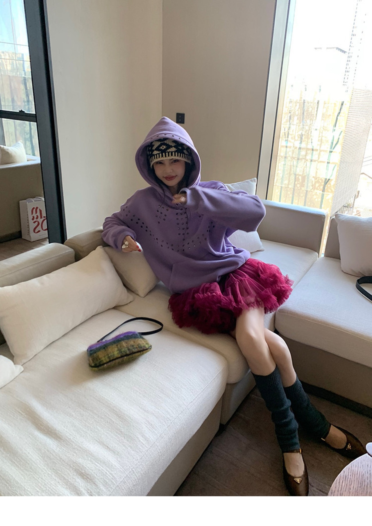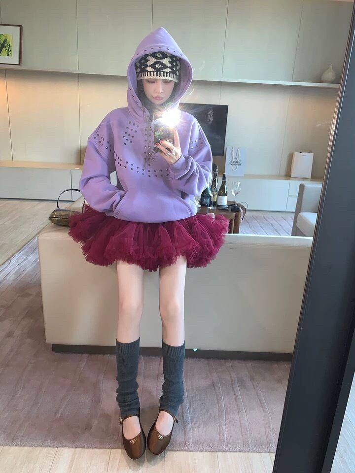 パープル 紫 トレーナー スタッズ スウェット