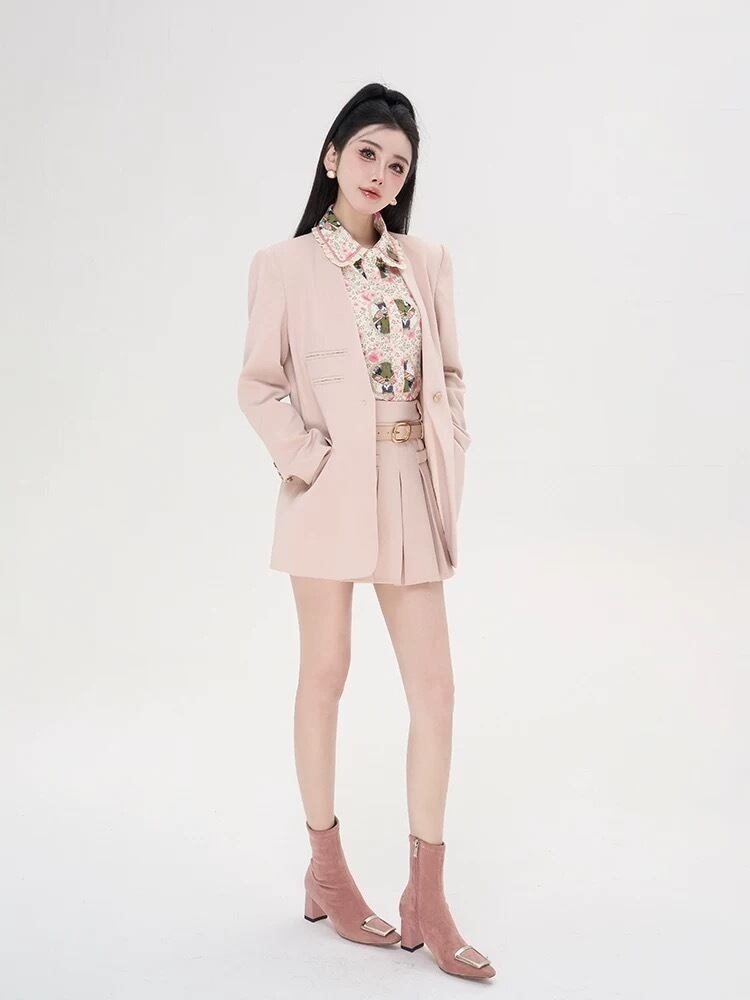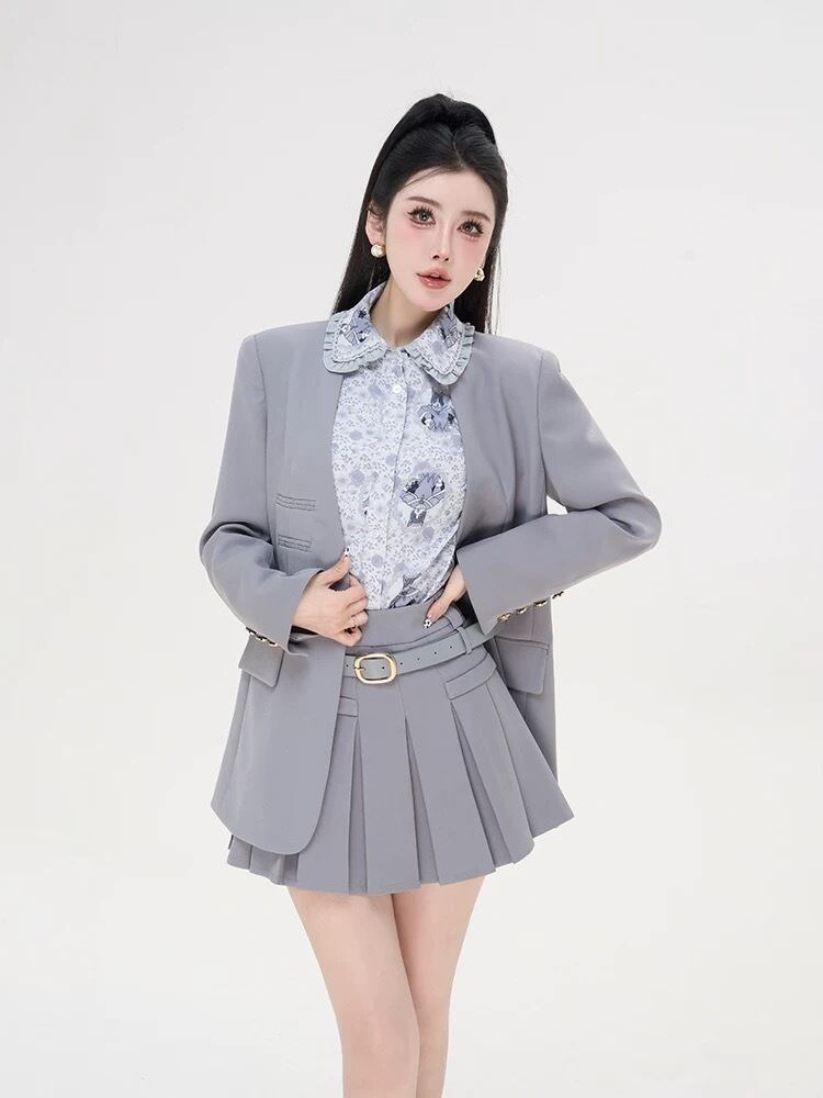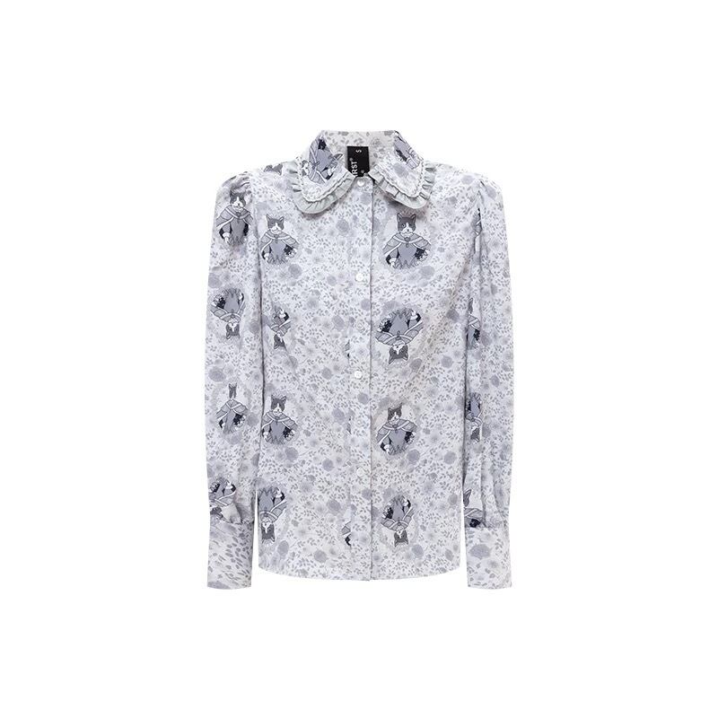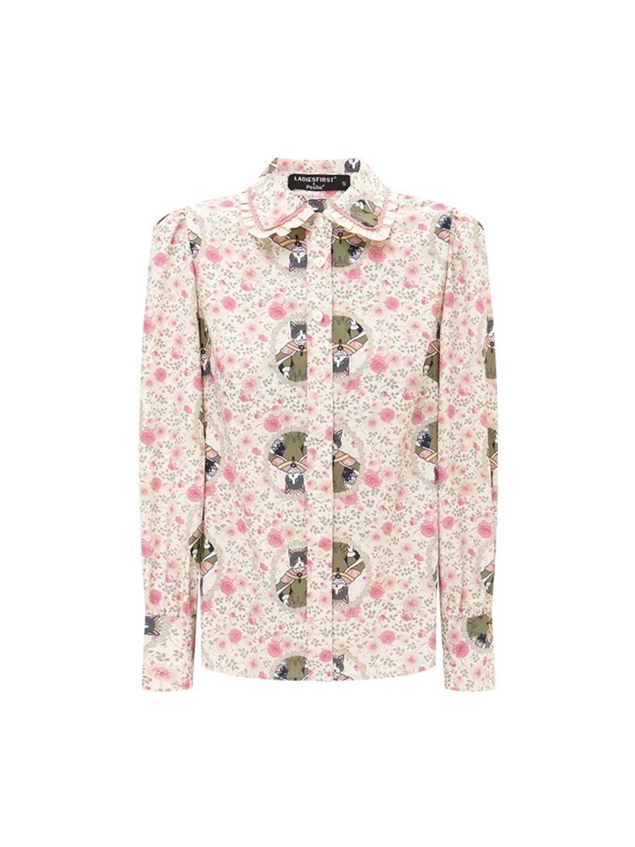 水色 うさぎ 花柄 フラワー ピンク 丸襟 ブラウス