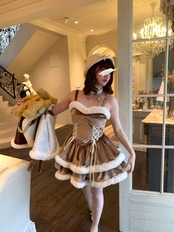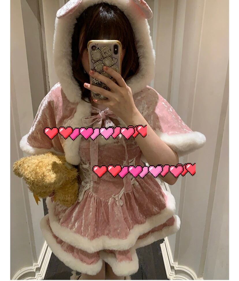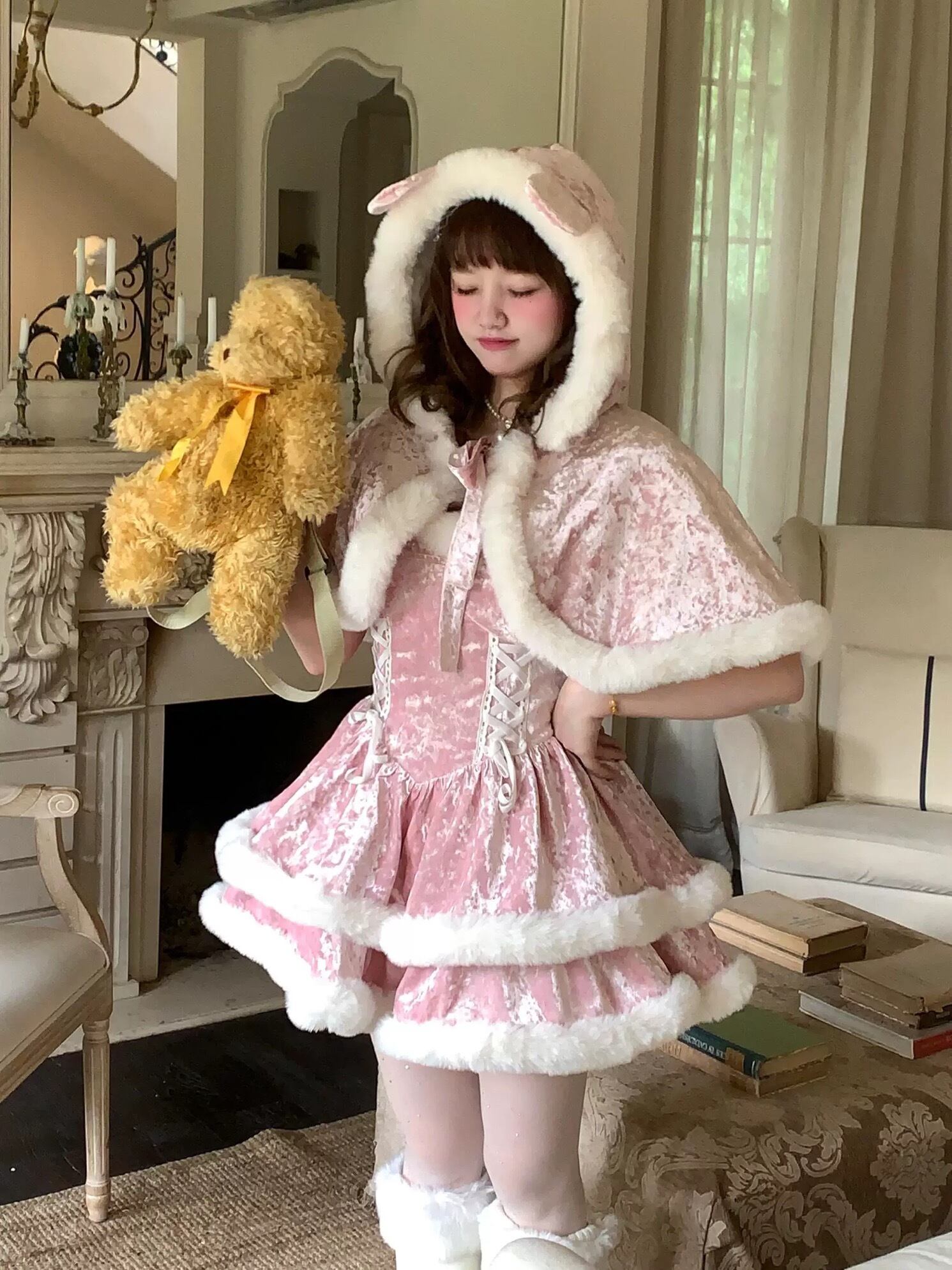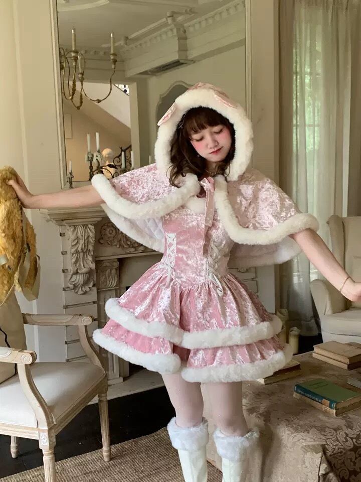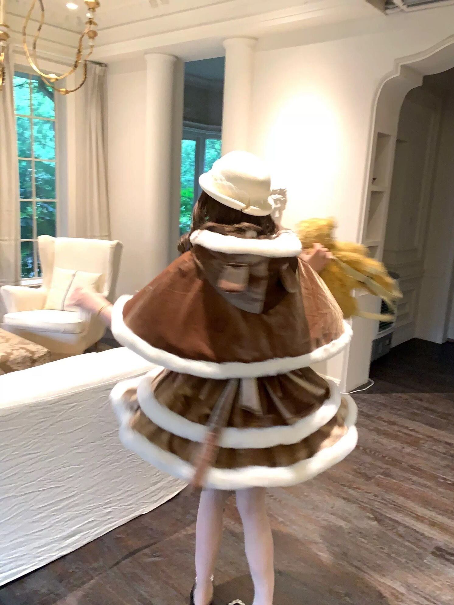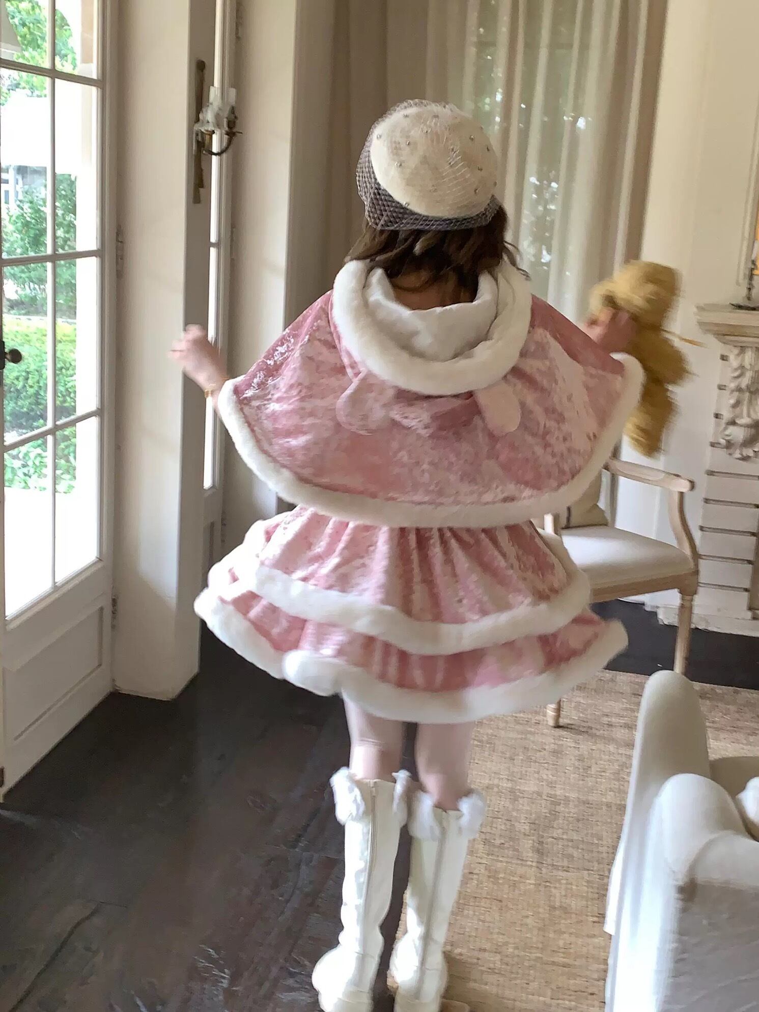 【マント】ファー 茶色 ピンク フード コート カーディガン