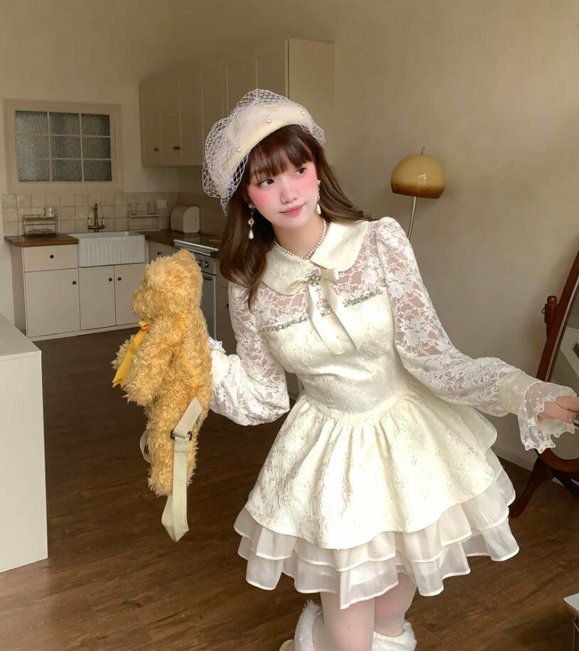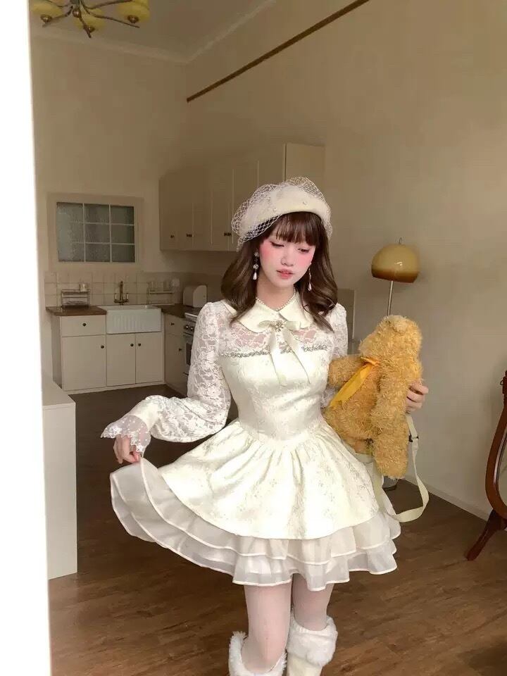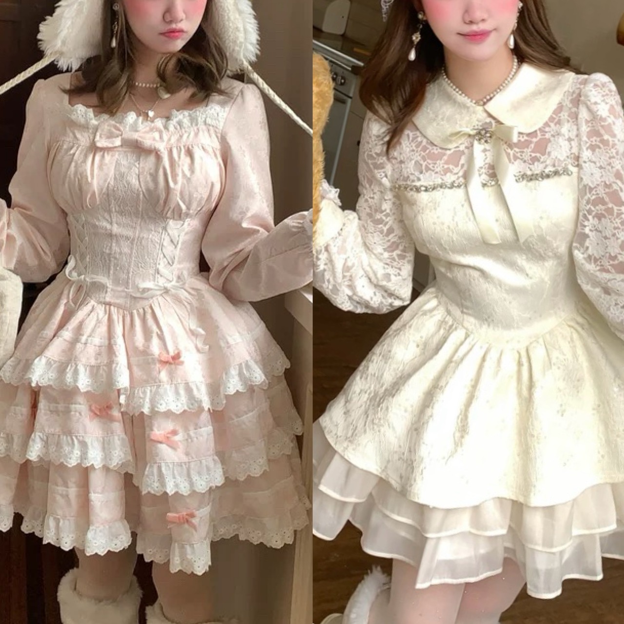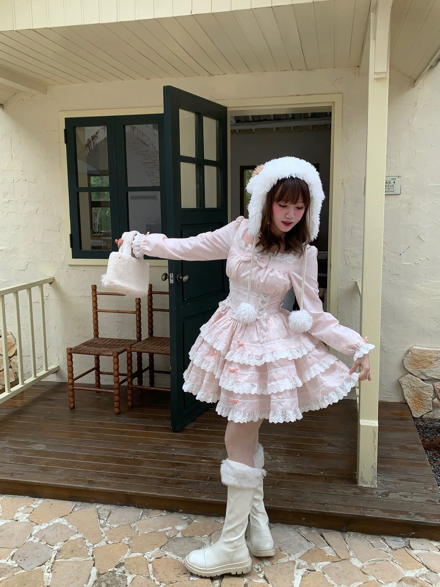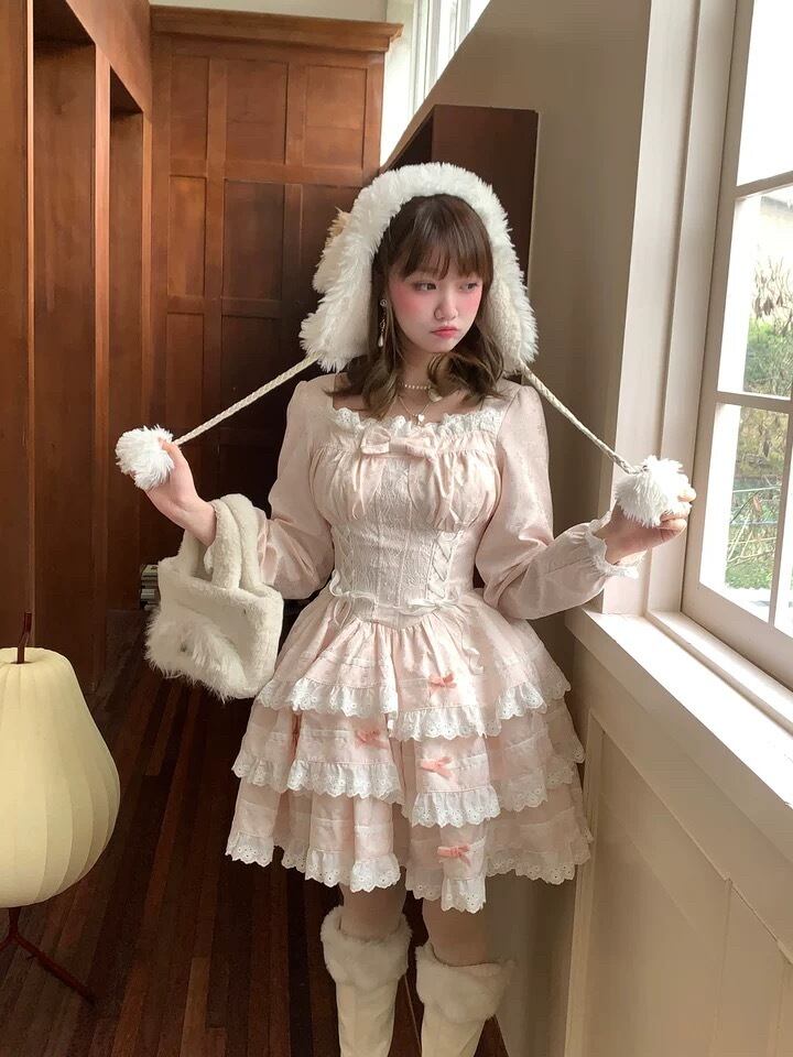 ワンピース 白 姫 ピンク リボン 可愛い ガーリー