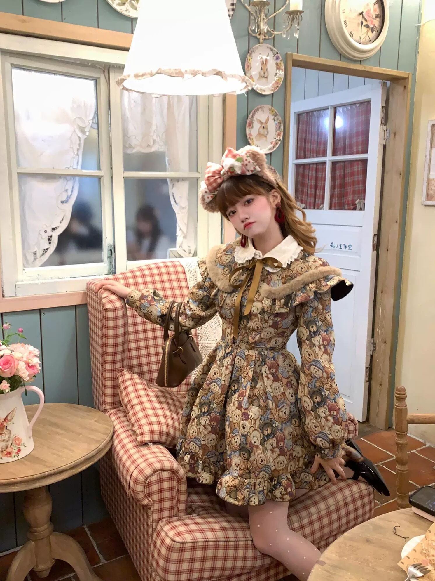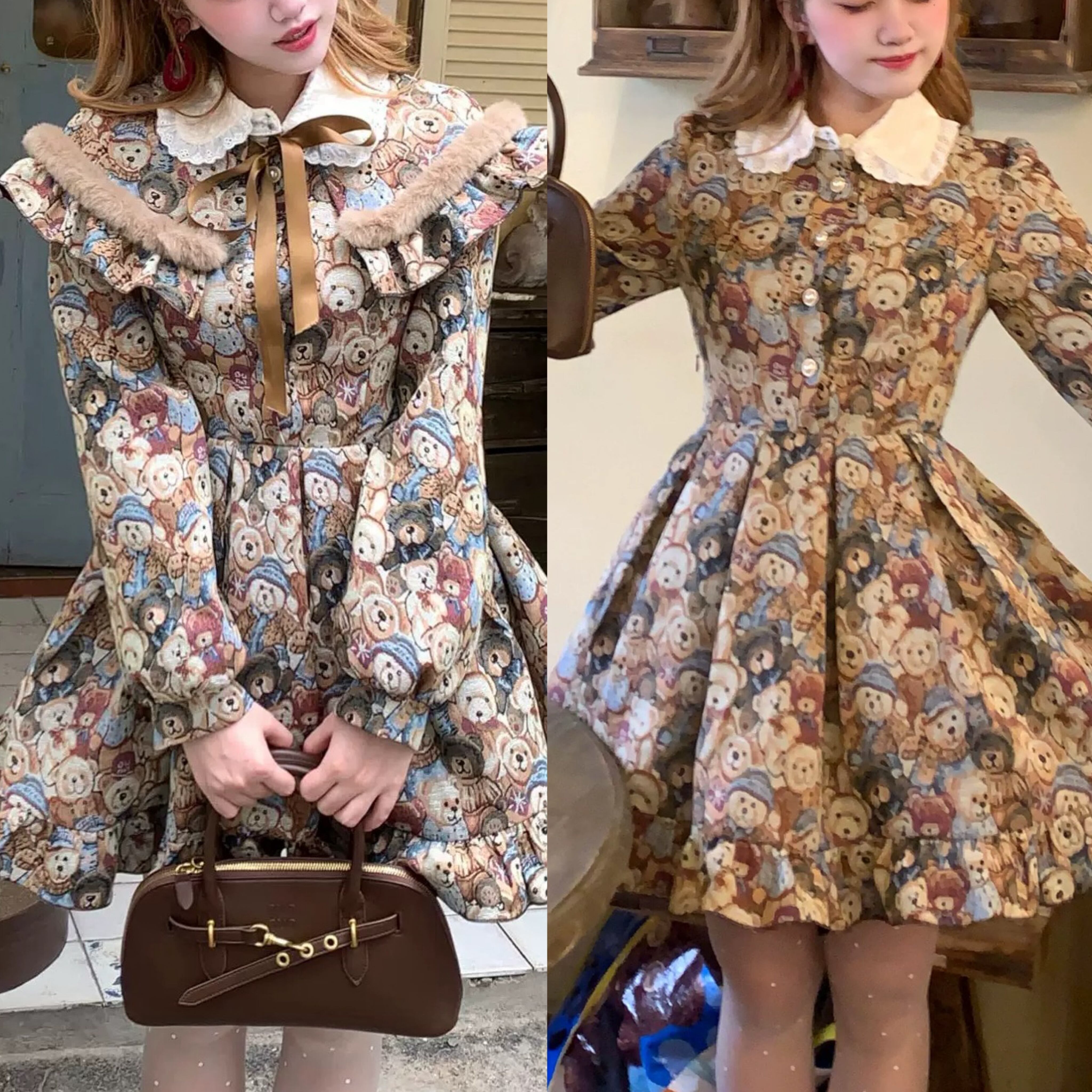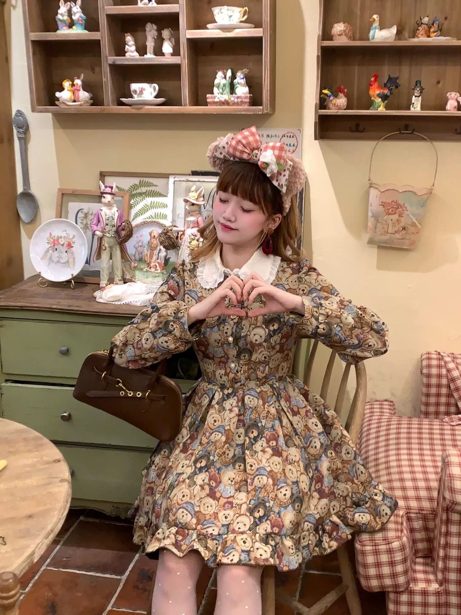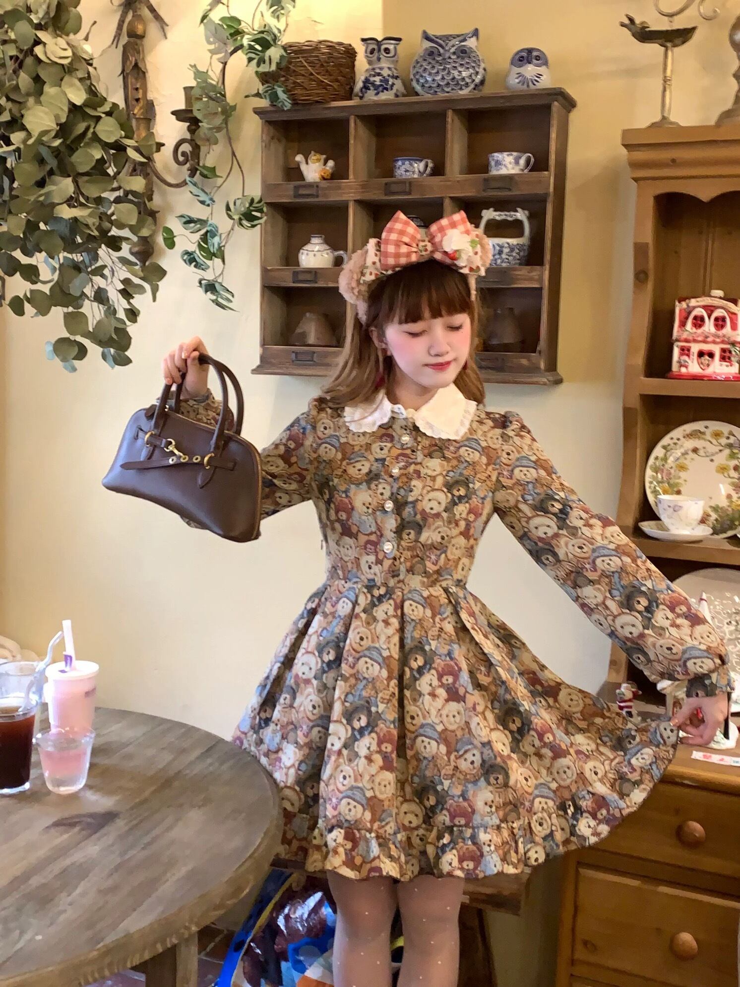 くまさん ファー リボン 茶色 ワンピース カーディガン
