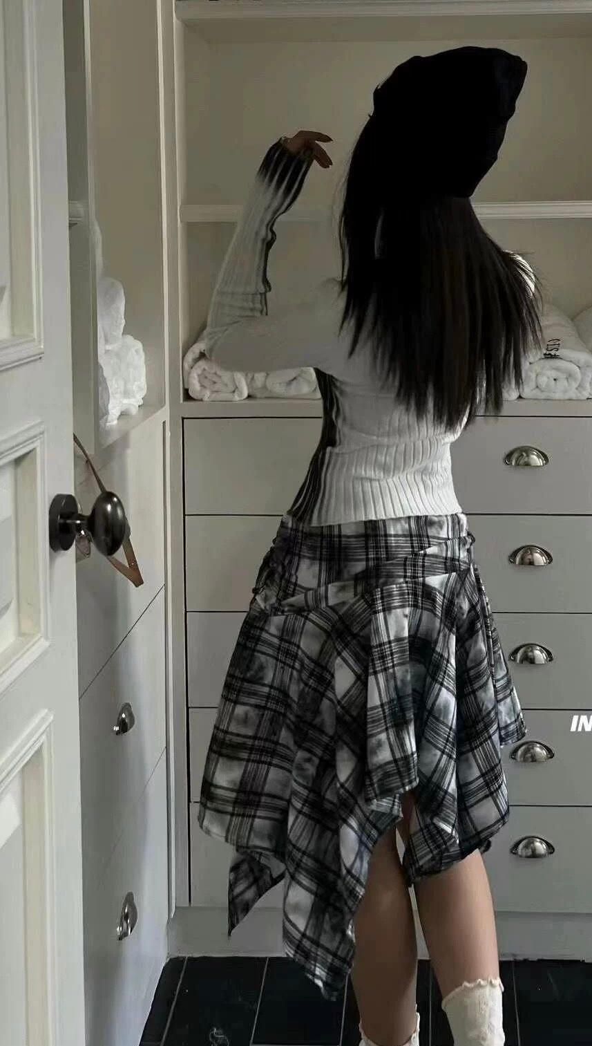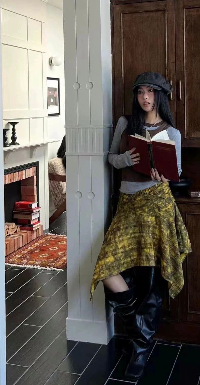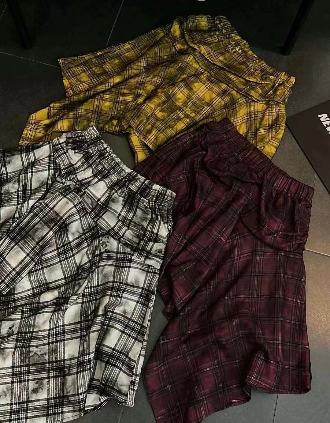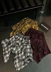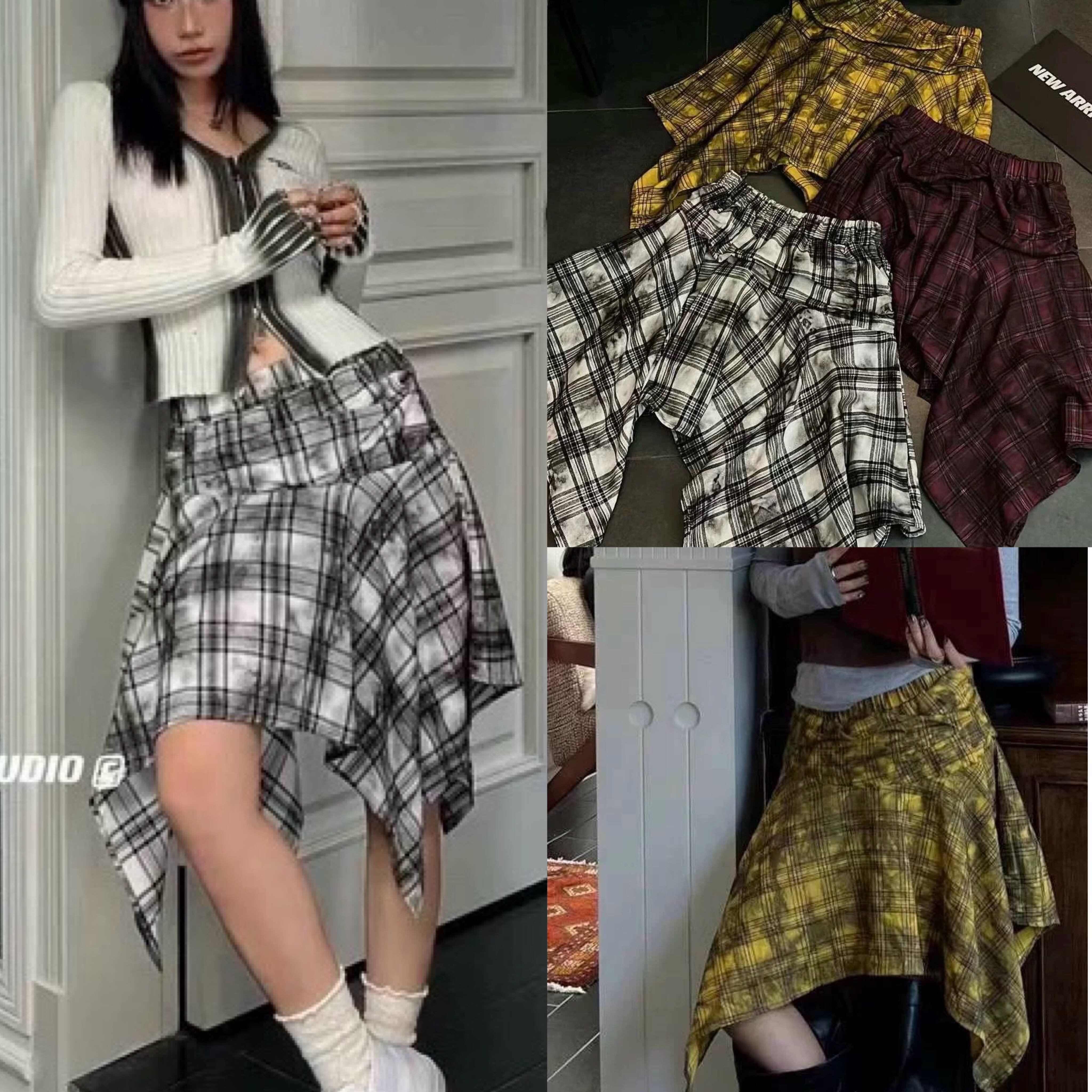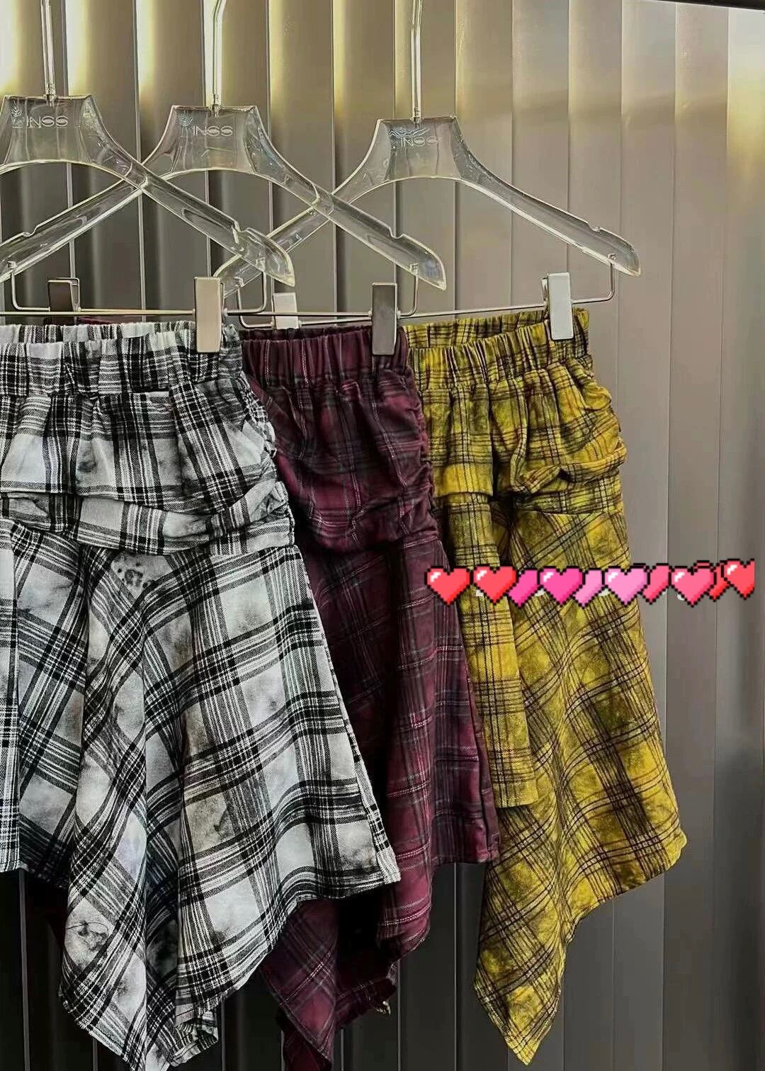ミニスカート ネルシャツ 白 赤 黄色 チェック